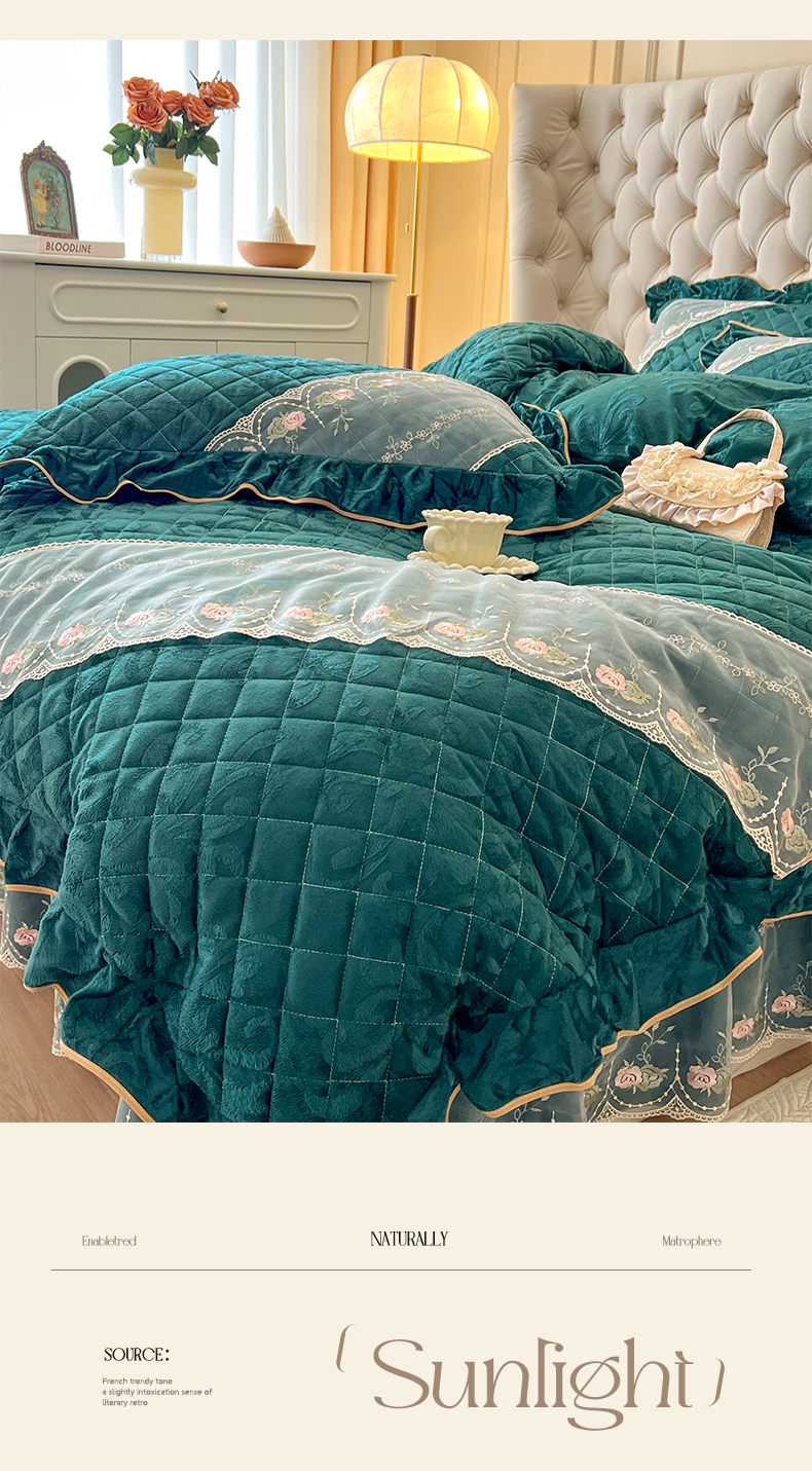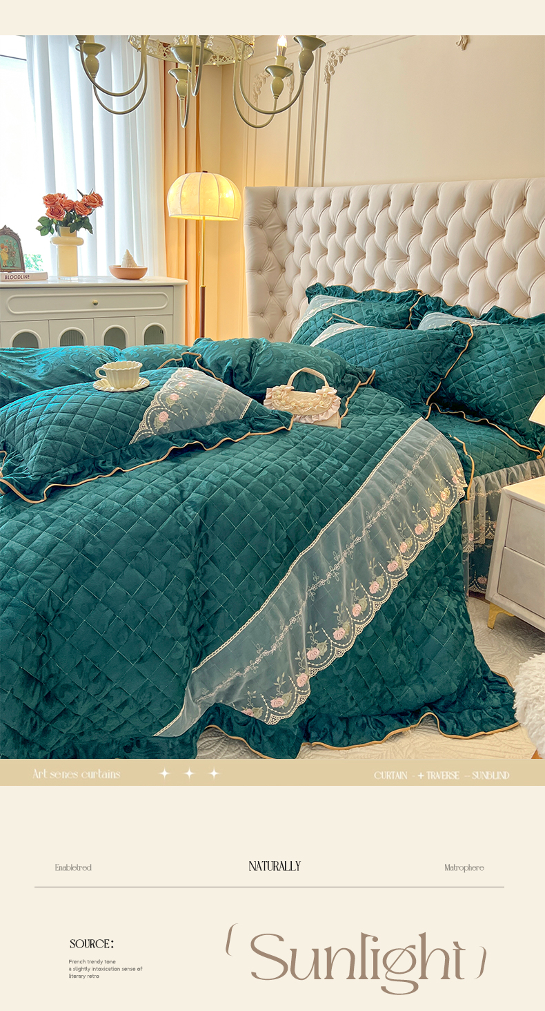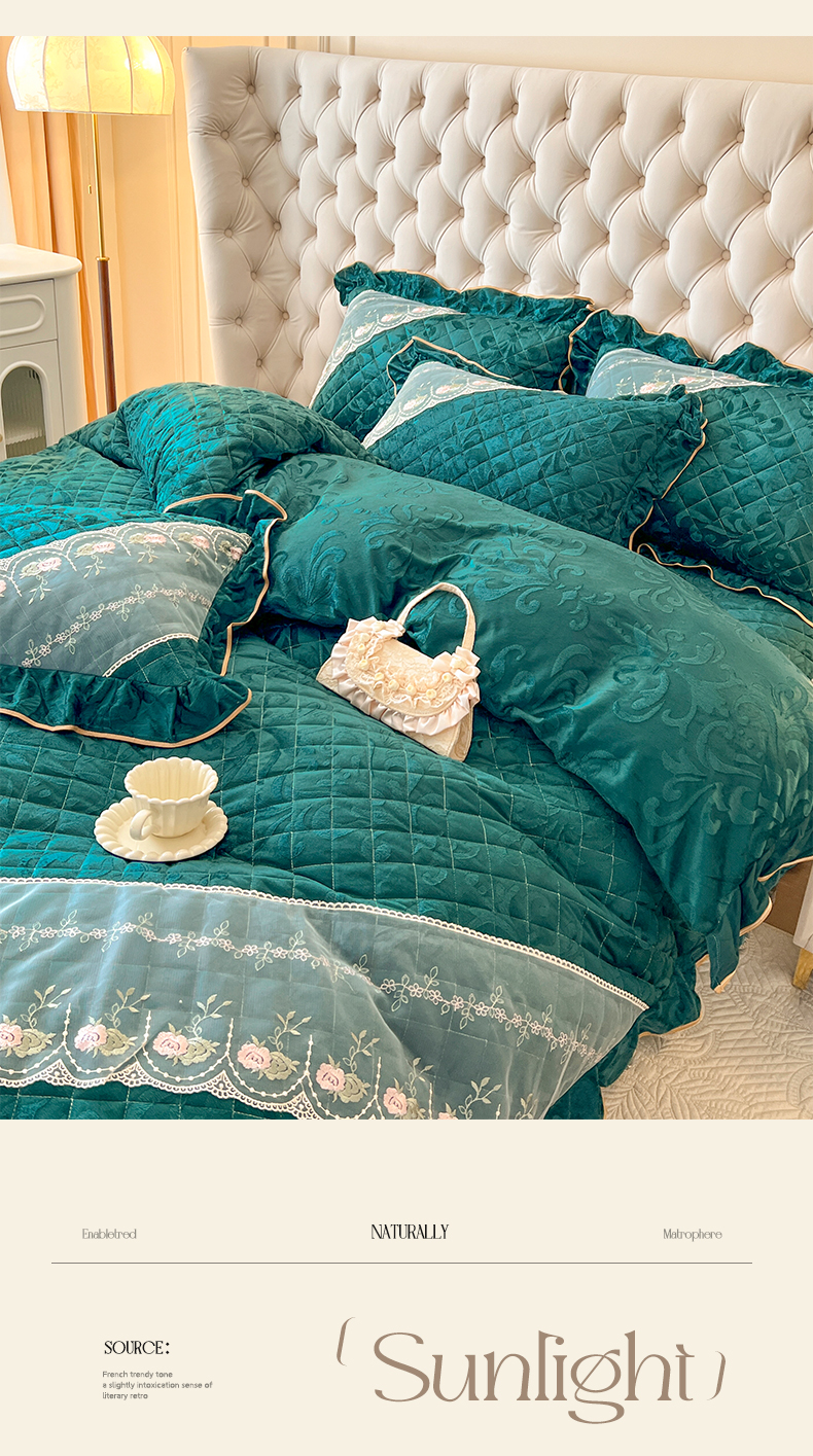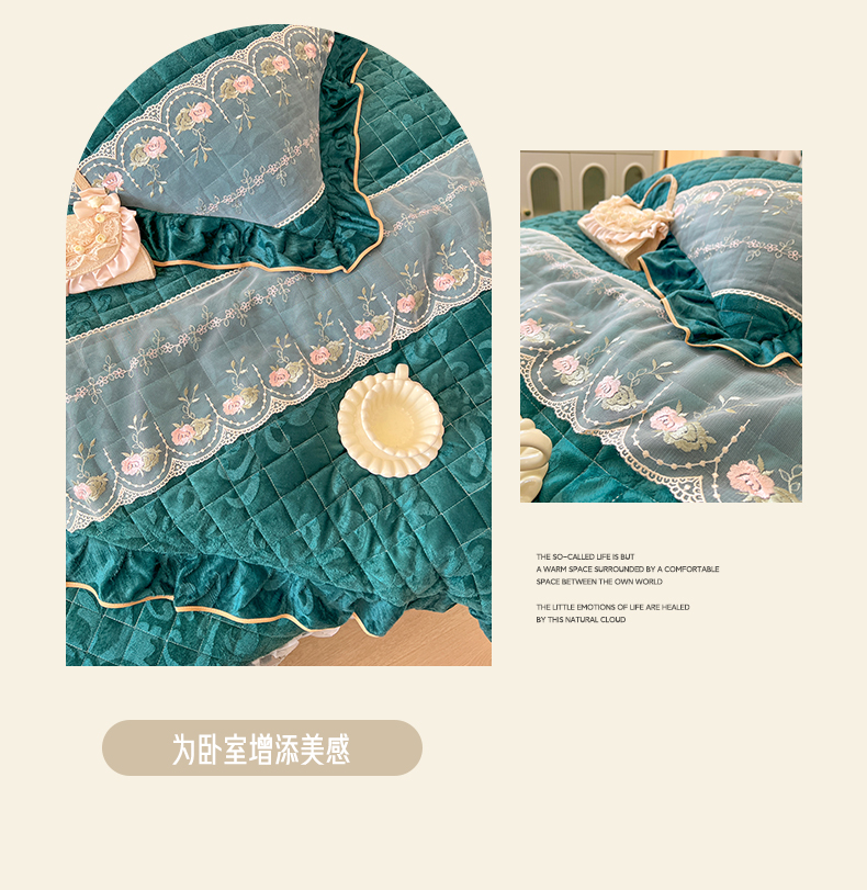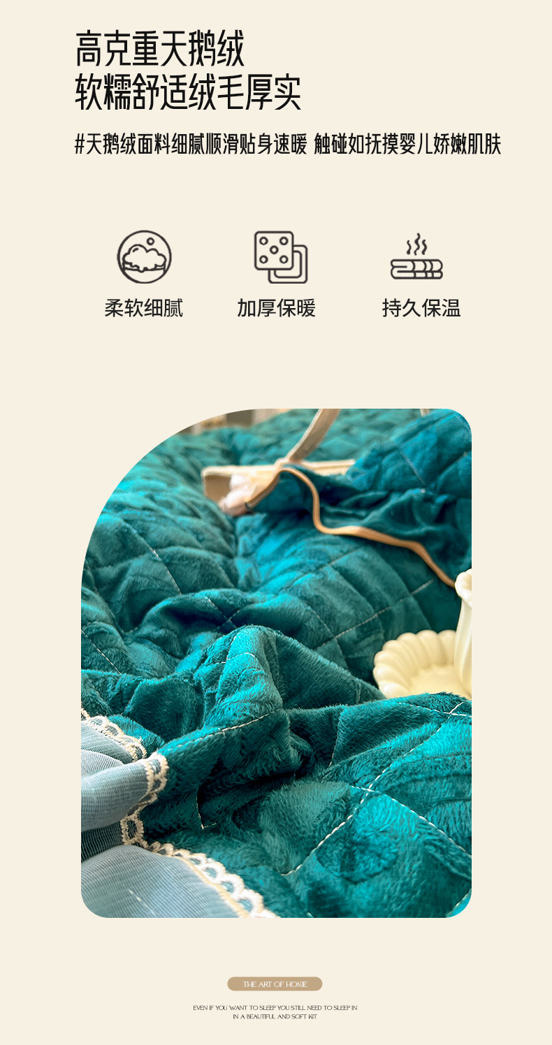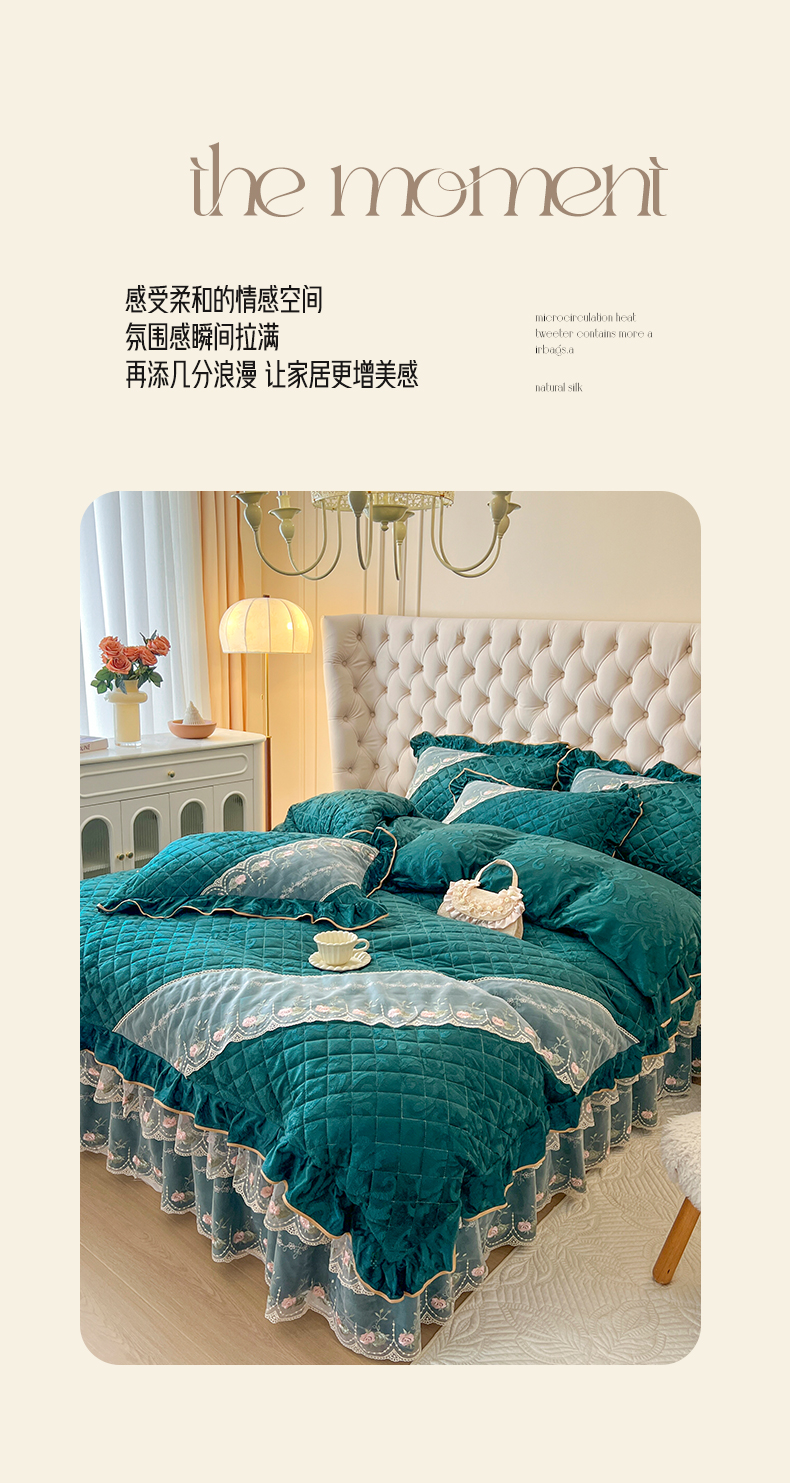 当前位置: 91家纺网 > 商品网购 > 床品套件 > 四件套 > 其它四件套 > 网红馆(ck家纺) 2025新款高克重天鹅绒刺绣床裙四件套-花语秘境 花语秘境-湖绿