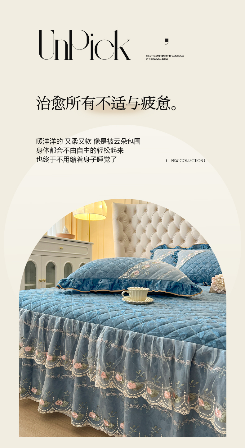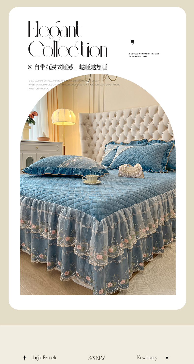 (总)网红馆(ck家纺) 2025新款色织提花牛奶绒床裙四件套-洛丽塔系列,洛丽塔-豆沙,洛丽塔-蓝色,洛丽塔-米色