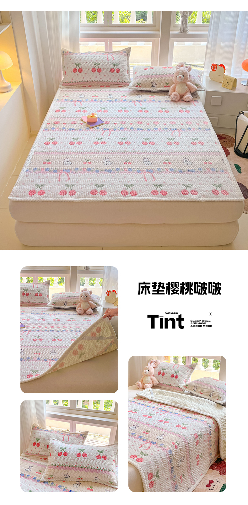 当前位置: 91家纺网 > 商品网购 > 床垫/床褥 > 普通床垫 > 川悦生活 2024新款A类印花雪花绒床垫加厚绒保暖床护垫 床垫樱桃啵啵