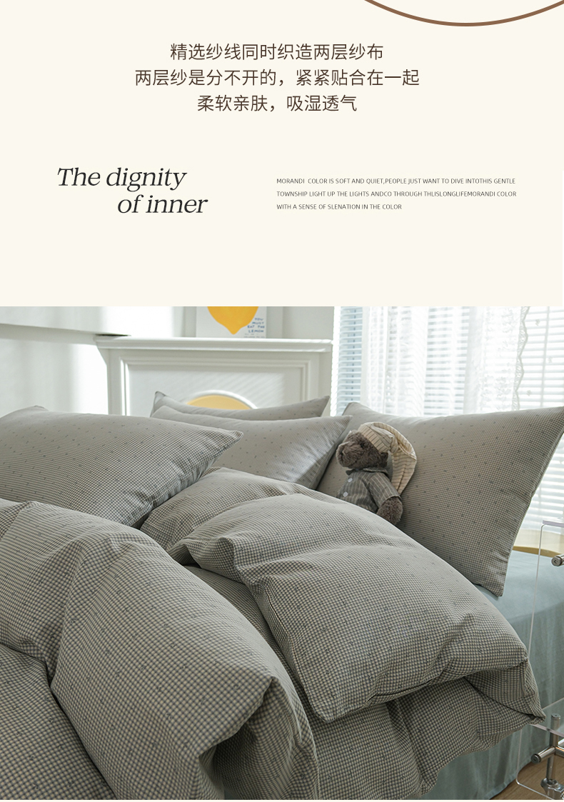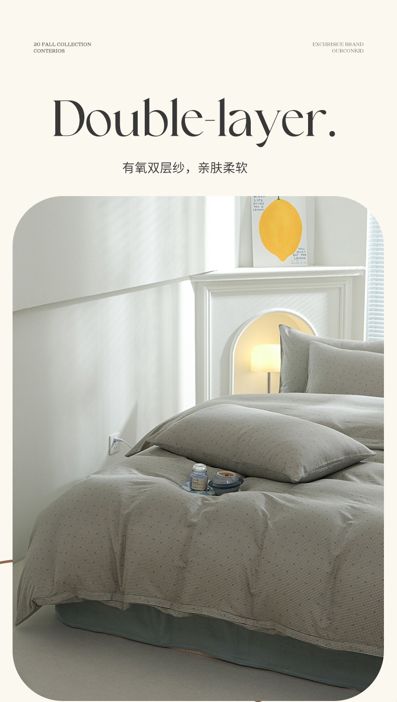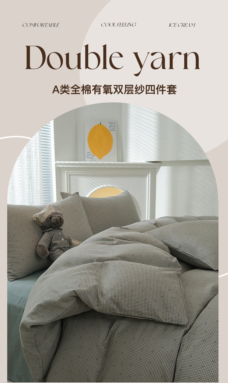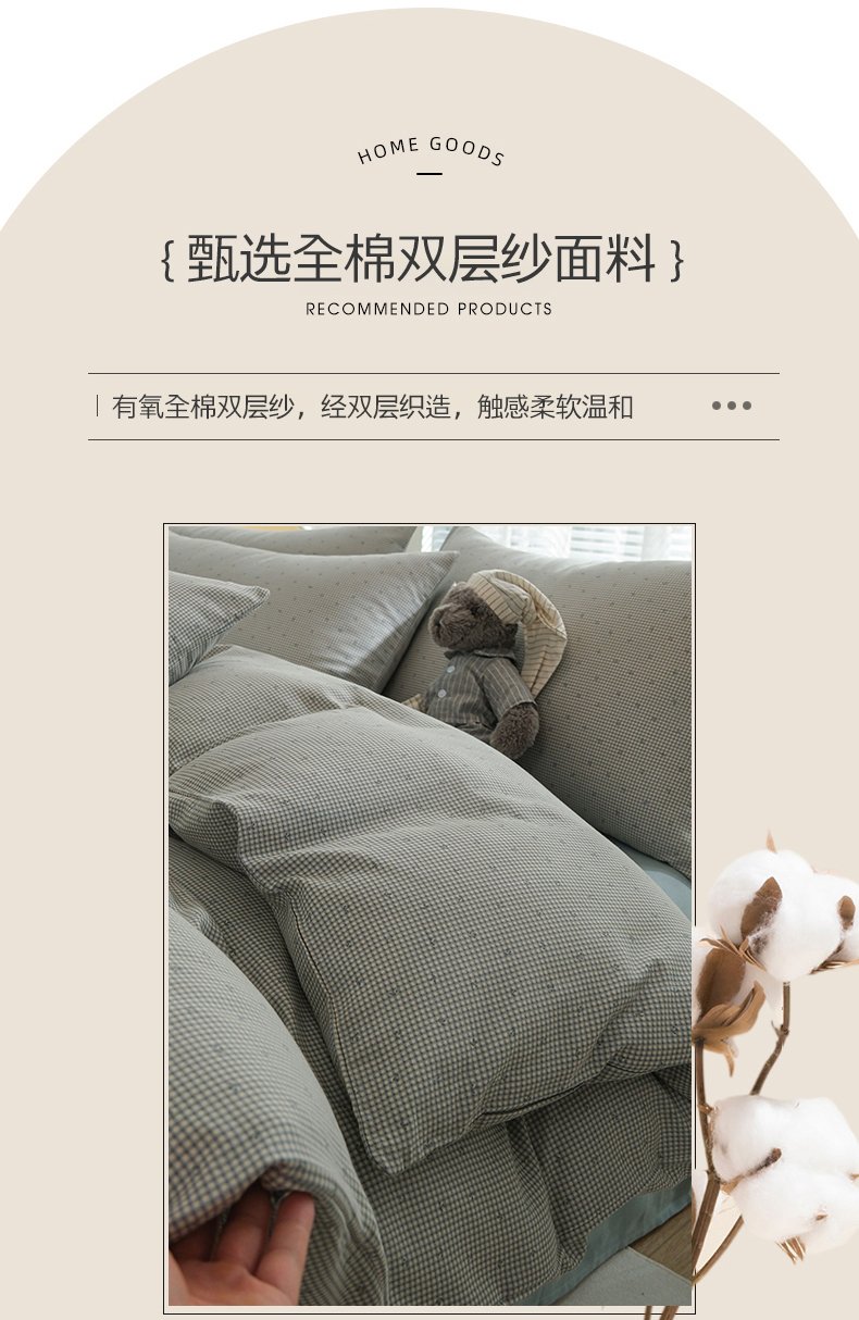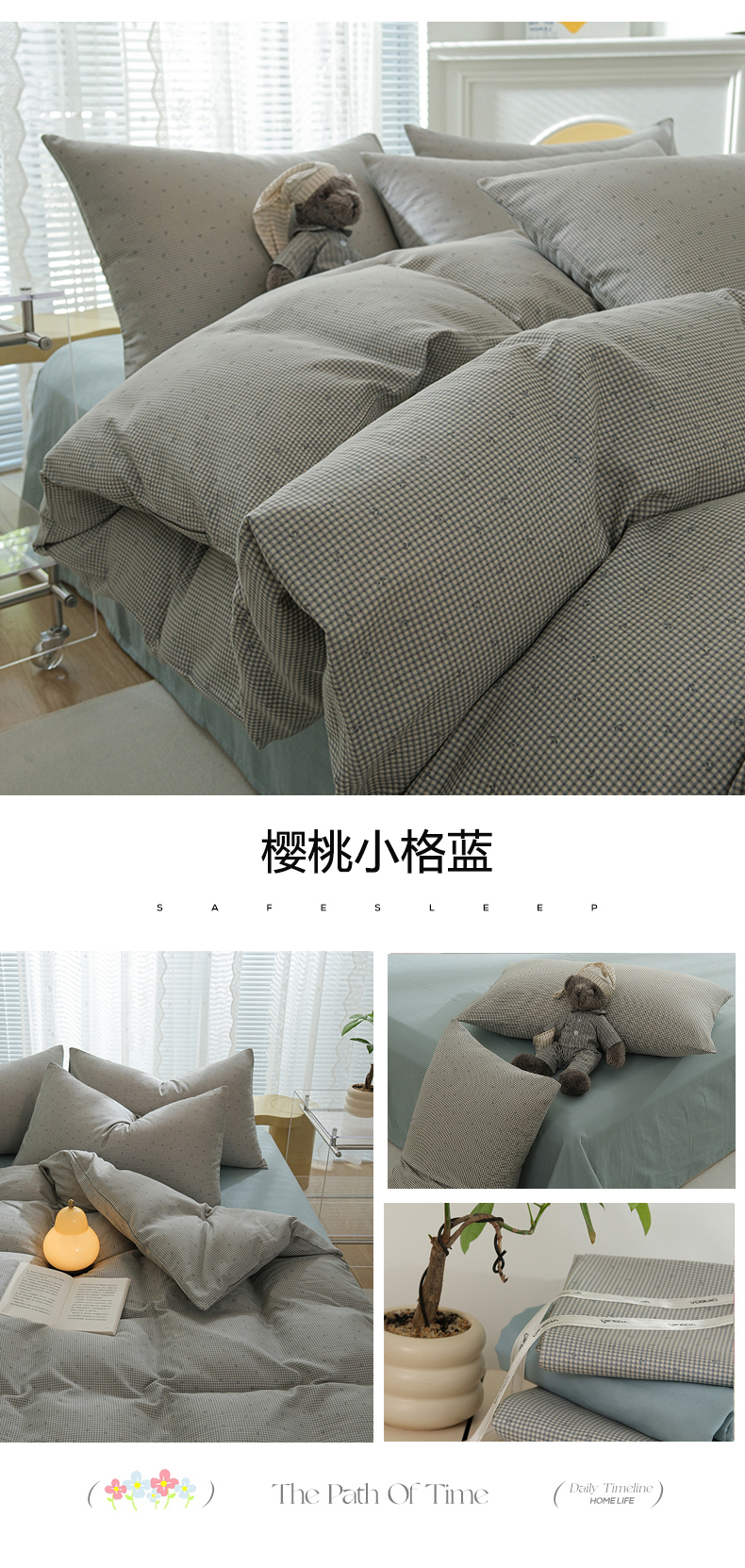 当前位置: 91家纺网 > 商品网购 > 床品套件 > 四件套 > 双层纱四件套 > 麦伦家居 2024秋冬新款A类全棉有氧双层纱四件套 樱桃小格兰