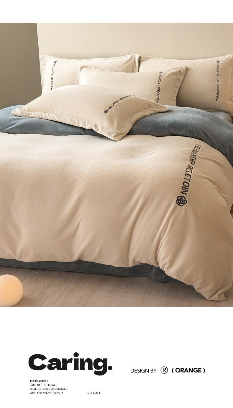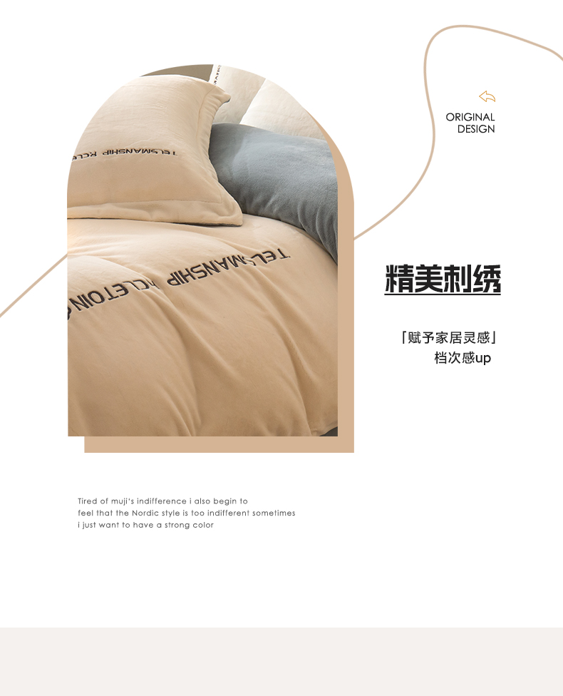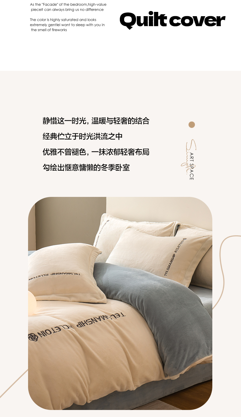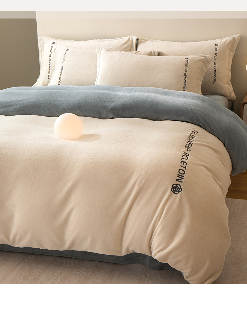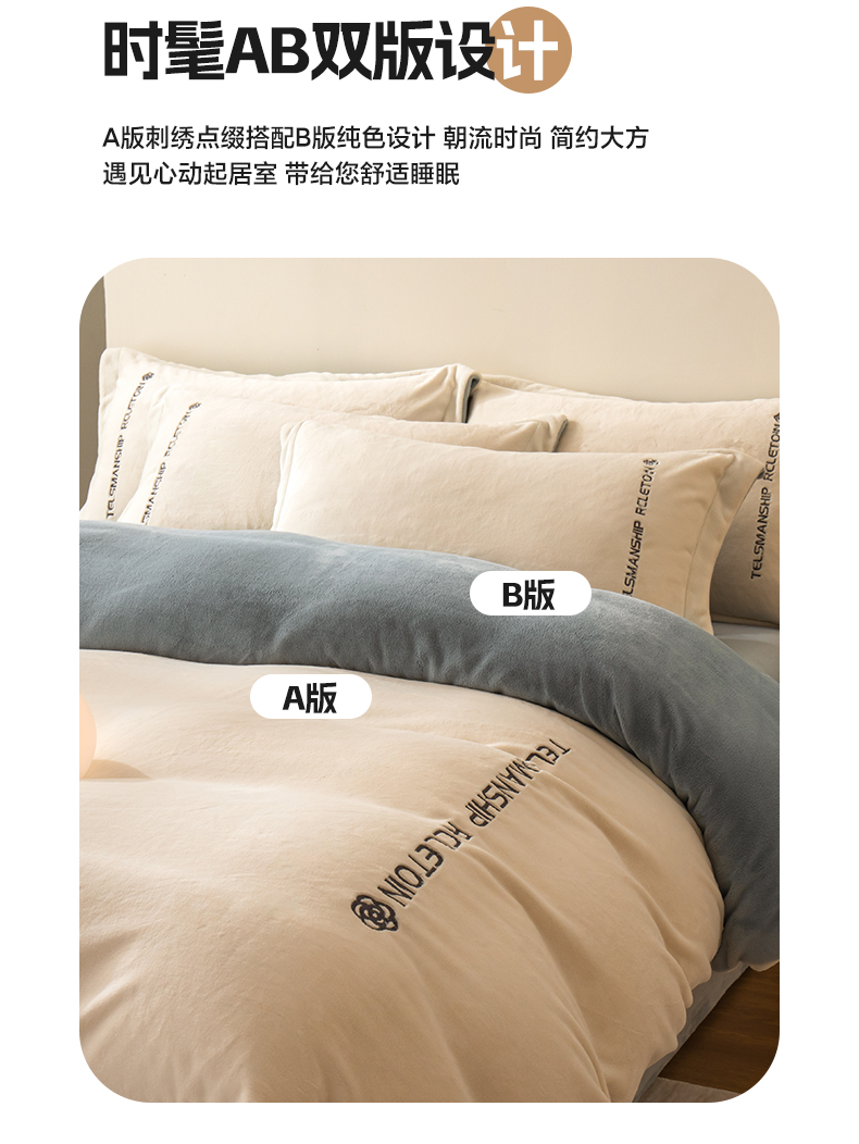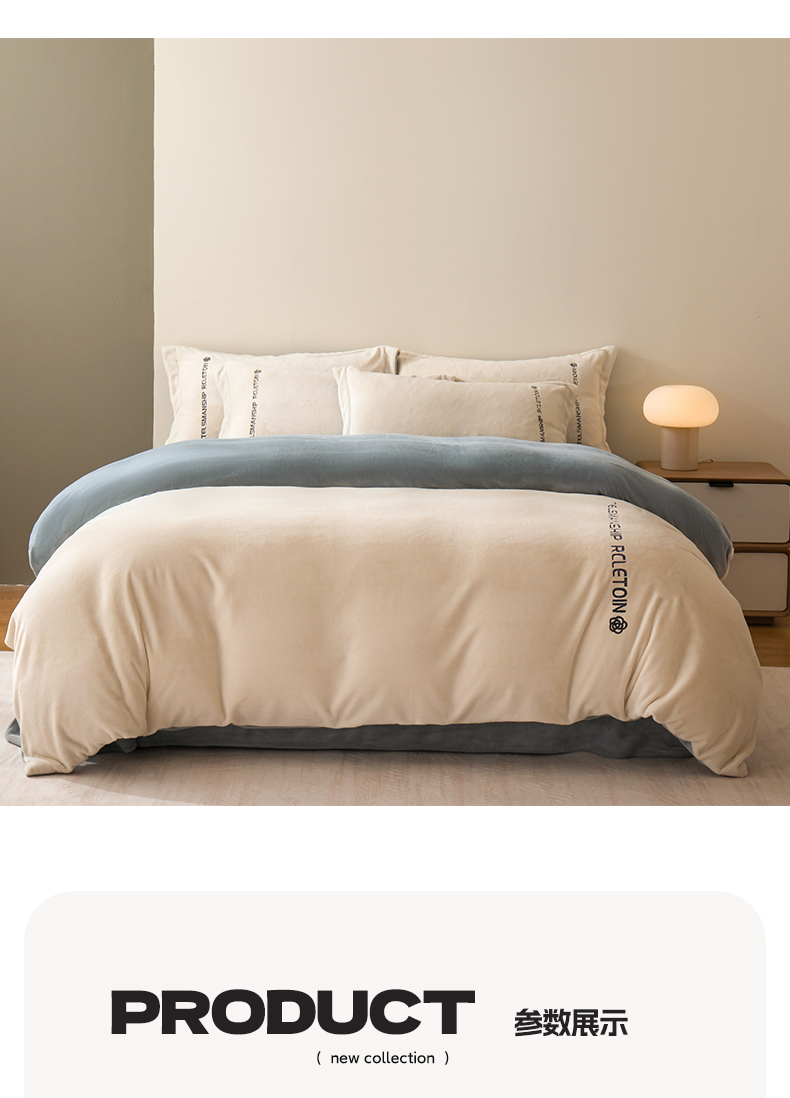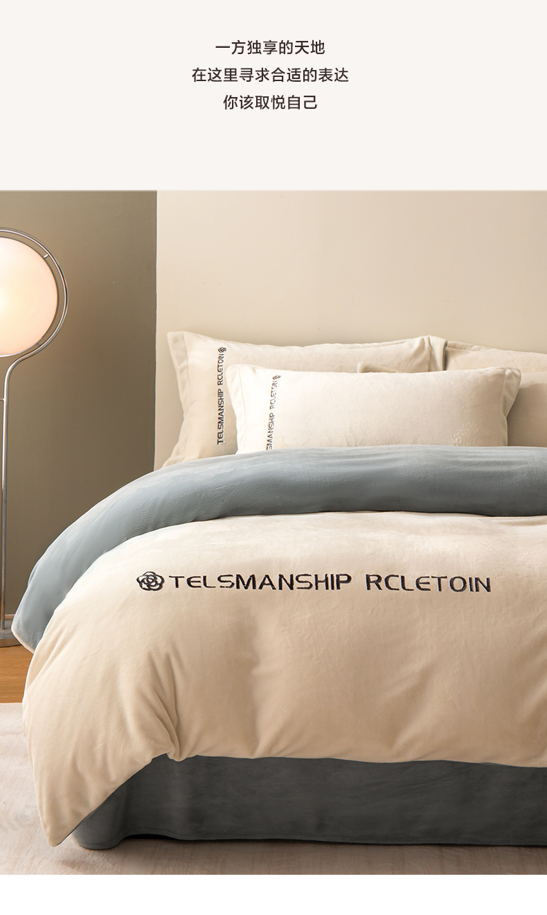 商品名称:花愿(原花纪) 2025新款牛奶绒撞色刺绣四件套—泽西 奶昔白+星辰灰