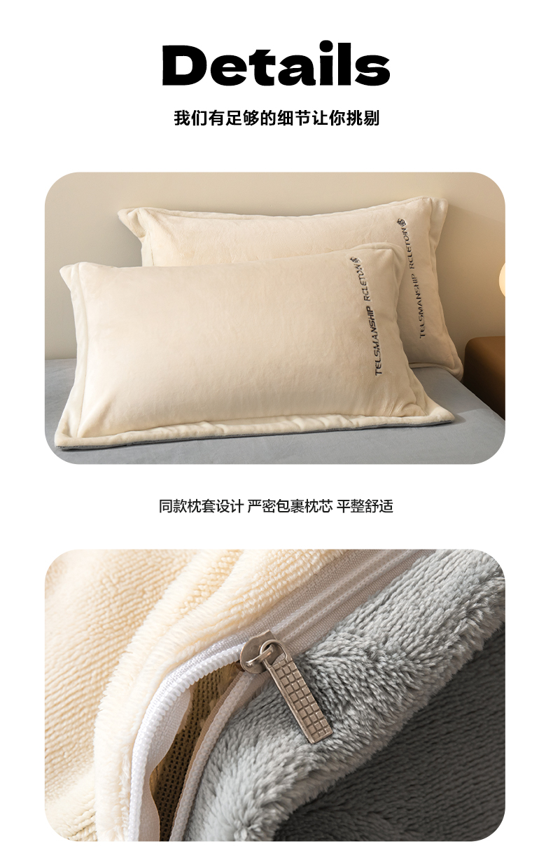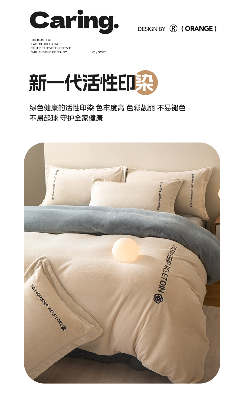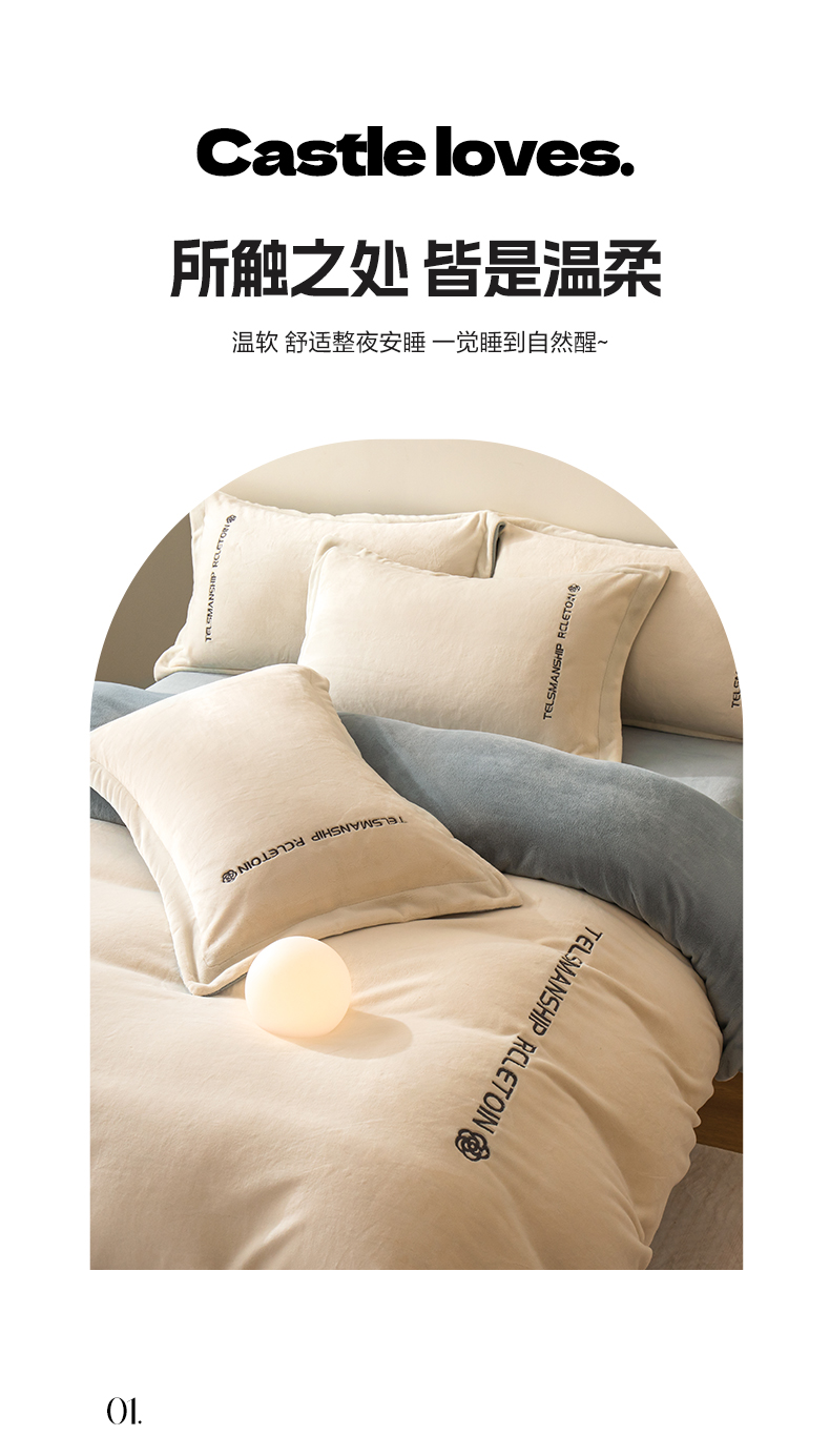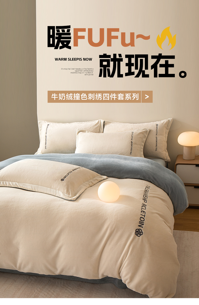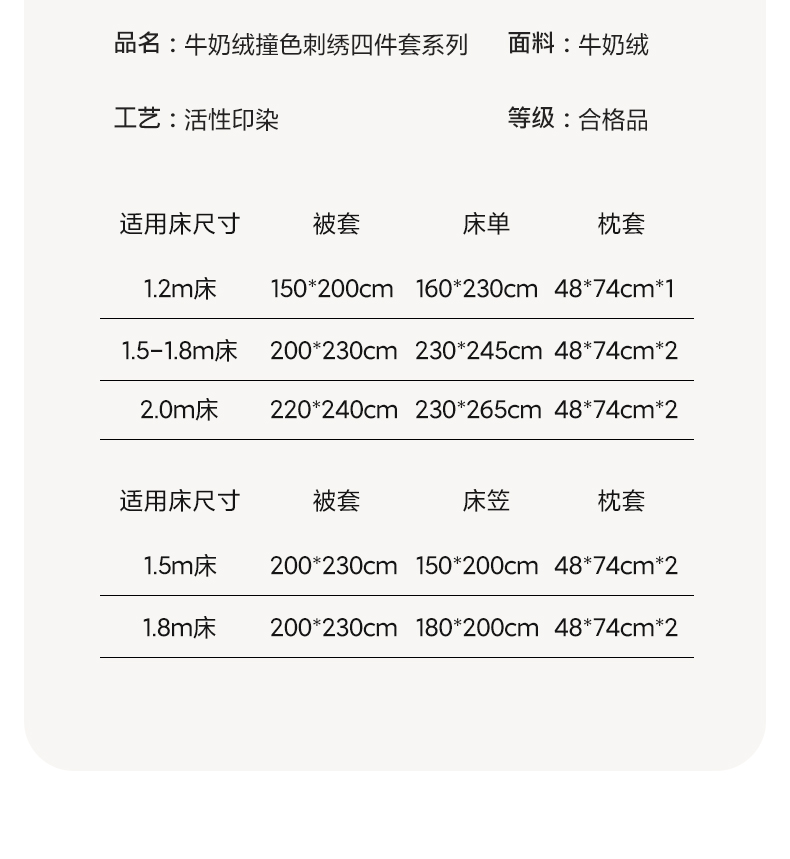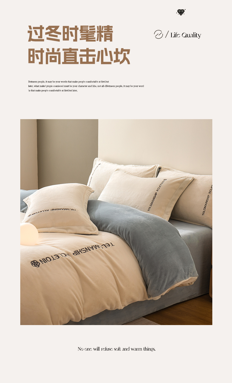 商品名称:花愿(原花纪) 2025新款牛奶绒撞色刺绣四件套—泽西 奶昔白+星辰灰