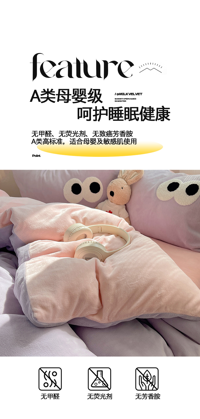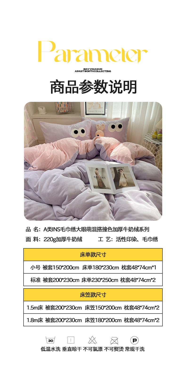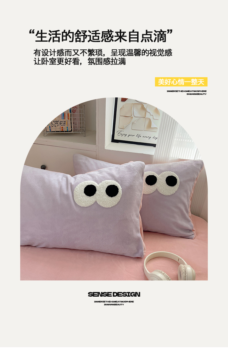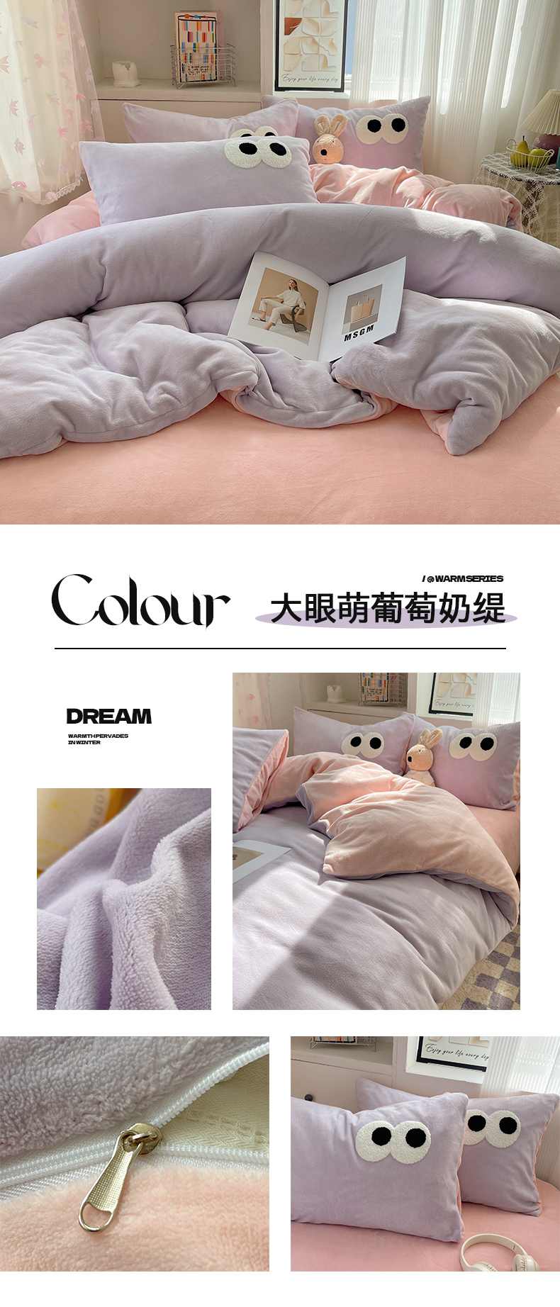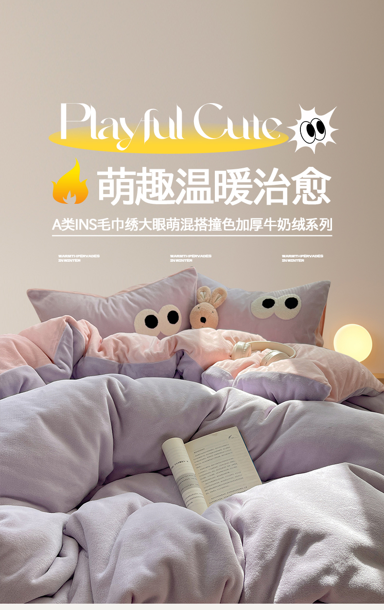 当前位置: 91家纺网 > 商品网购 > 床品套件 > 四件套 > 牛奶绒四件套 > 桃子家居 2024新款A类ins加厚毛巾绣大眼萌混搭撞色牛奶绒系列四件套 绒毛巾绣-大眼萌葡萄奶缇