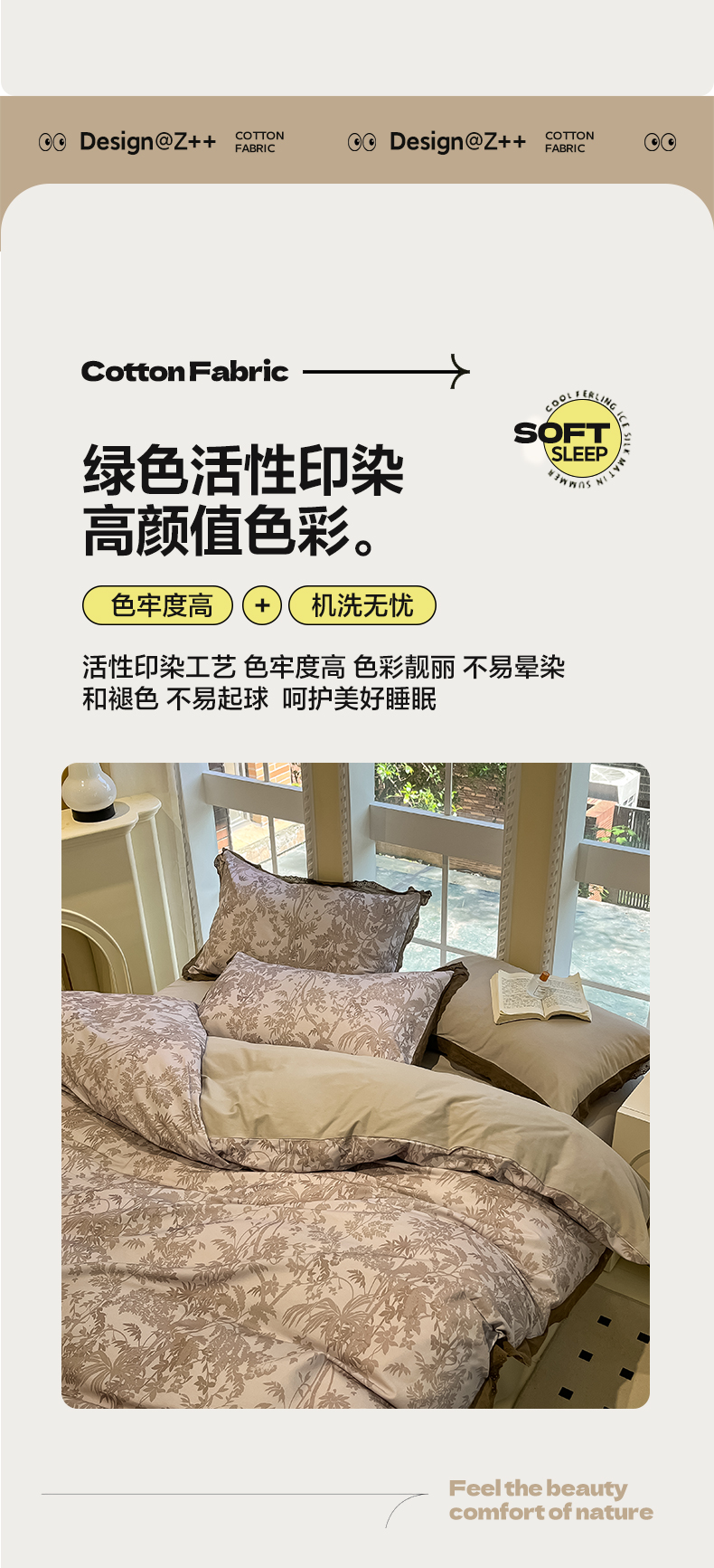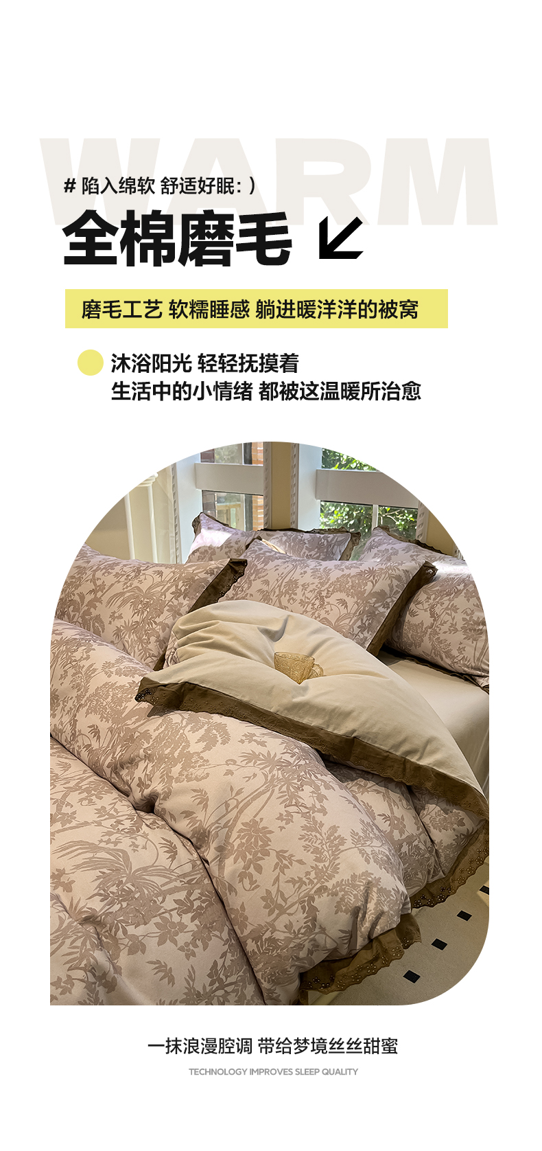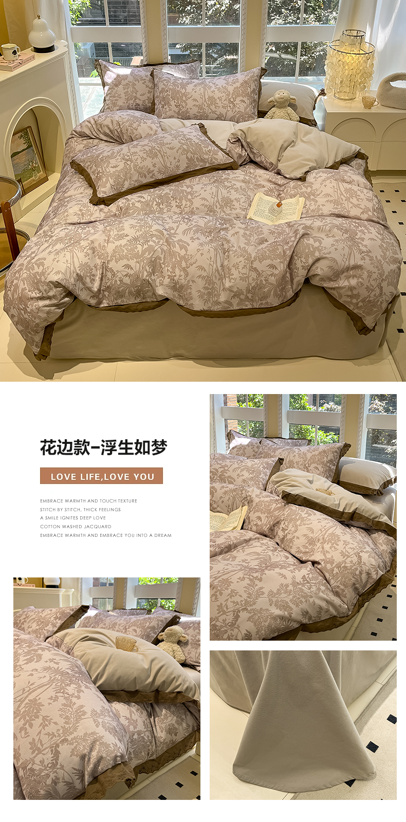 商品名称:沐辰 2024新款A类全棉磨毛花边款四件套 花边款-浮生如梦