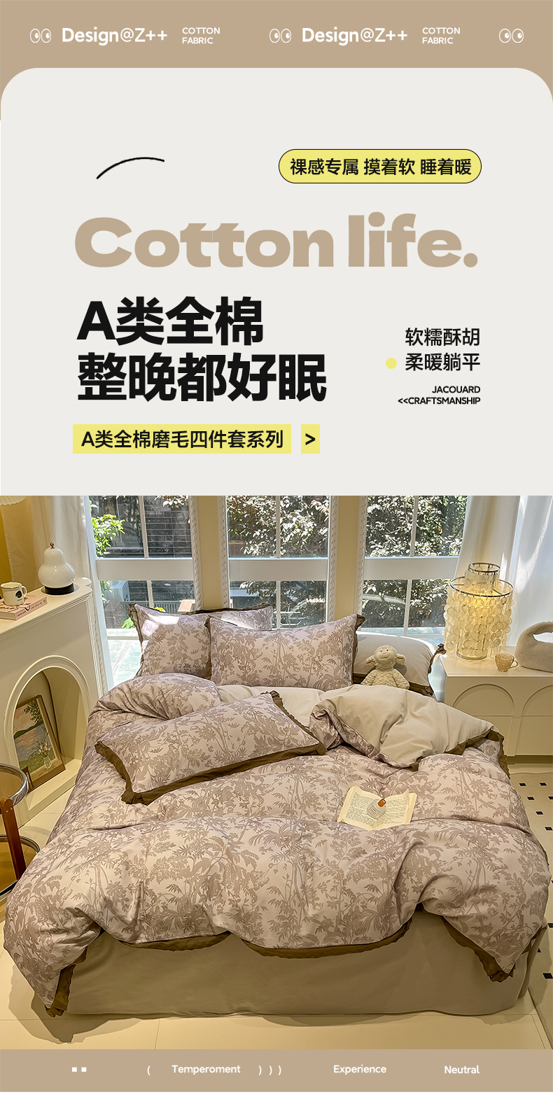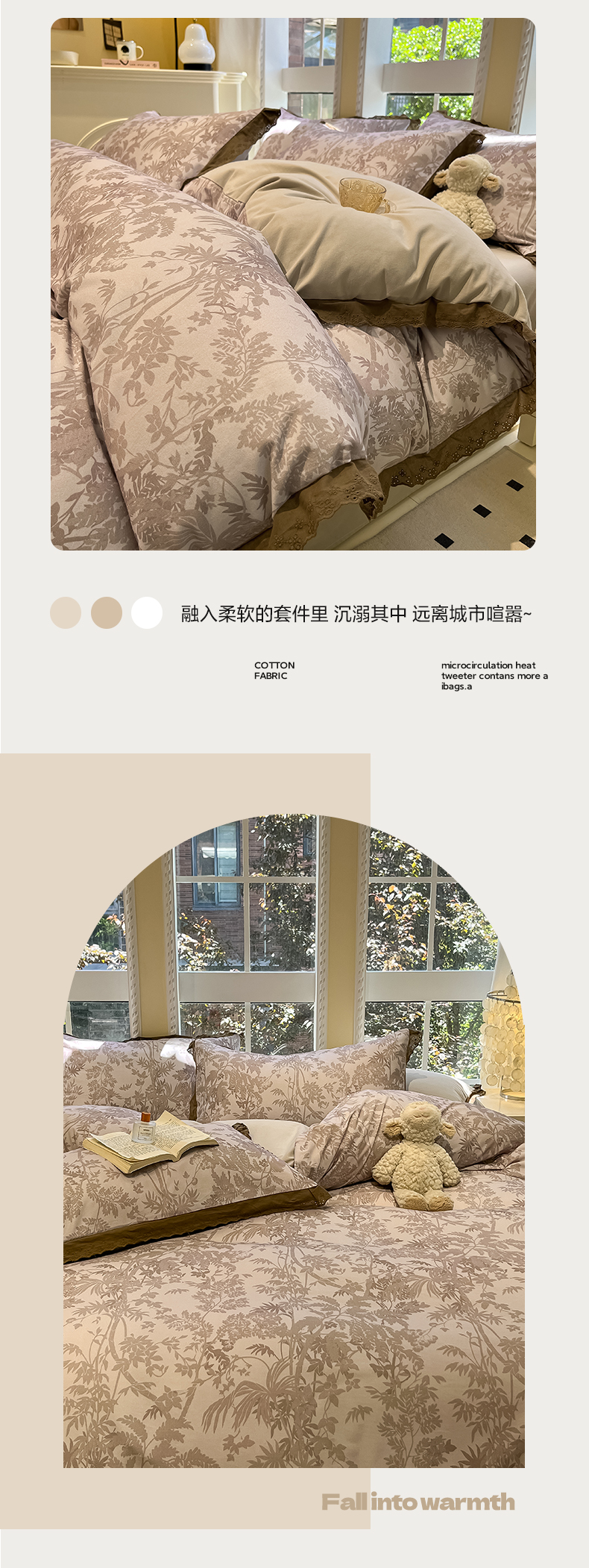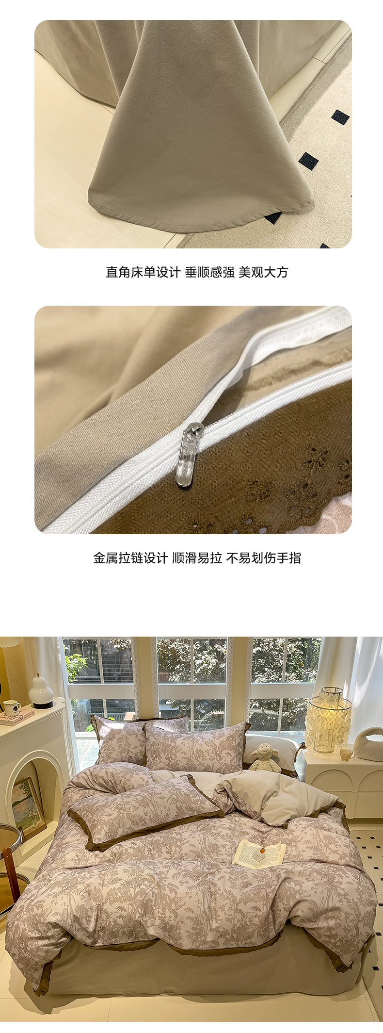 商品名称:沐辰 2024新款A类全棉磨毛花边款四件套 花边款-浮生如梦