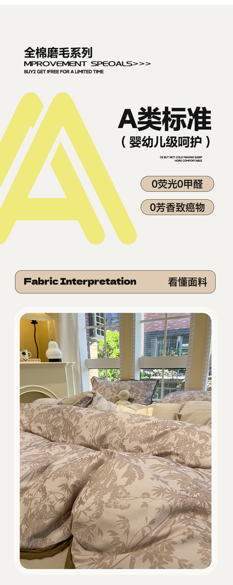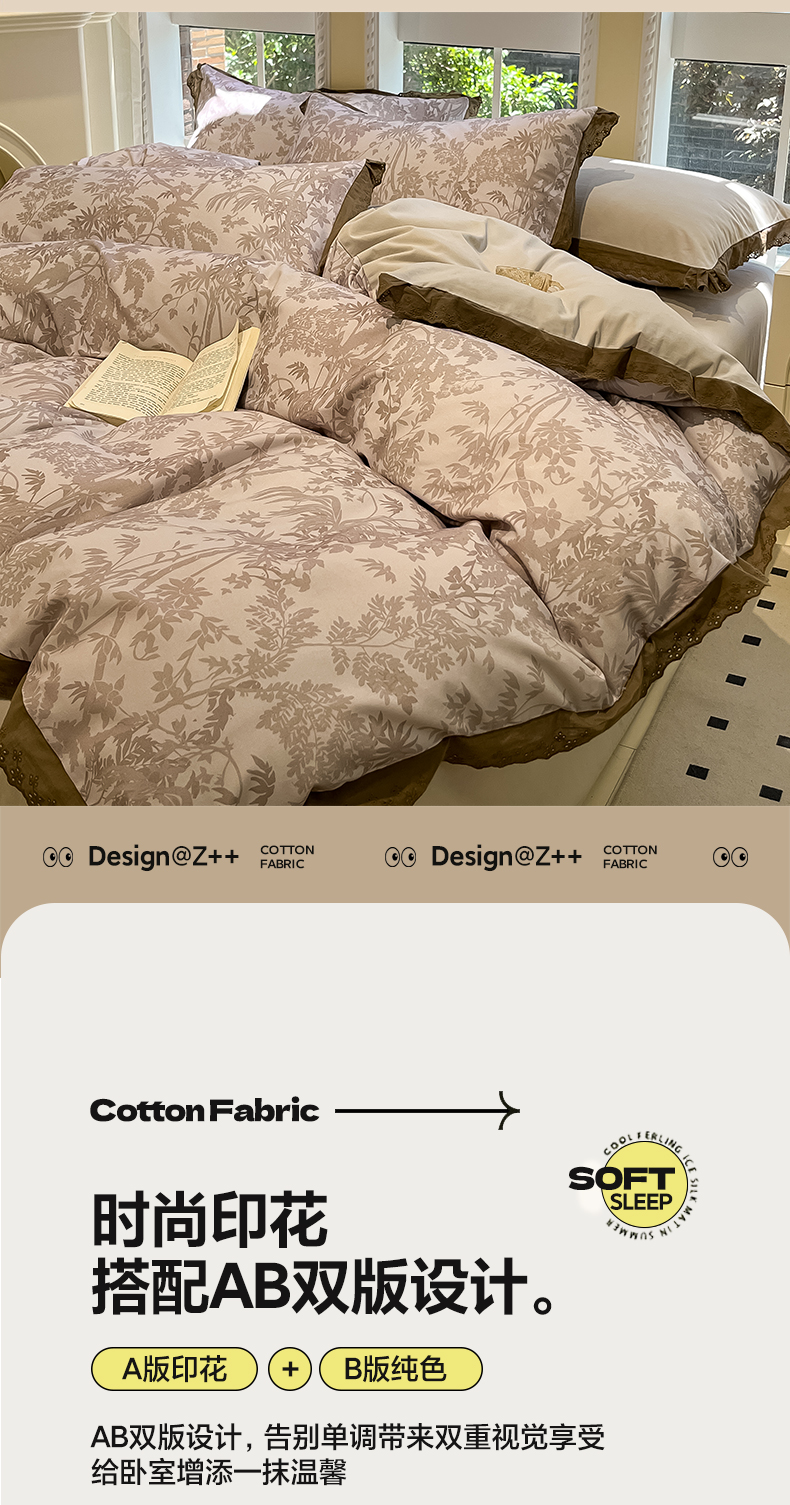 沐辰 2024新款A类全棉磨毛花边款四件套 花边款-浮生如梦