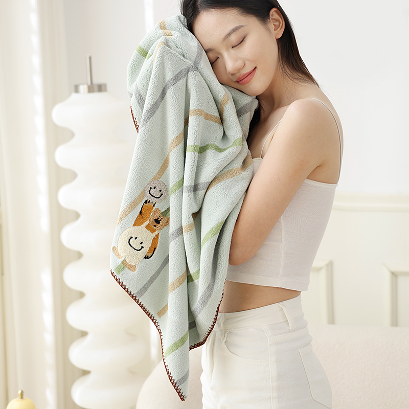 当前位置: 91家纺网 > 商品网购 > 居家日用 > 毛巾/浴巾/浴袍 > 浴巾 > 朴尔家纺-毛巾被 2024新款毛巾绣勾边小格快乐鸭AB版珊瑚绒速吸速干毛巾浴巾 背带熊-蓝浴巾
