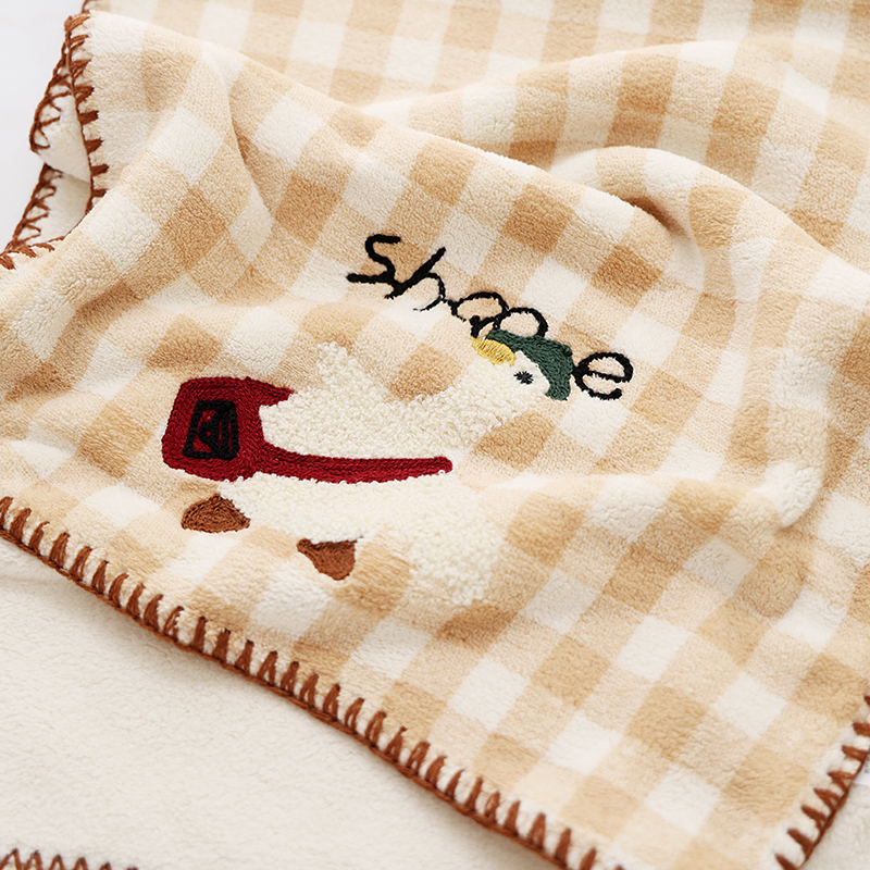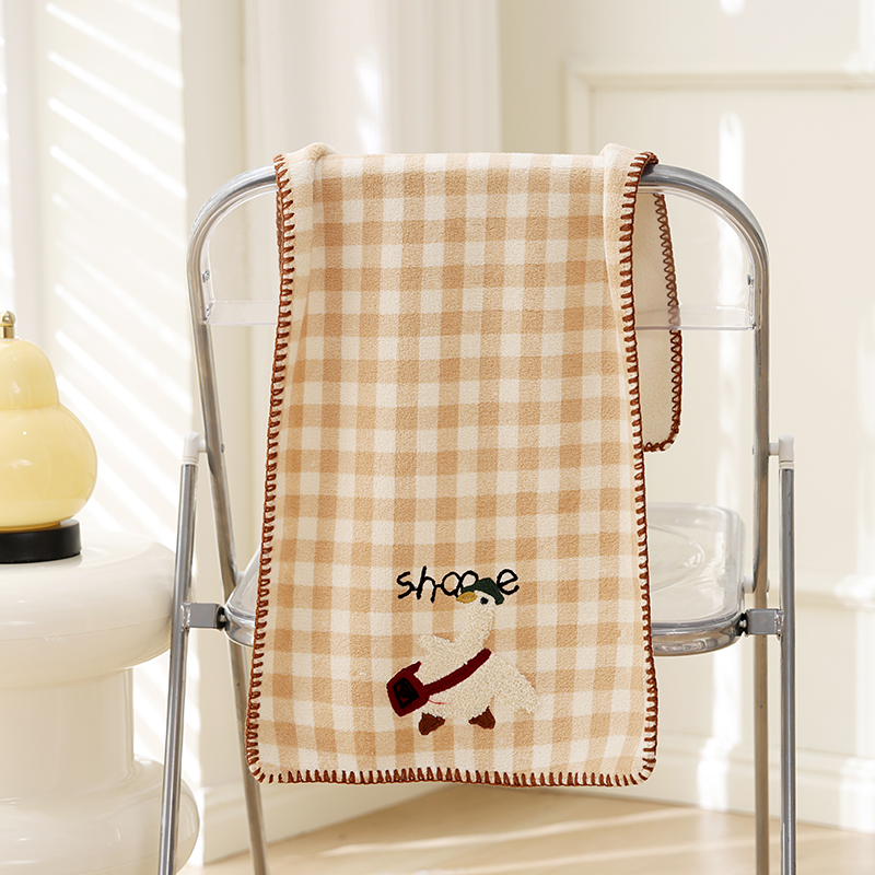 当前位置: 91家纺网 > 商品网购 > 居家日用 > 毛巾/浴巾/浴袍 > 浴巾 > 朴尔家纺-毛巾被 2024新款毛巾绣勾边小格快乐鸭AB版珊瑚绒速吸速干毛巾浴巾 格子快乐鸭-卡其毛巾