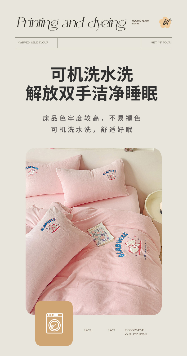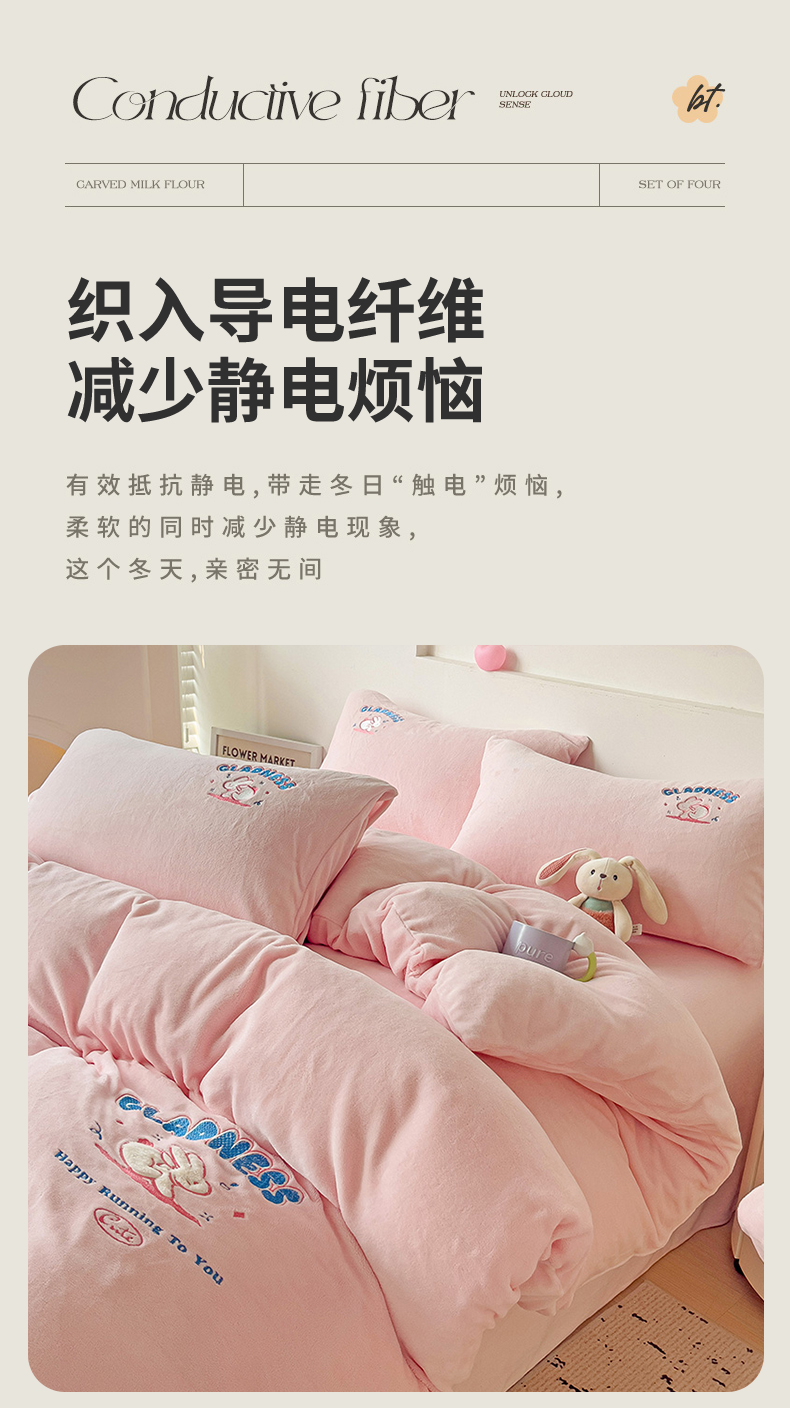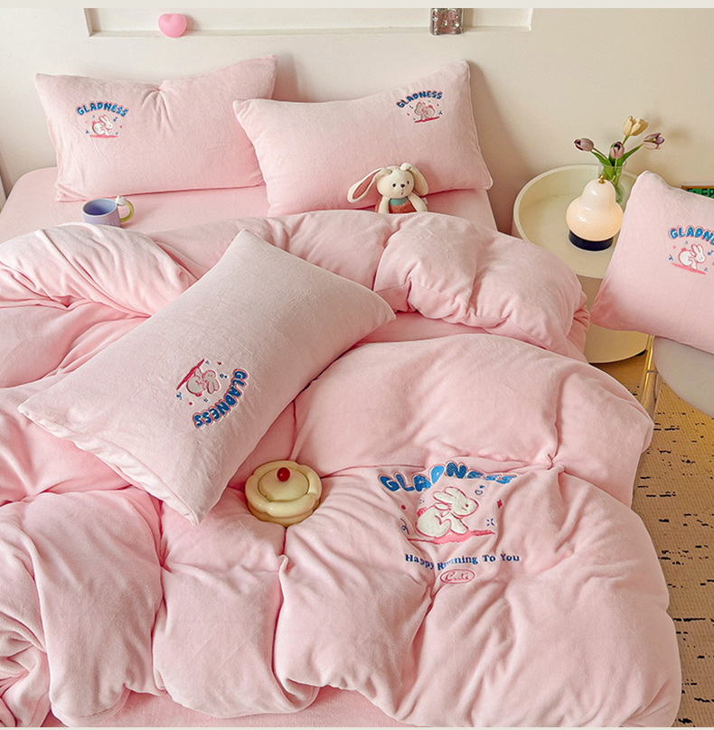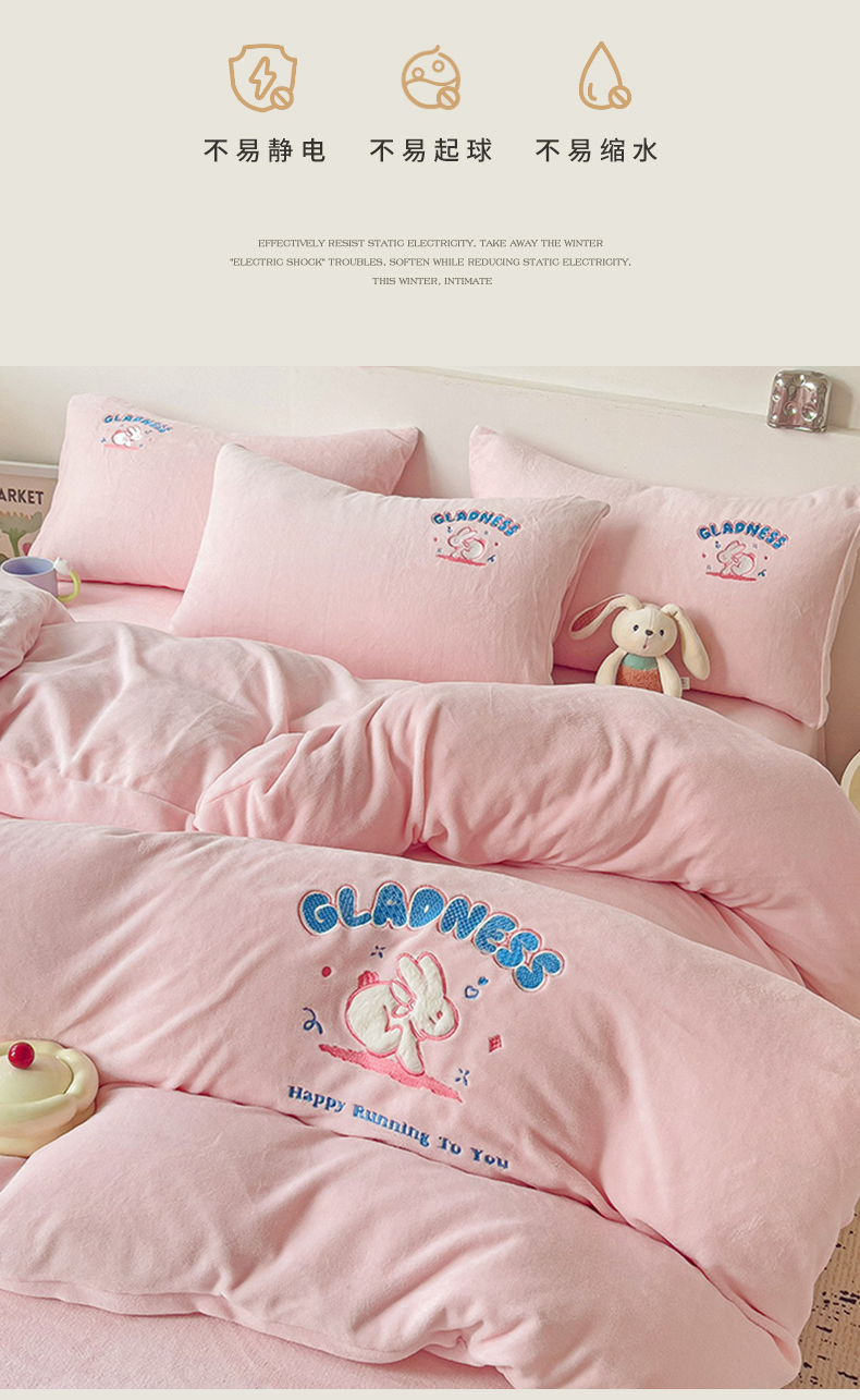 当前位置: 91家纺网 > 商品网购 > 床品套件 > 四件套 > 牛奶绒四件套 > 眷恋家纺 2025新款牛奶绒兔毛贴布绣四件套 欢乐兔-浅粉