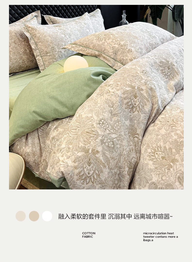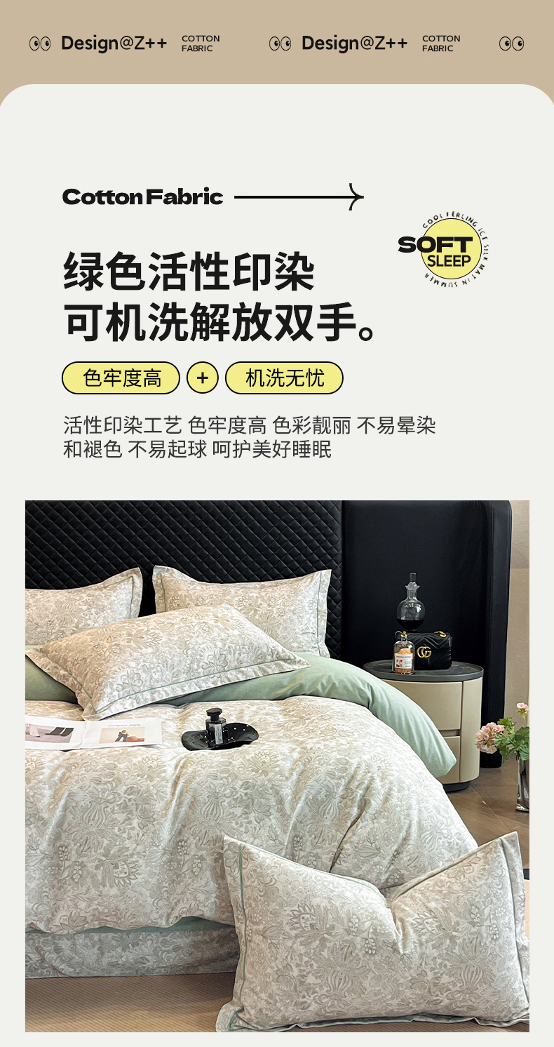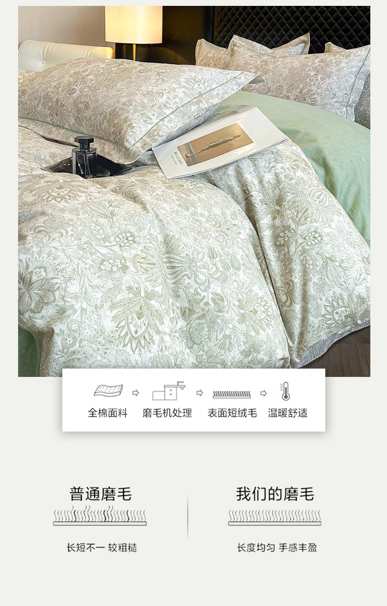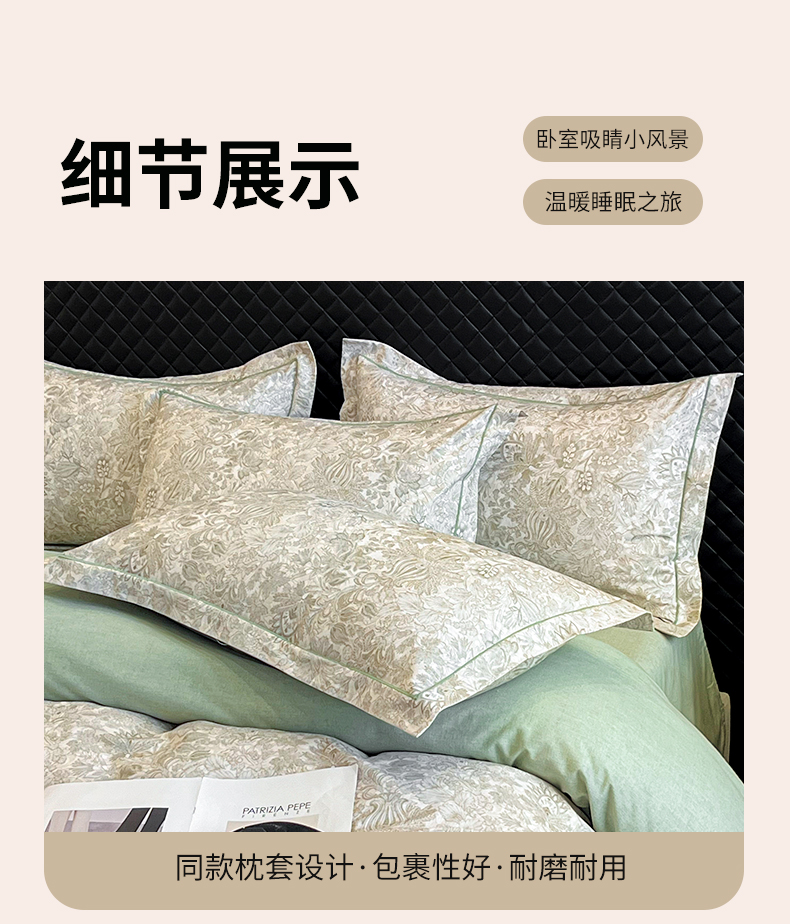 当前位置: 91家纺网 > 商品网购 > 床品套件 > 四件套 > 普通磨毛四件套 > 大柏树 2025新款A类全棉磨毛印花四件套 莉娅绿