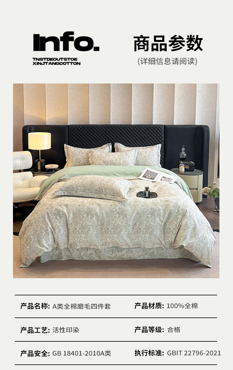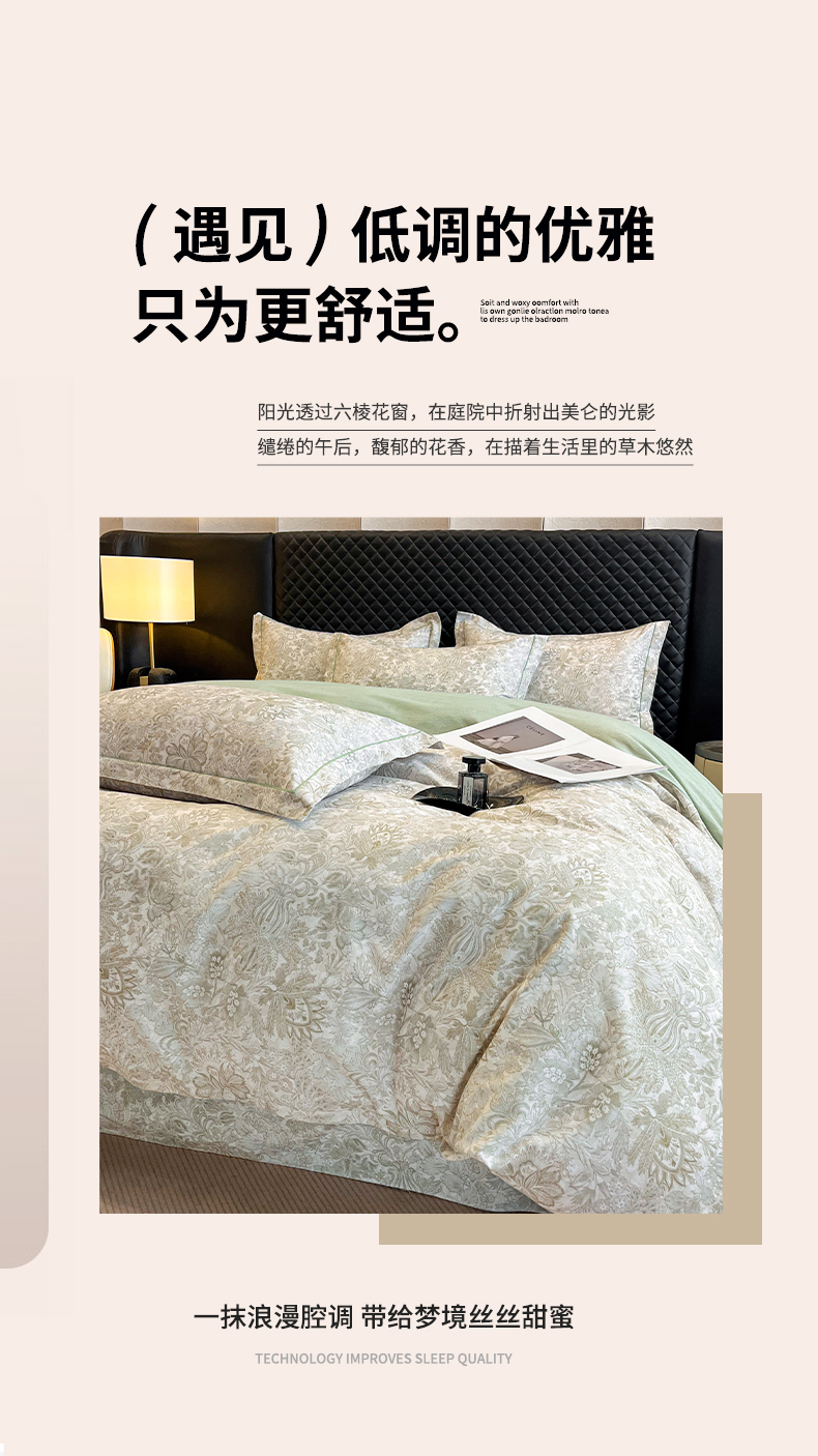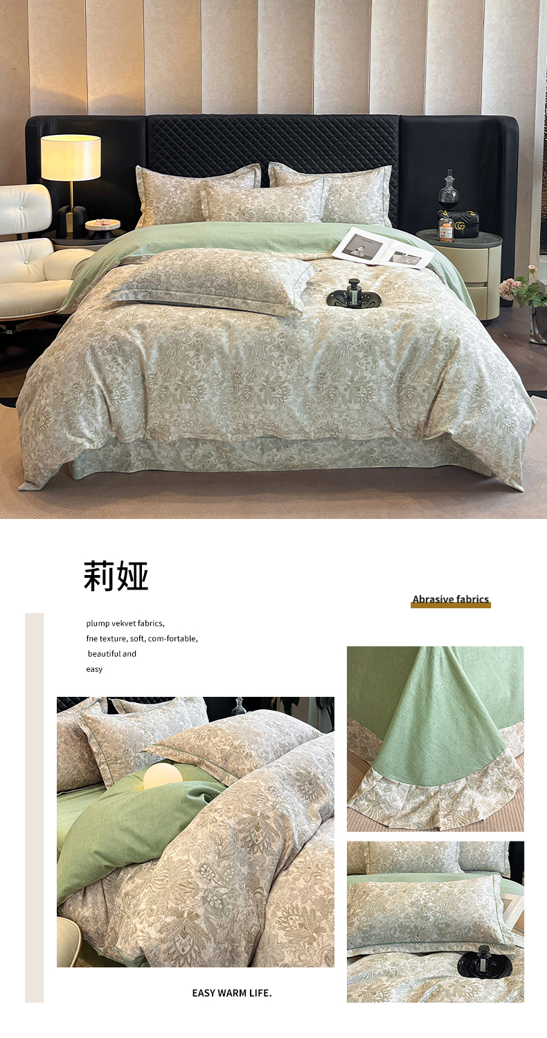 当前位置: 91家纺网 > 商品网购 > 床品套件 > 四件套 > 普通磨毛四件套 > 大柏树 2025新款A类全棉磨毛印花四件套 莉娅绿