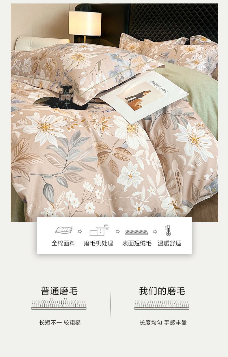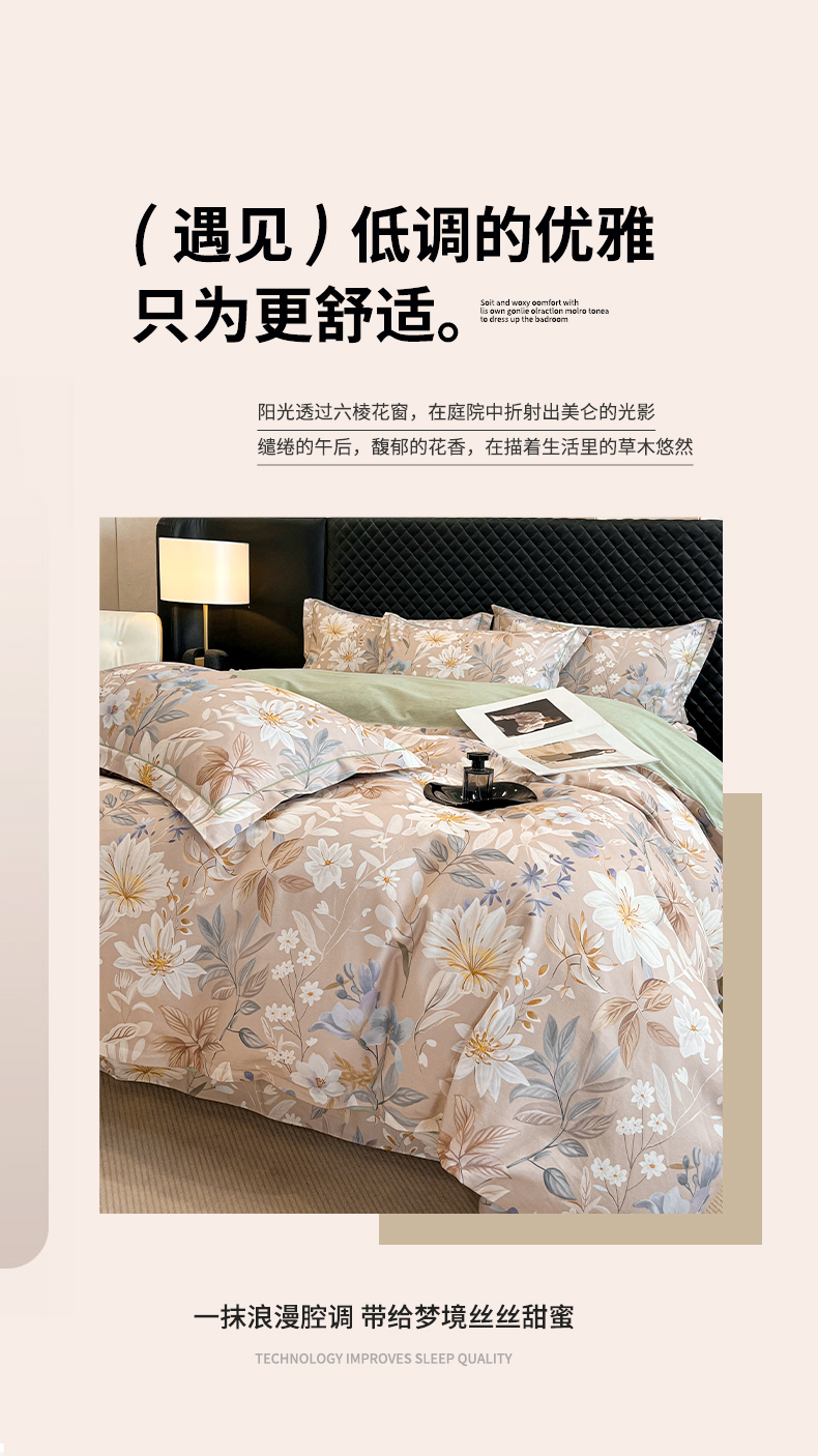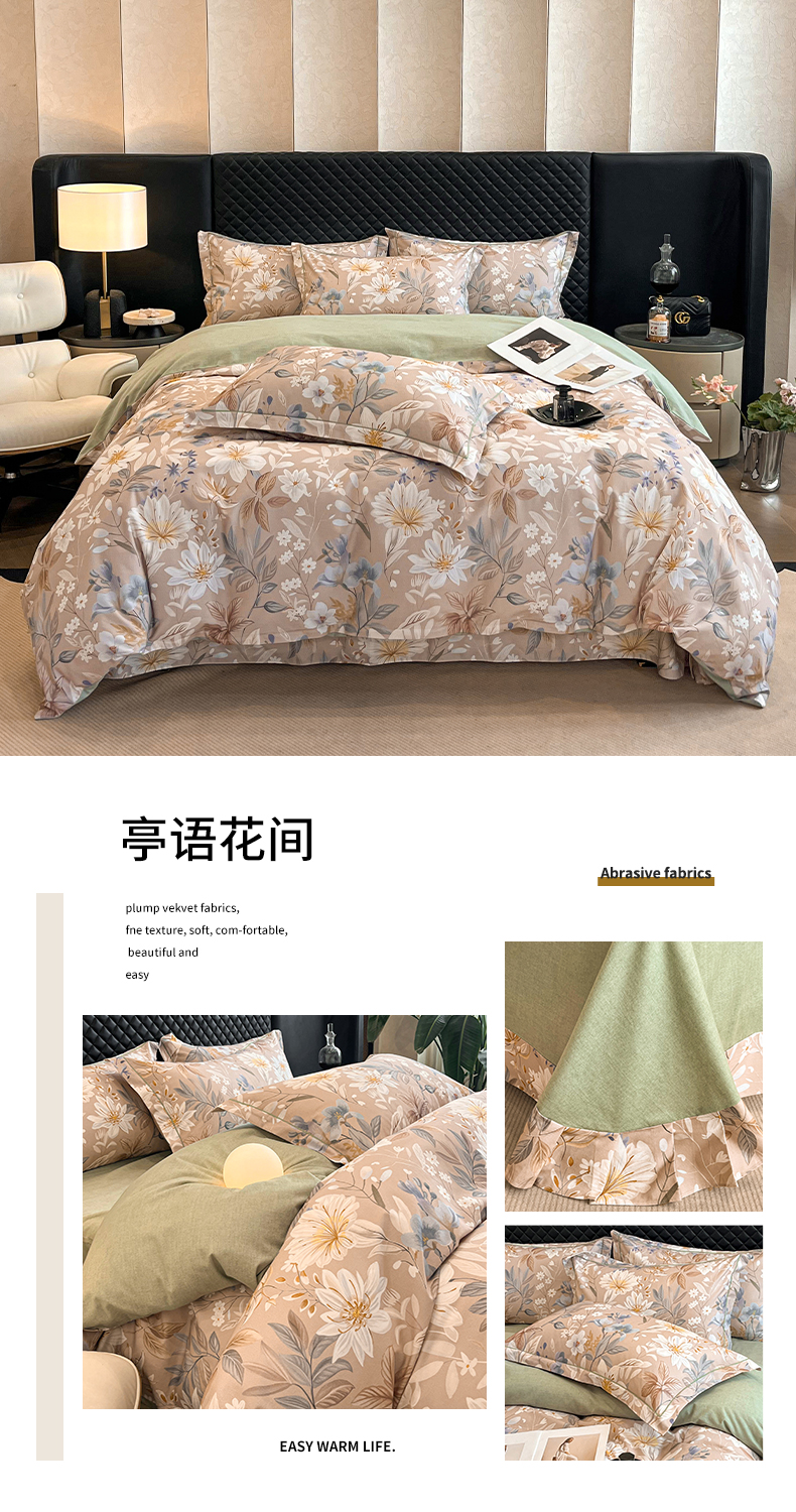 当前位置: 91家纺网 > 商品网购 > 床品套件 > 四件套 > 普通磨毛四件套 > 大柏树 2025新款A类全棉磨毛印花四件套 亭语花间