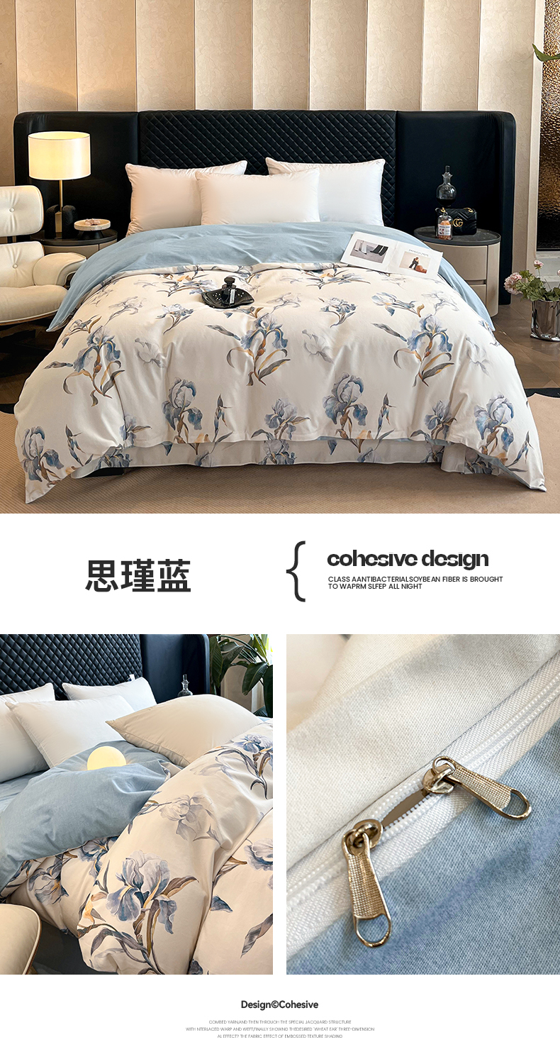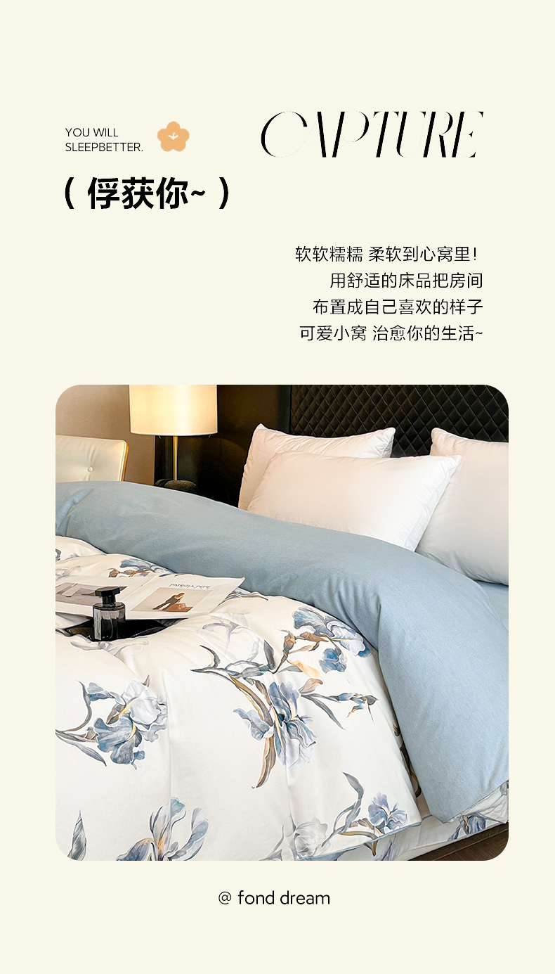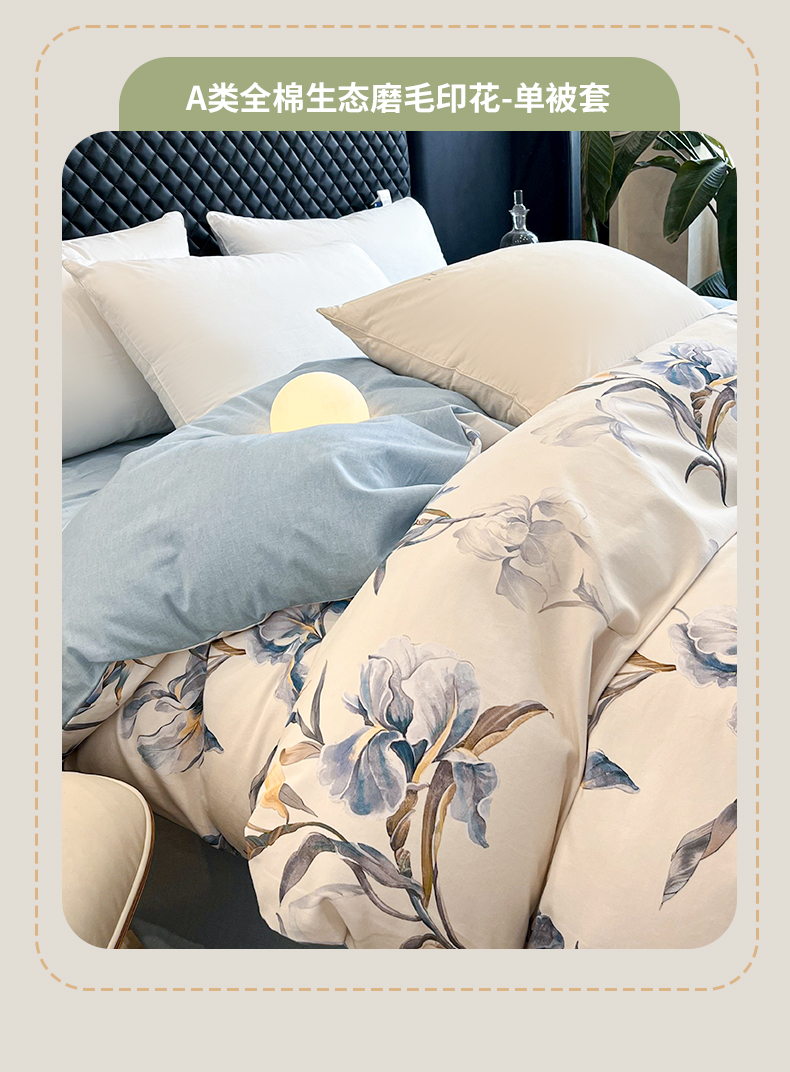 • 91家纺网 家纺一手货源 找家纺 大柏树 2025新款A类全棉磨毛印花单被套 思瑾蓝
