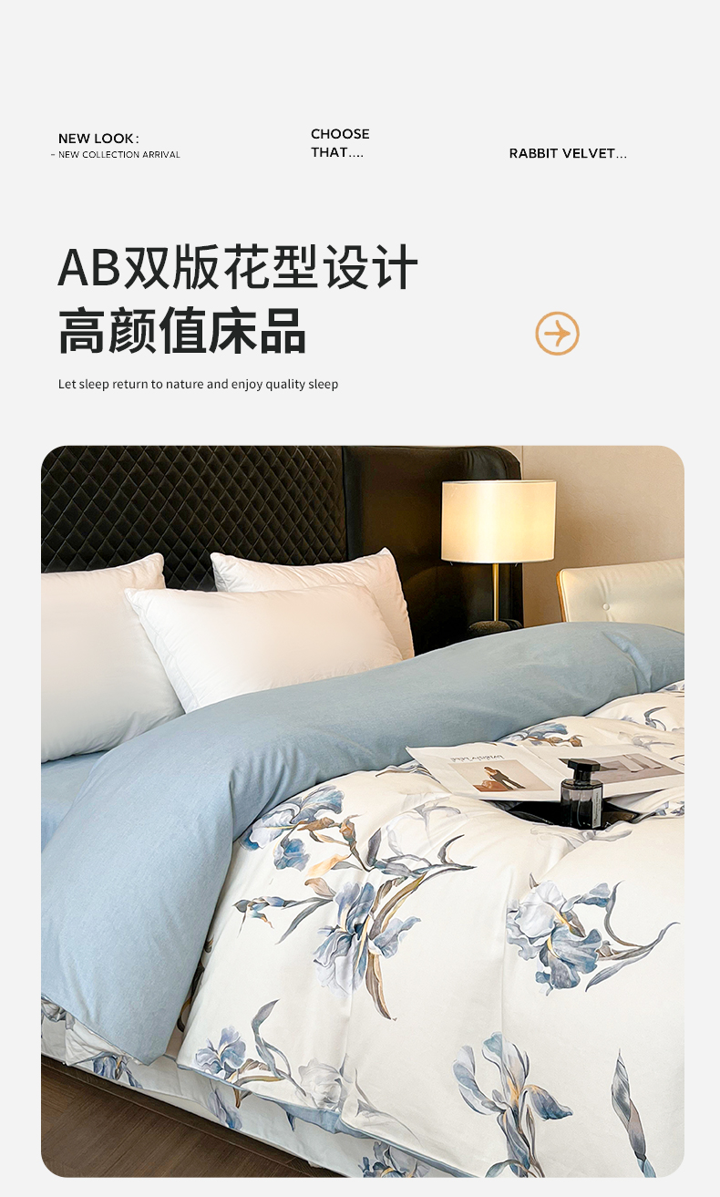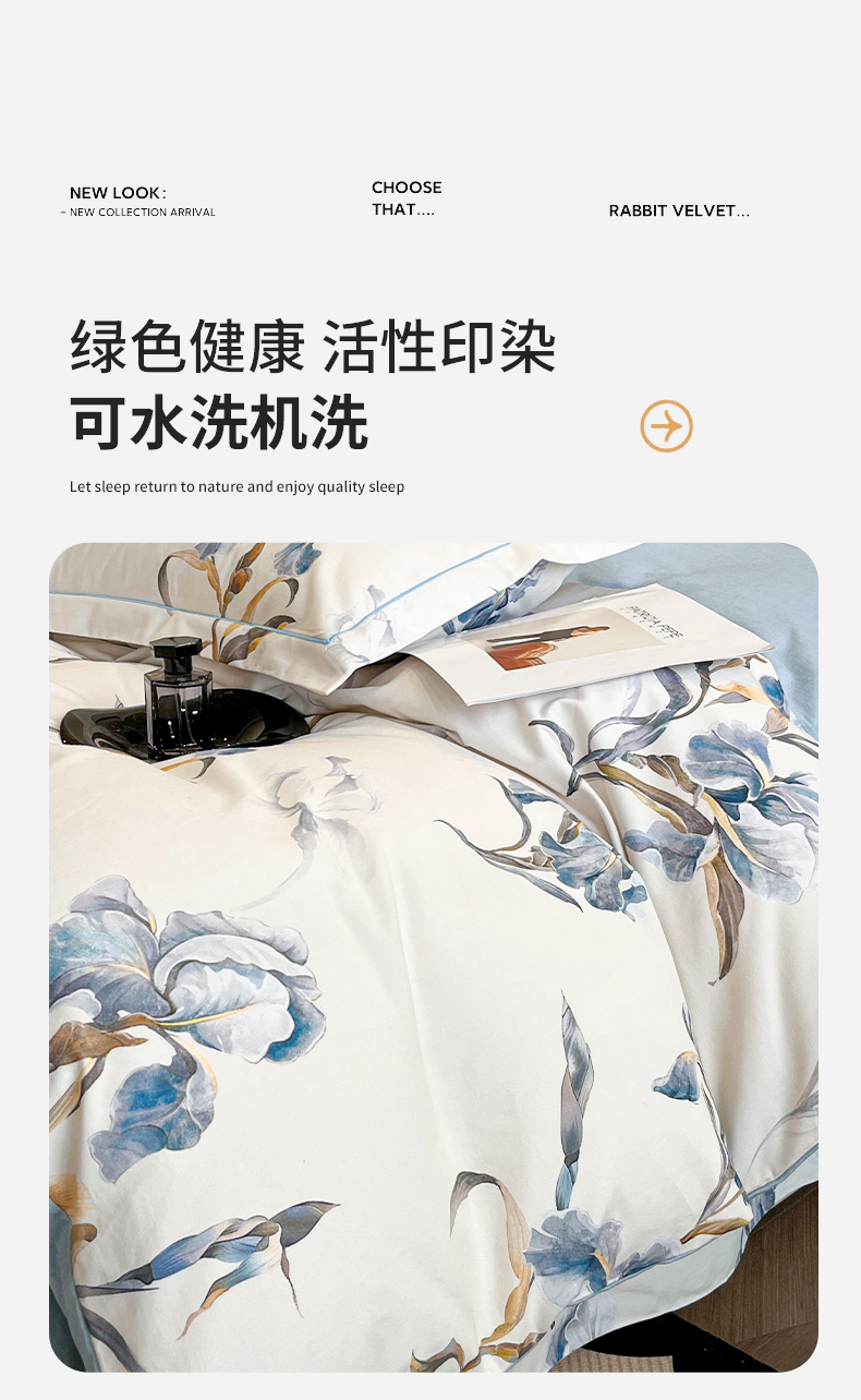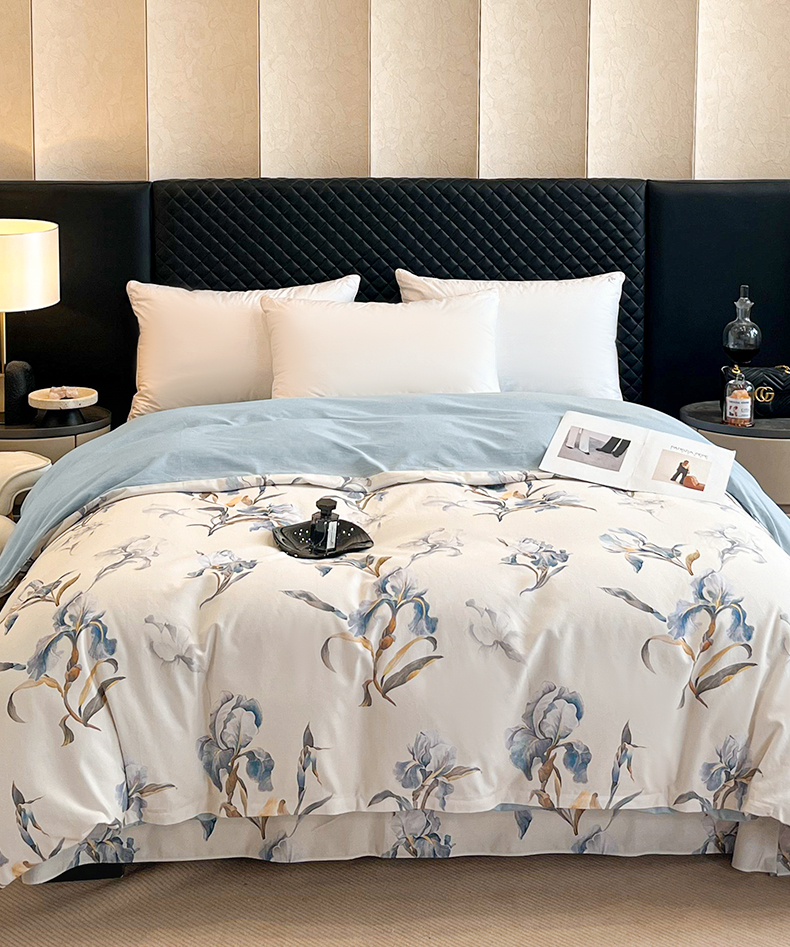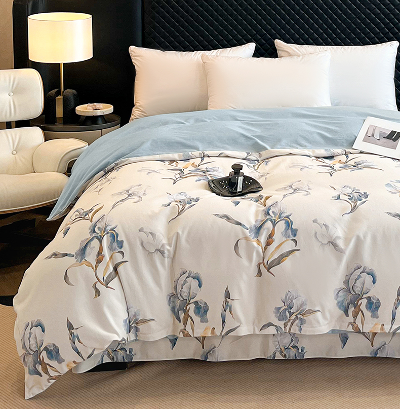 • 91家纺网 家纺一手货源 找家纺 大柏树 2025新款A类全棉磨毛印花单被套 思瑾蓝