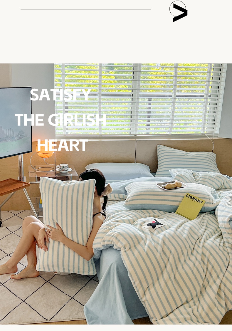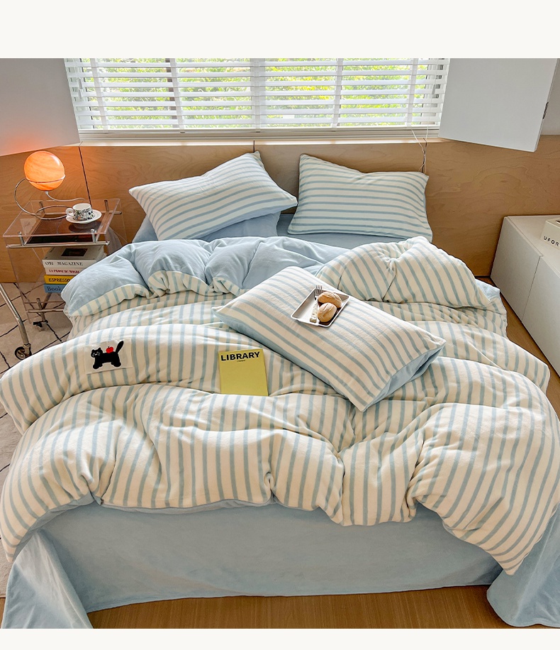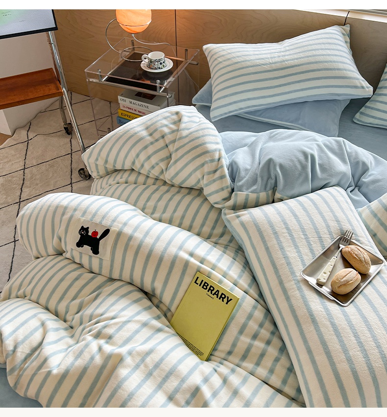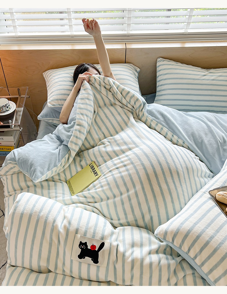 当前位置: 91家纺网 > 商品网购 > 床品套件 > 四件套 > 牛奶绒四件套 > 晨曦家纺 2024新款加厚无印风牛奶绒四件套 条纹猫咪-樱蓝