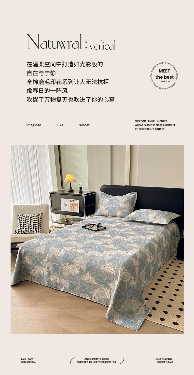 商品名称:大柏树 2025新款A类全棉磨毛印花单床单 黎贝卡