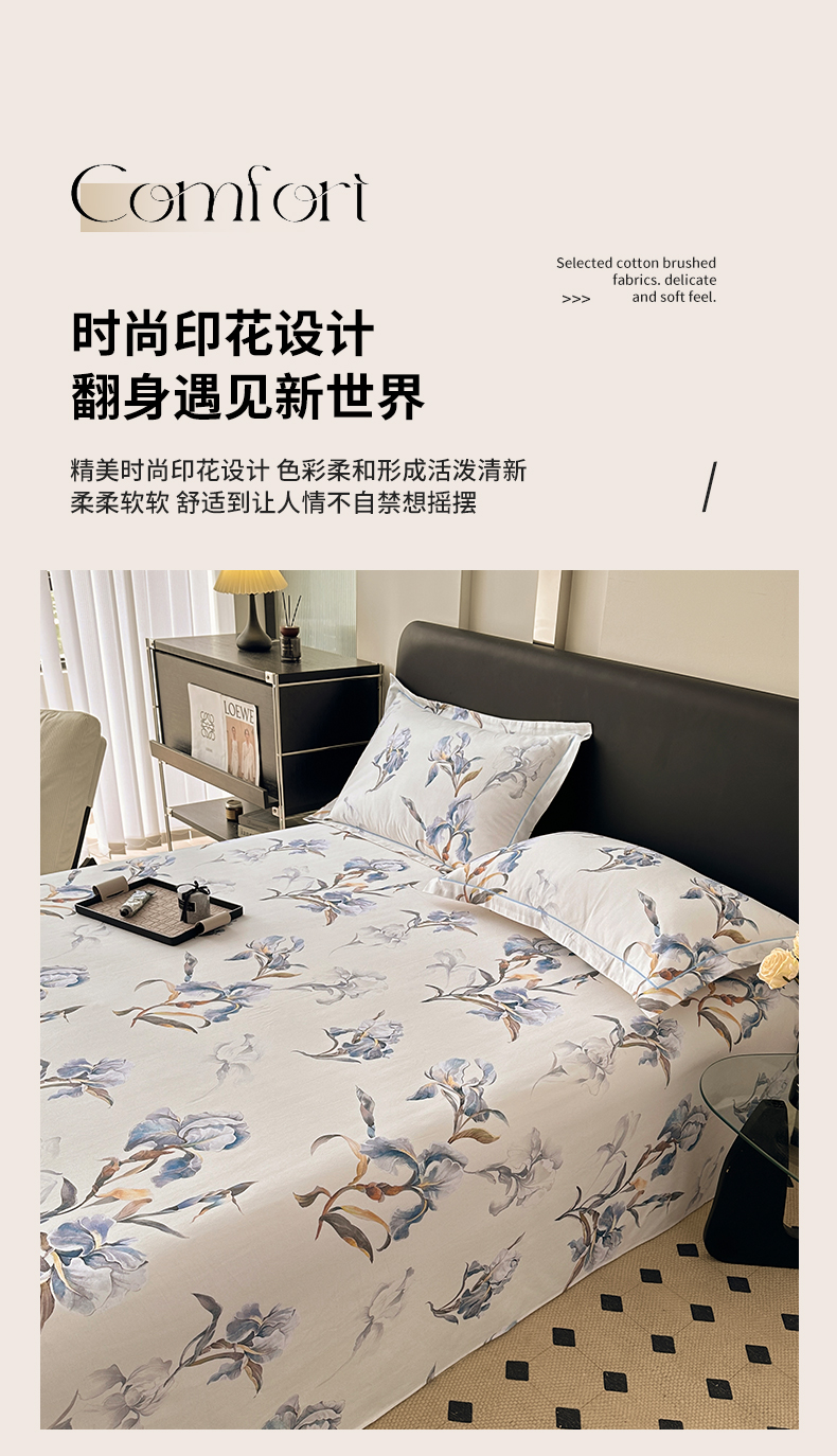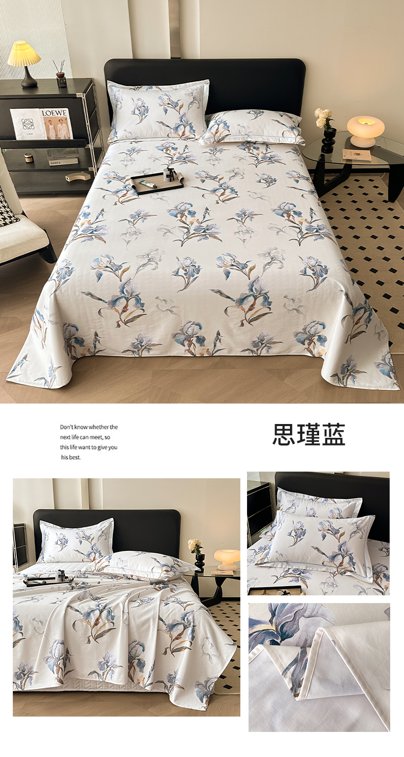 商品名称:大柏树 2025新款A类全棉磨毛印花单床单 思瑾蓝