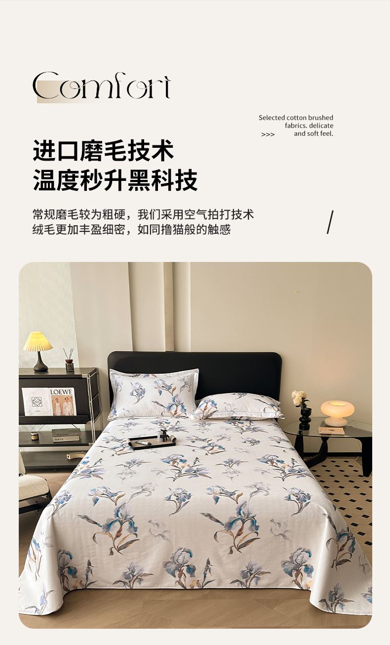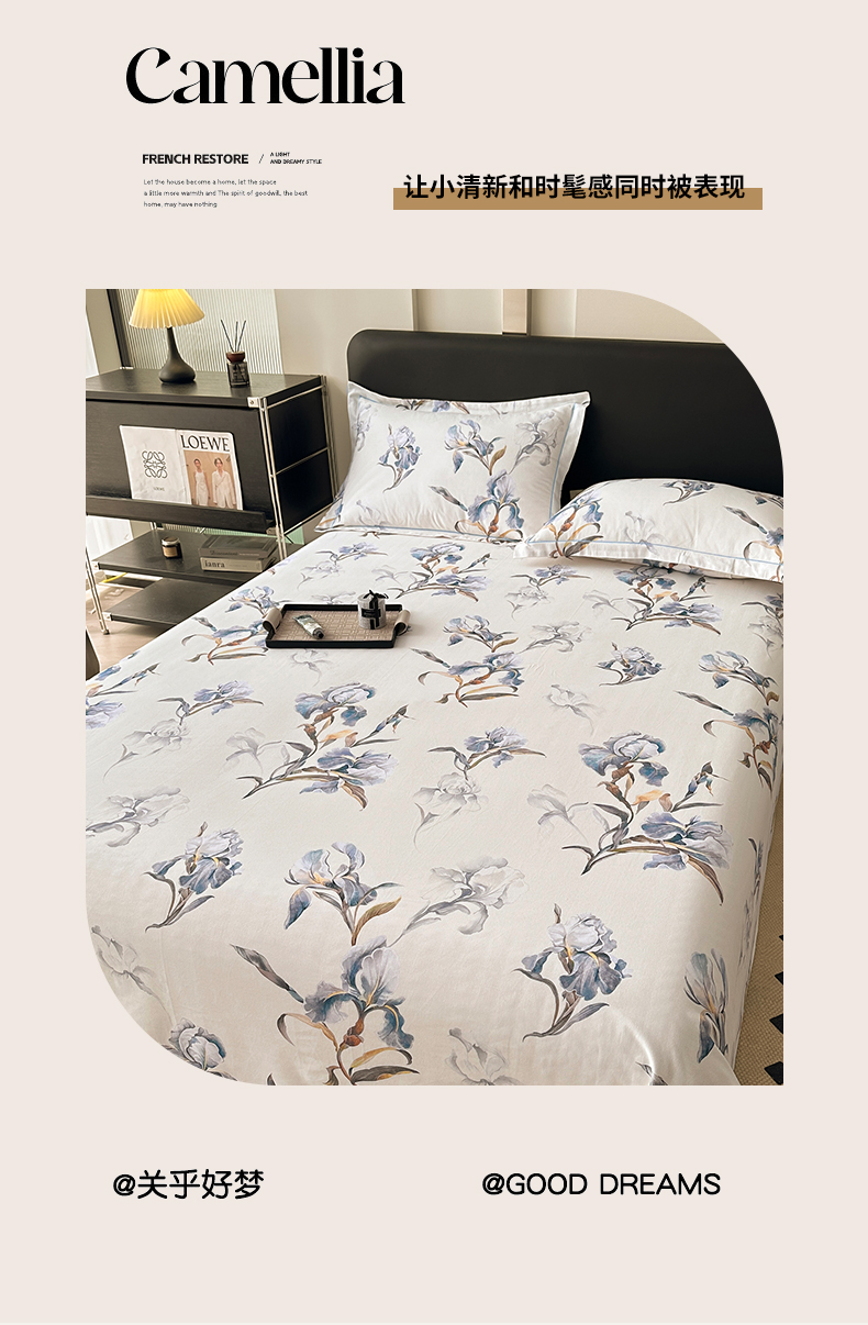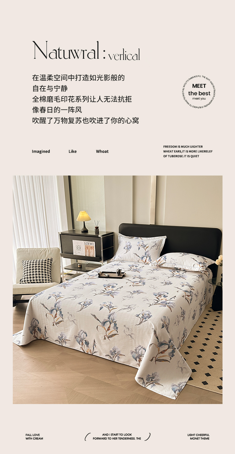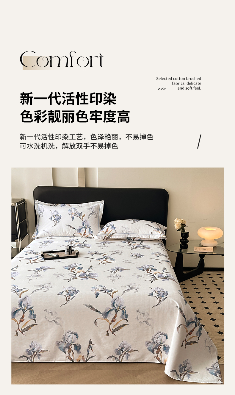 大柏树 2025新款A类全棉磨毛印花单床单 思瑾蓝