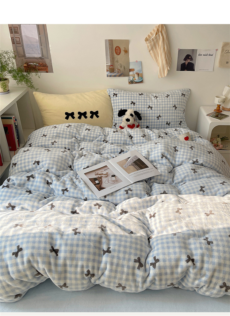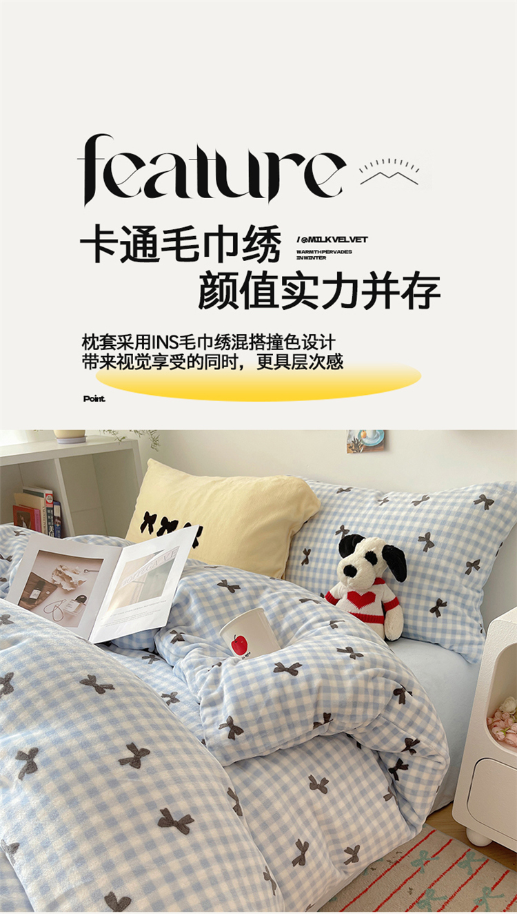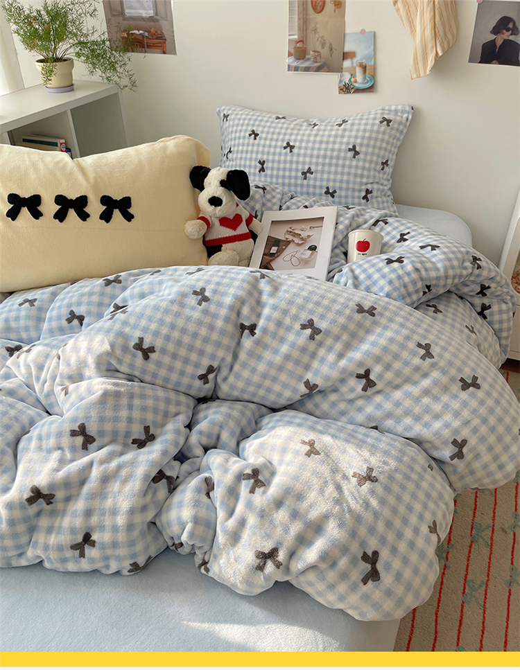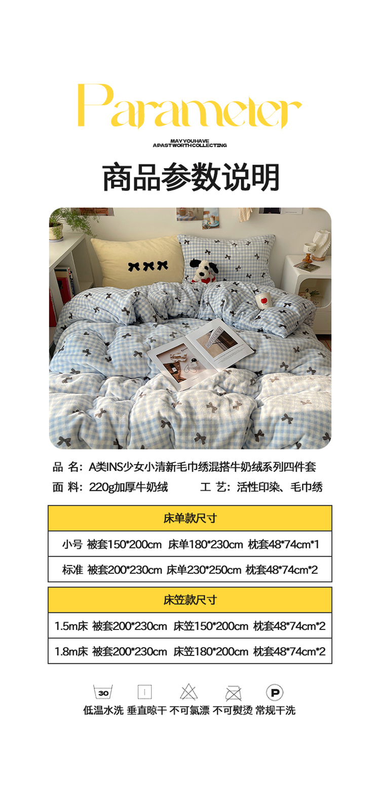 当前位置: 91家纺网 > 商品网购 > 床品套件 > 四件套 > 牛奶绒四件套 > 2024新款A类ins少女小清新蝴蝶爱心蝴蝶结毛巾绣混搭牛奶绒系列四件套 绒毛巾绣-格子蝴蝶结蓝黑黄