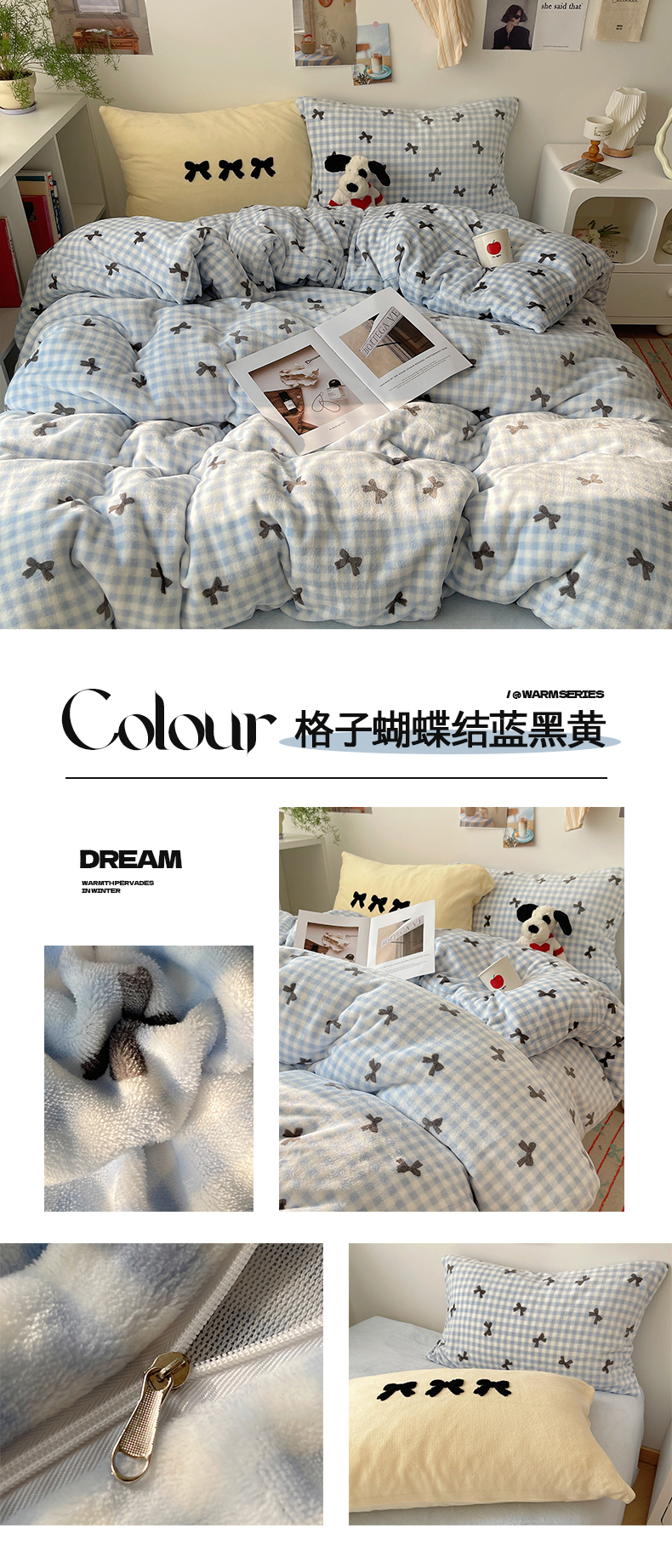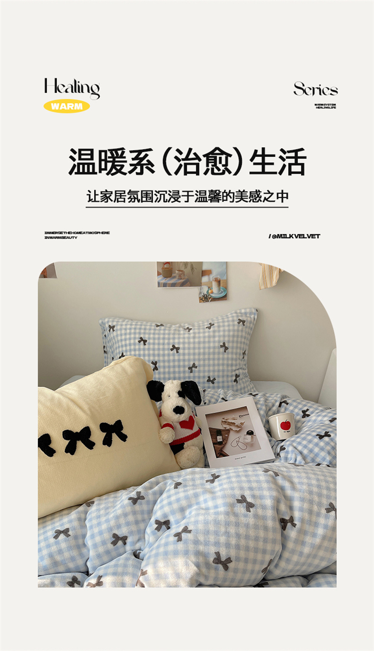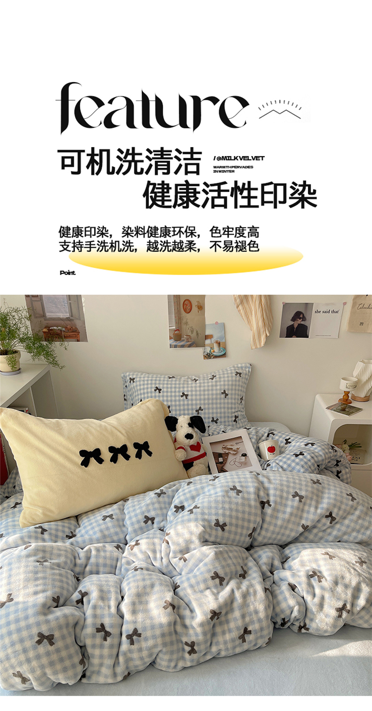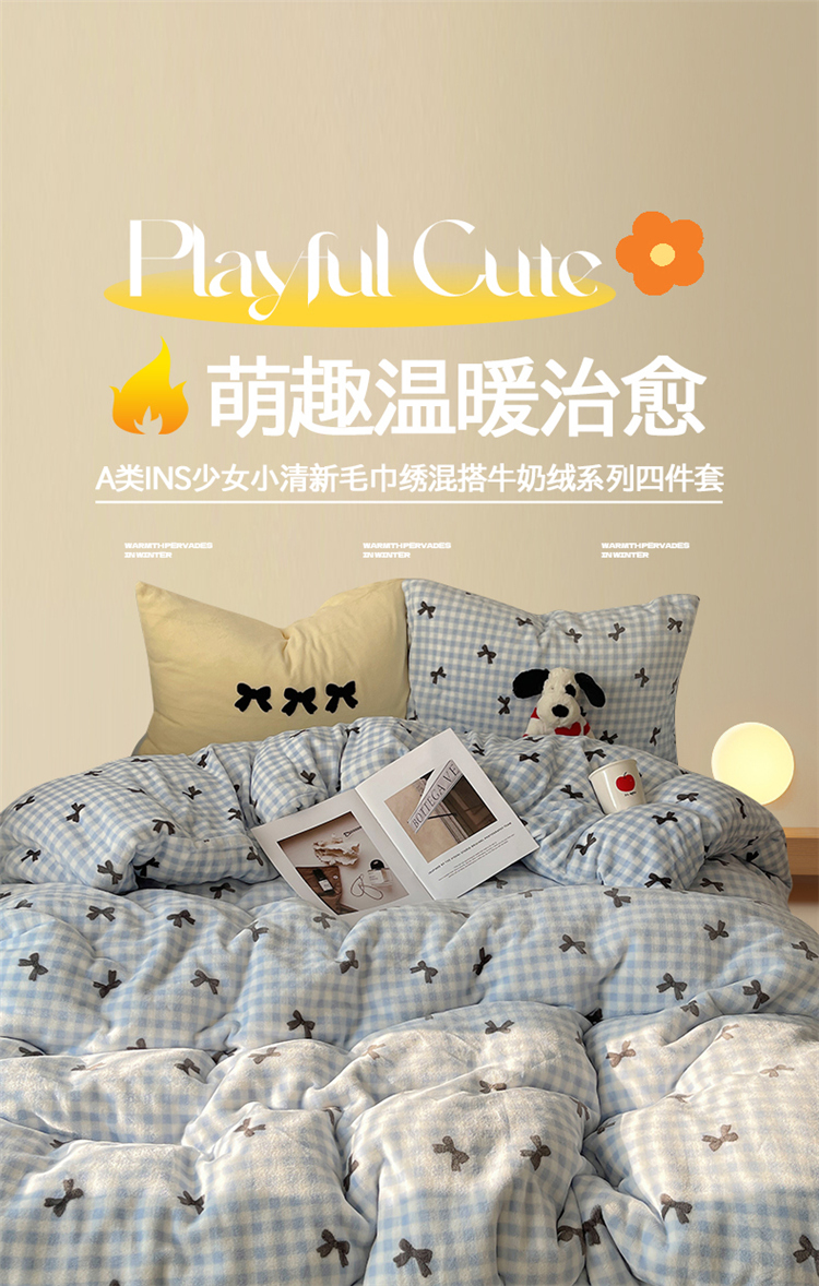 当前位置: 91家纺网 > 商品网购 > 床品套件 > 四件套 > 牛奶绒四件套 > 2024新款A类ins少女小清新蝴蝶爱心蝴蝶结毛巾绣混搭牛奶绒系列四件套 绒毛巾绣-格子蝴蝶结蓝黑黄