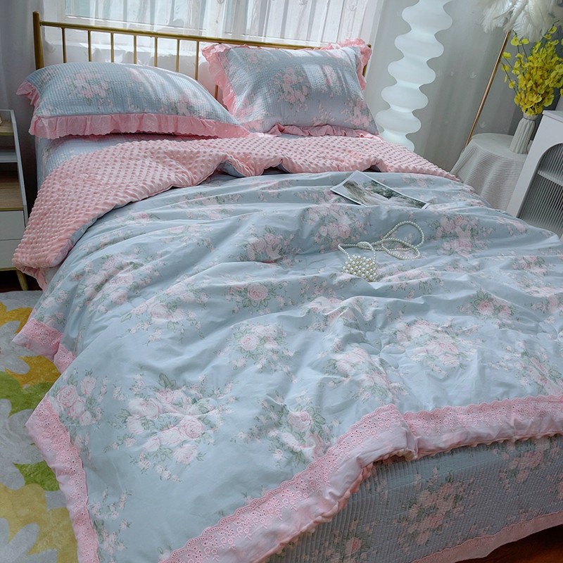 (总)暖居 2026新款大尺寸双层纱高温砂洗245X265床盖三件套,车厘子,粉绿格,洛璃,米妮,旺旺队,小丸子,樱桃可可,饼干熊,木马,小星星