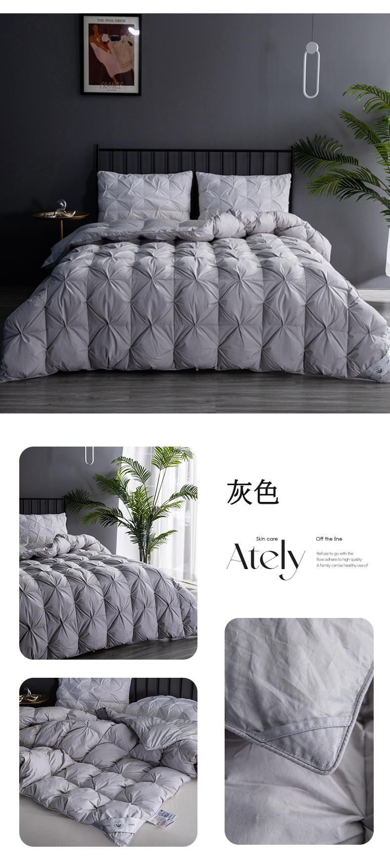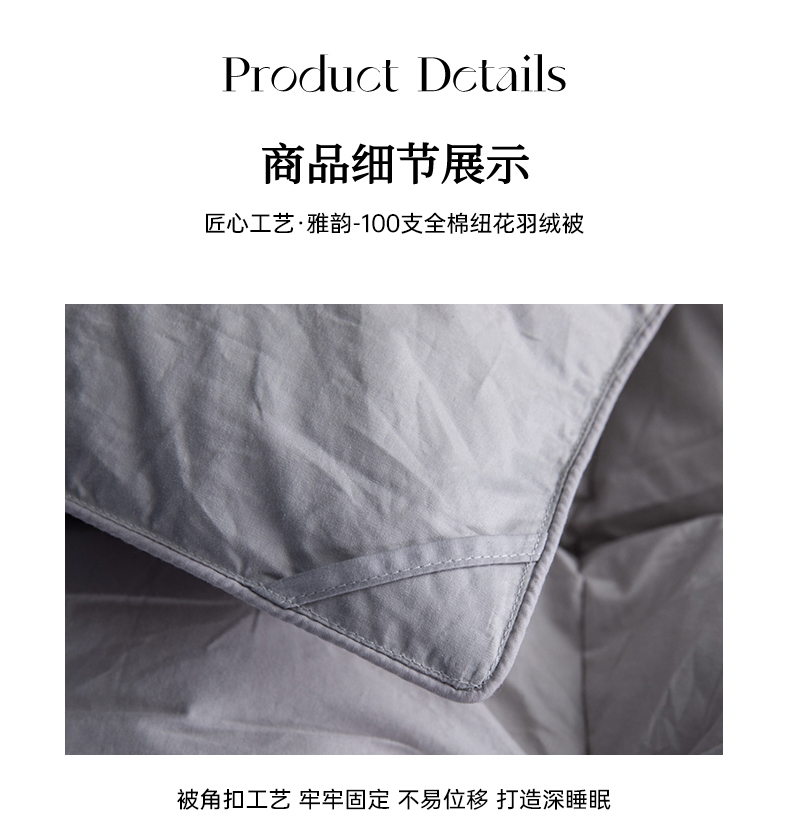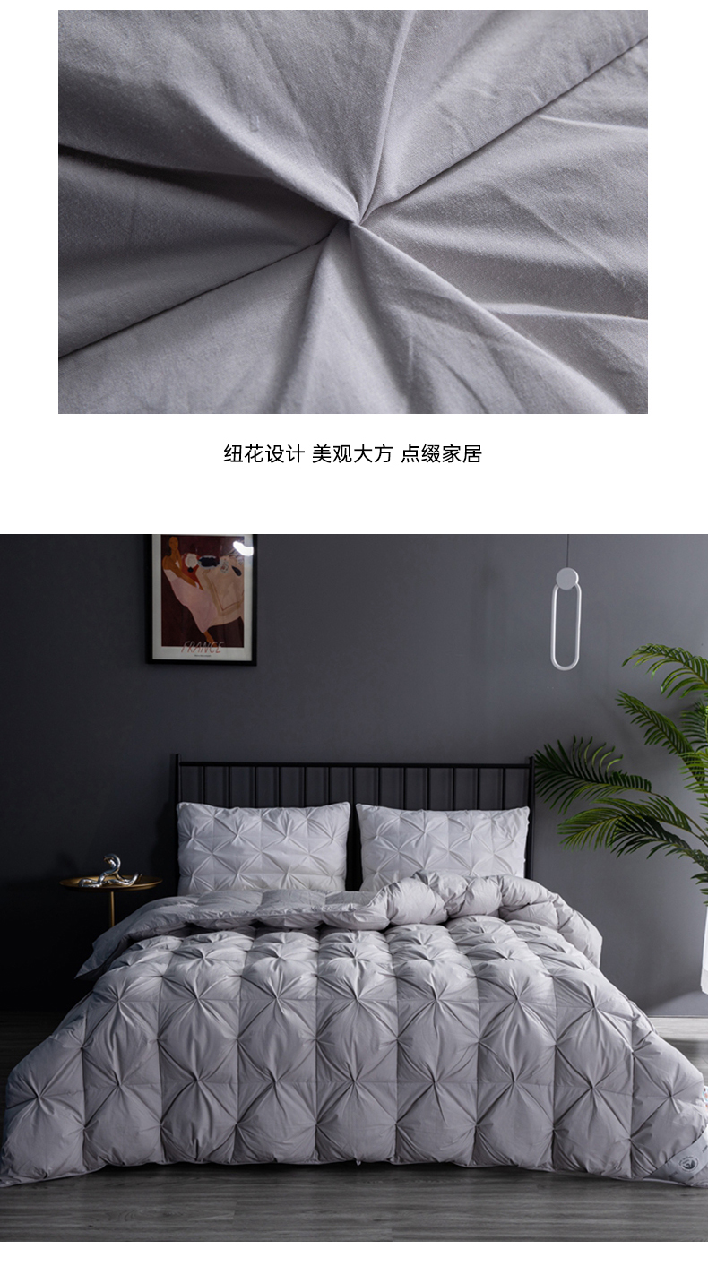 • 91家纺网 家纺一手货源 找家纺 兰言诺羽绒被 2025新款雅韵-全棉柔赛丝纽花羽绒被 灰色