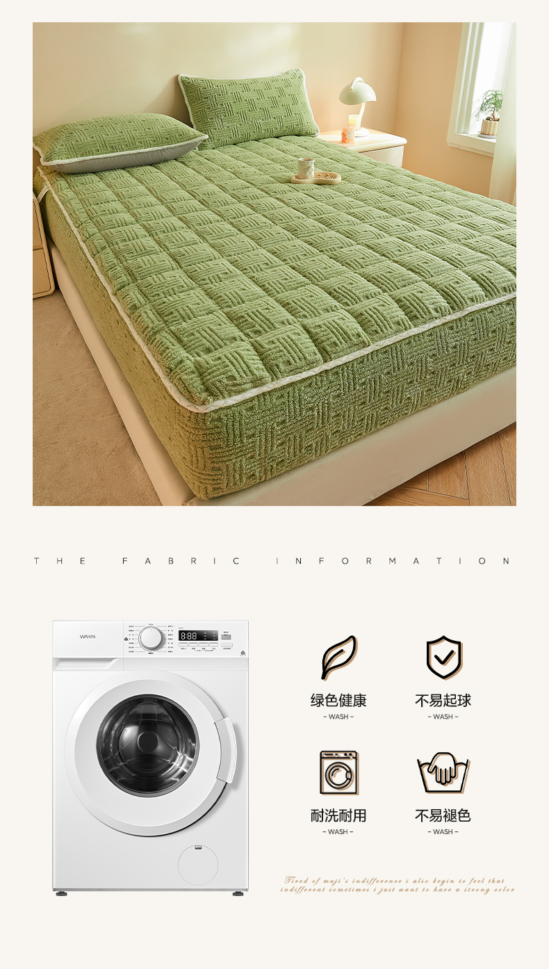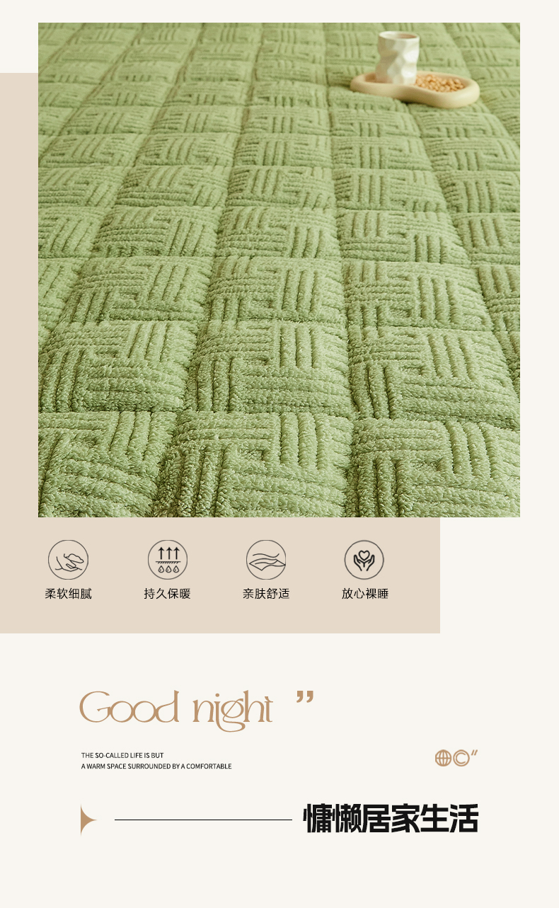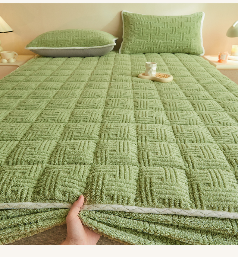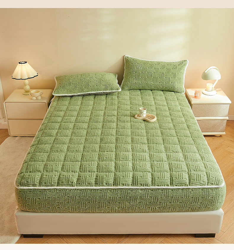 商品名称:卡伦家纺 2025新款塔芙绒方格纹加厚保暖夹棉床笠 格纹草绿