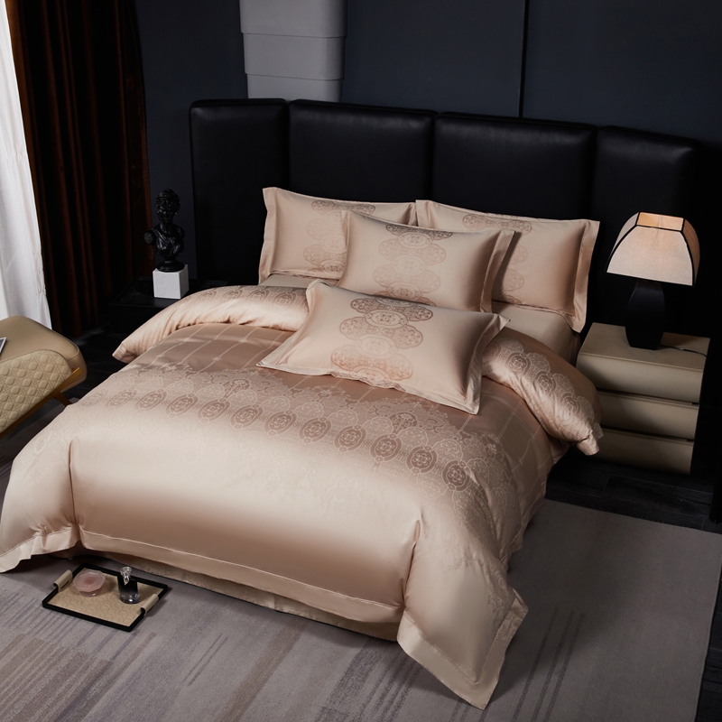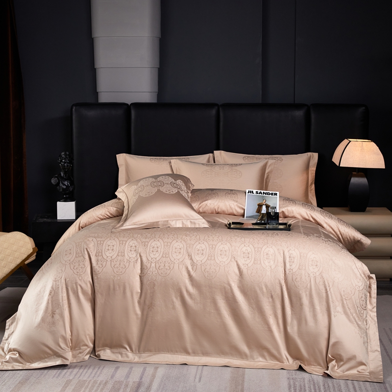商品名称:淳绵家居 2024新款50*50S双股长绒棉大版定位提花四件套 波西雅-奶咖色