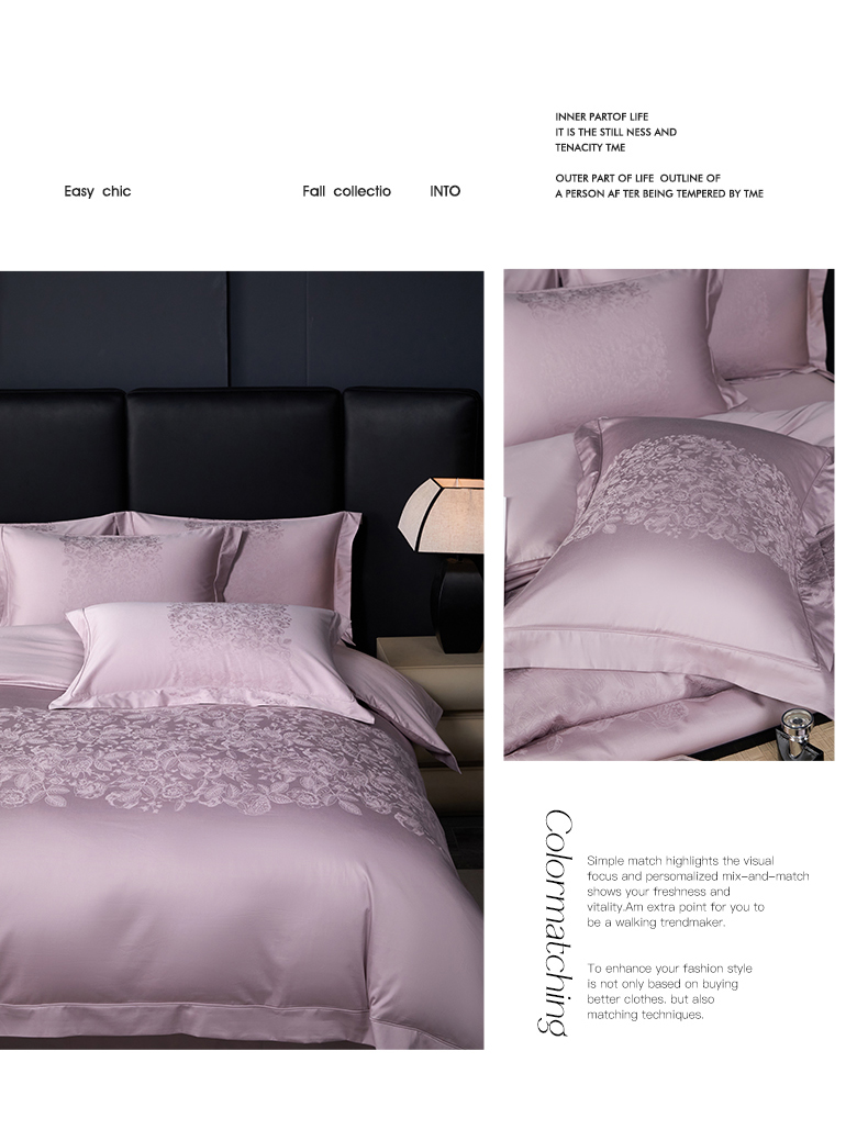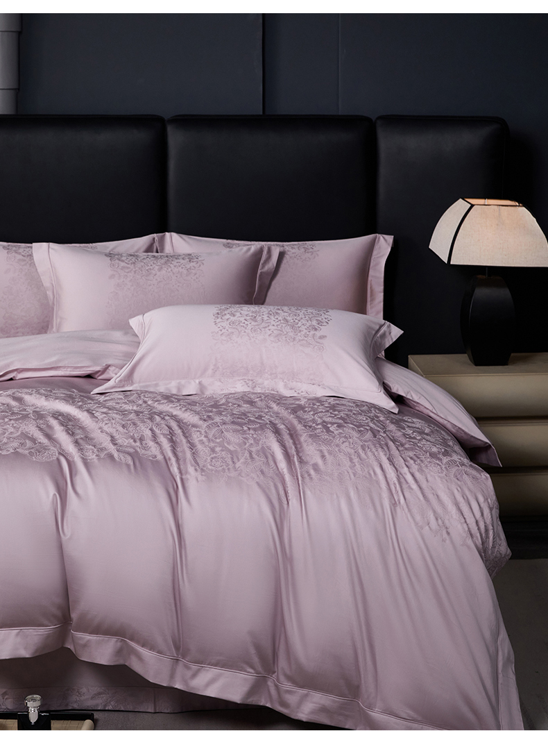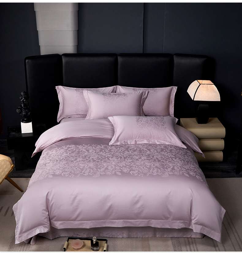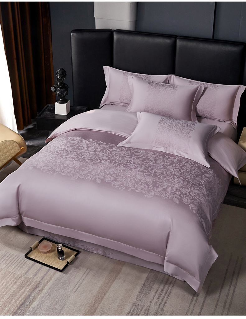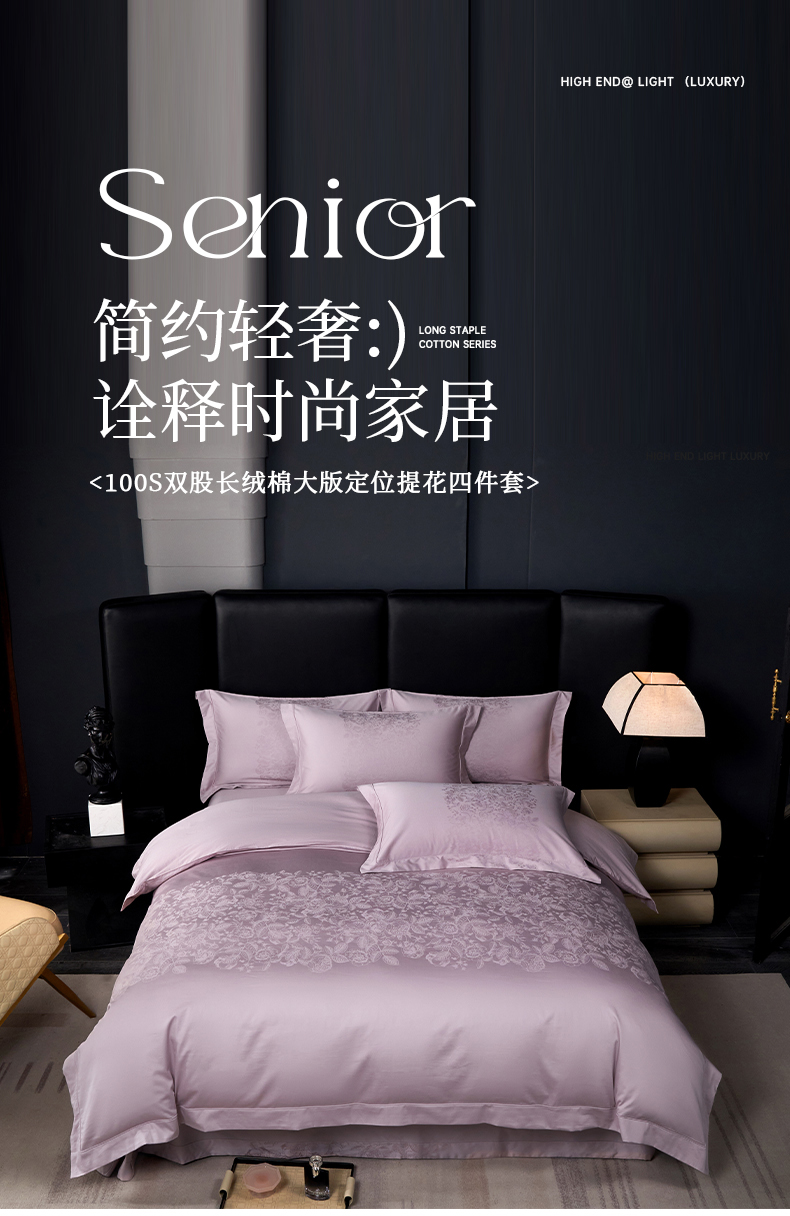 淳绵家居 2024新款50*50S双股长绒棉大版定位提花四件套 兰黛尔-优雅紫
