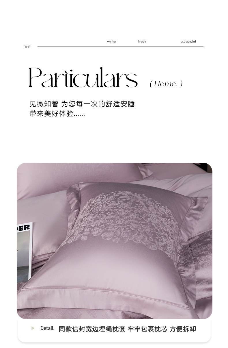 商品名称:淳绵家居 2024新款50*50S双股长绒棉大版定位提花四件套 兰黛尔-优雅紫