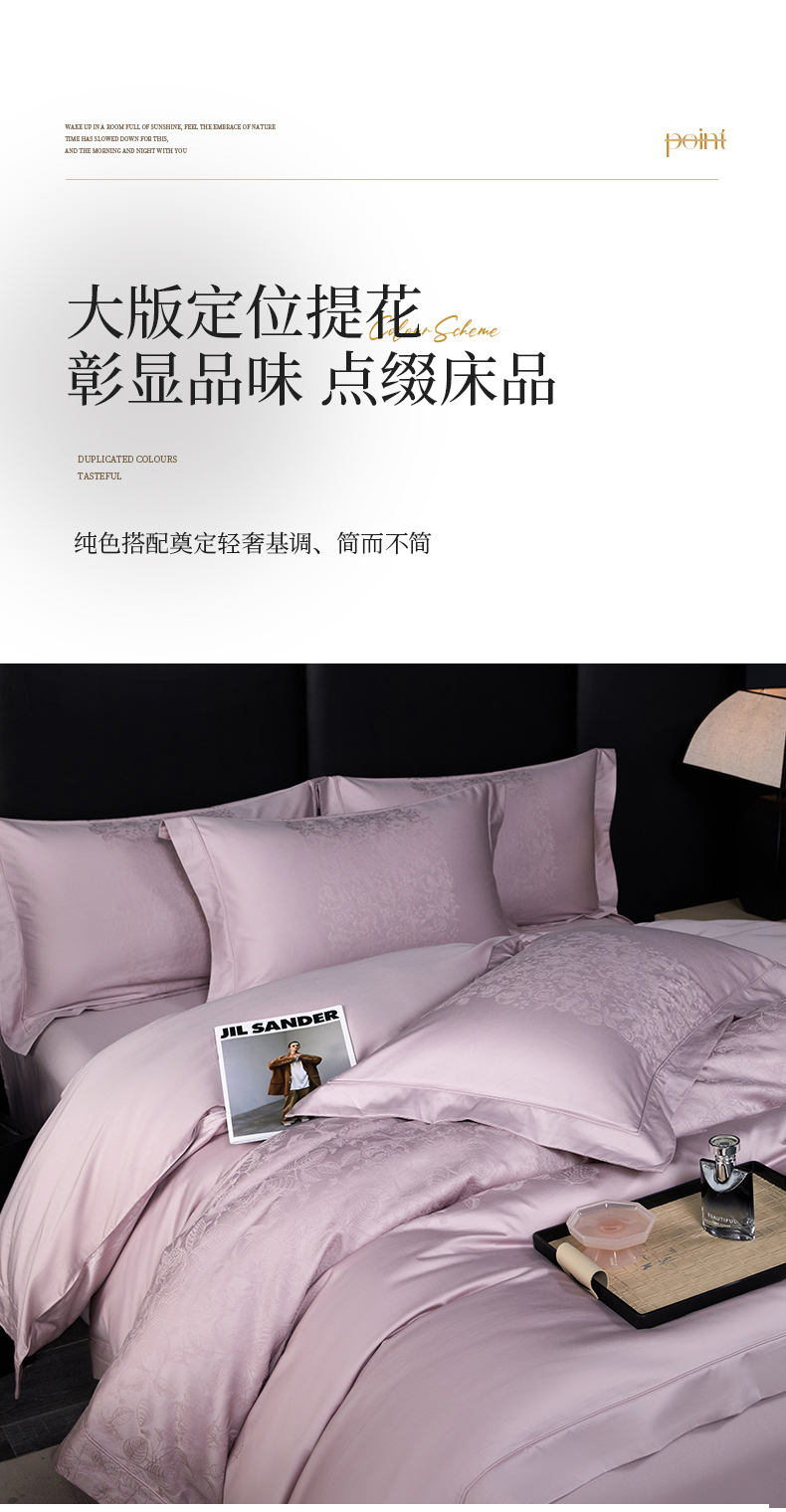 (总)淳绵家居 2025新款50*50S长绒棉提花A类纯棉四件套-欧若拉,欧若拉-粉玉,欧若拉-高级灰