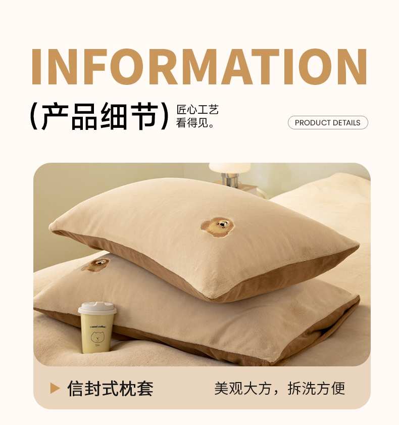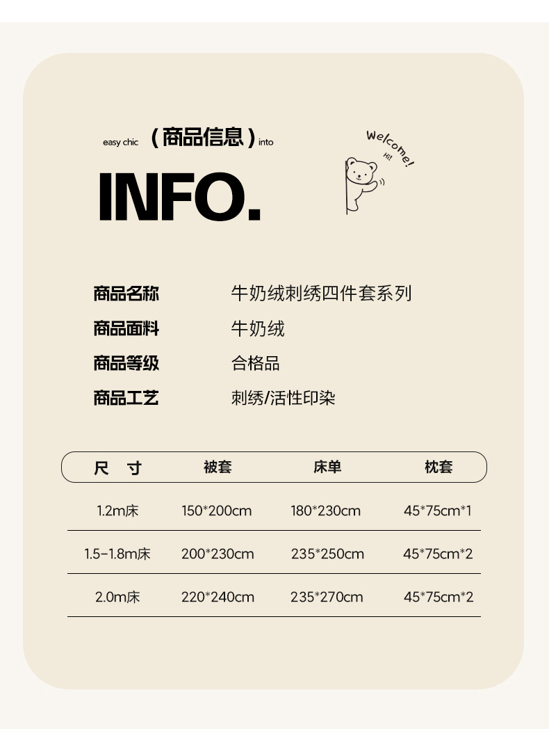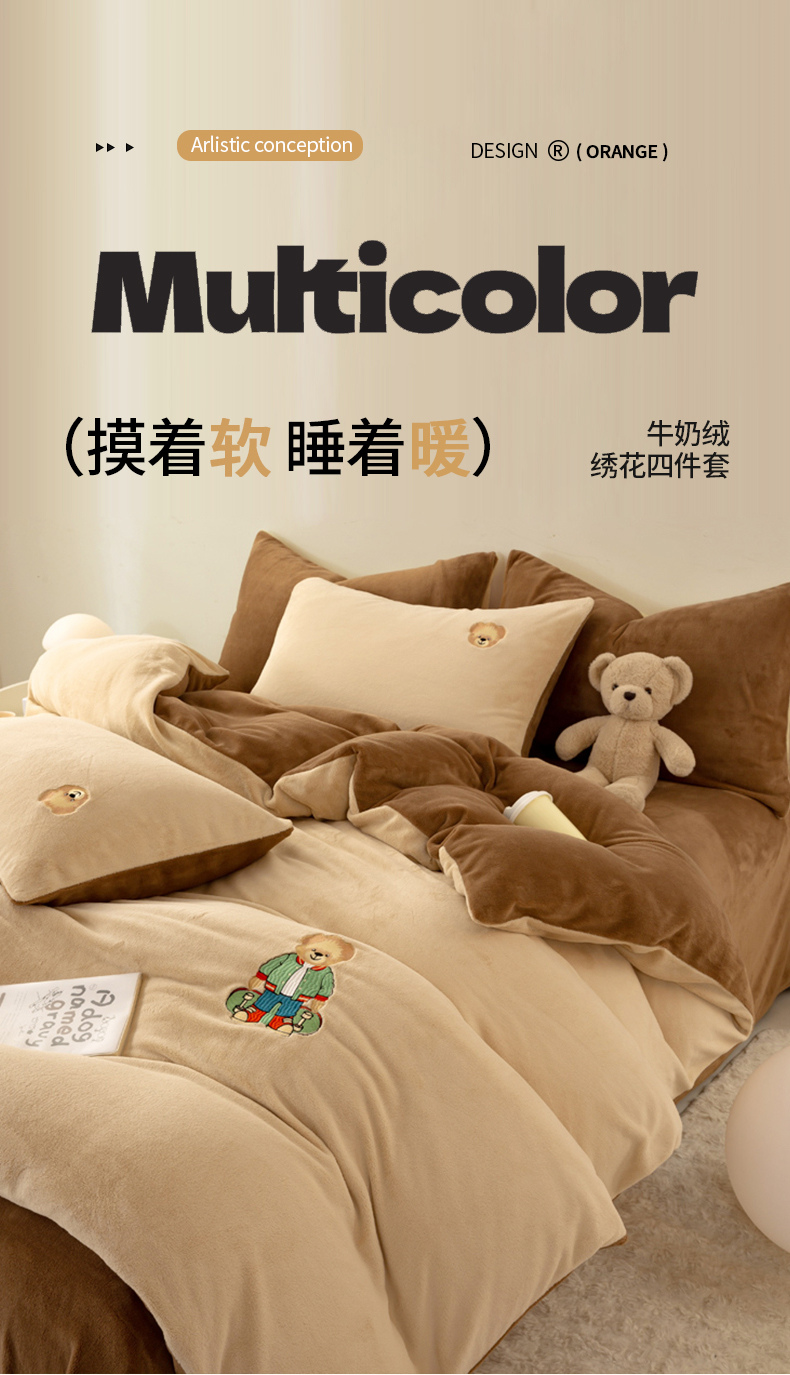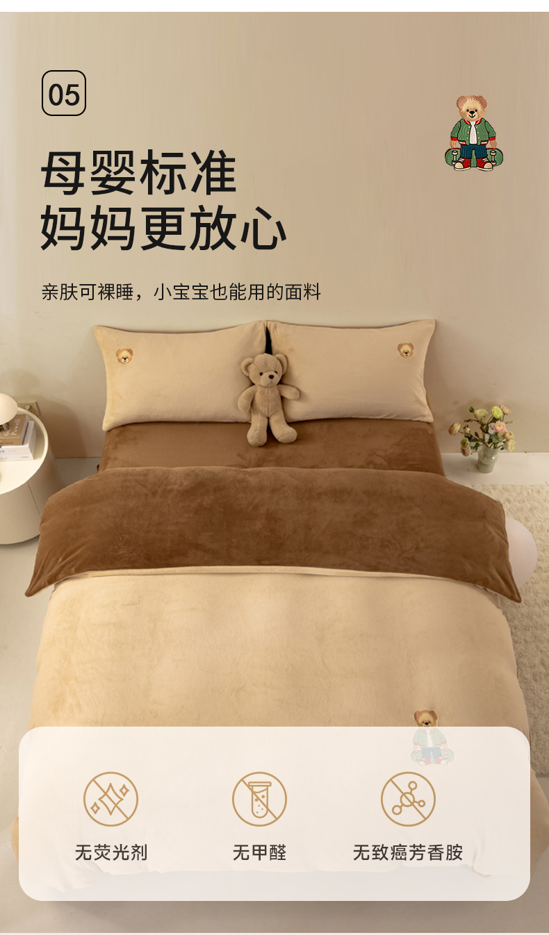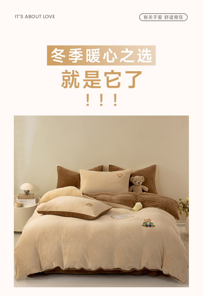 当前位置: 91家纺网 > 商品网购 > 床品套件 > 四件套 > 牛奶绒四件套 > 沐晴家纺 2024新品秋冬加厚牛奶绒纯色简约绣花卡通四件套 滑板熊(米黄+深咖)