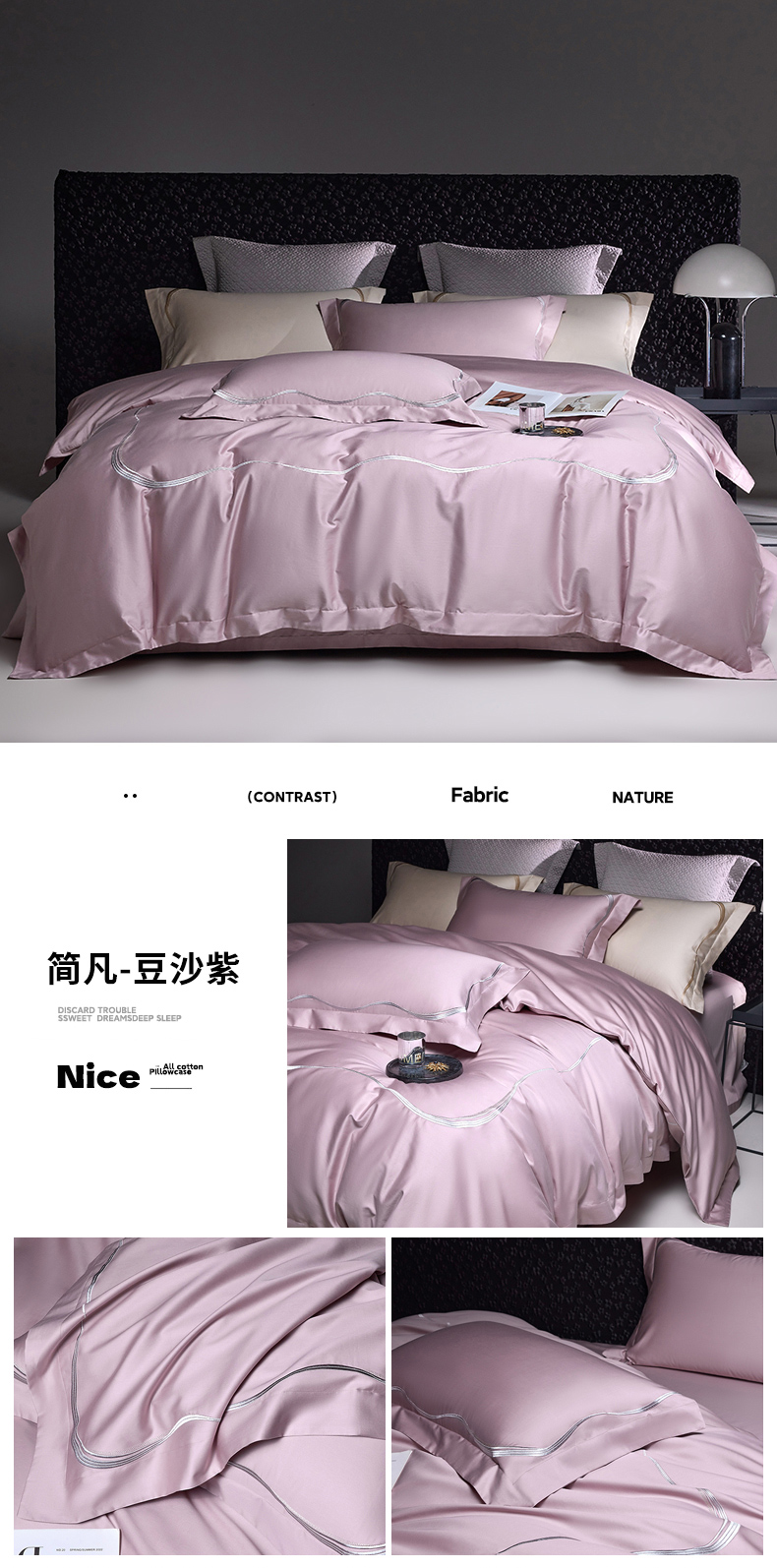 淼铭家纺 2025新款秋冬长绒棉刺绣款四件套-简凡 简凡-豆沙紫