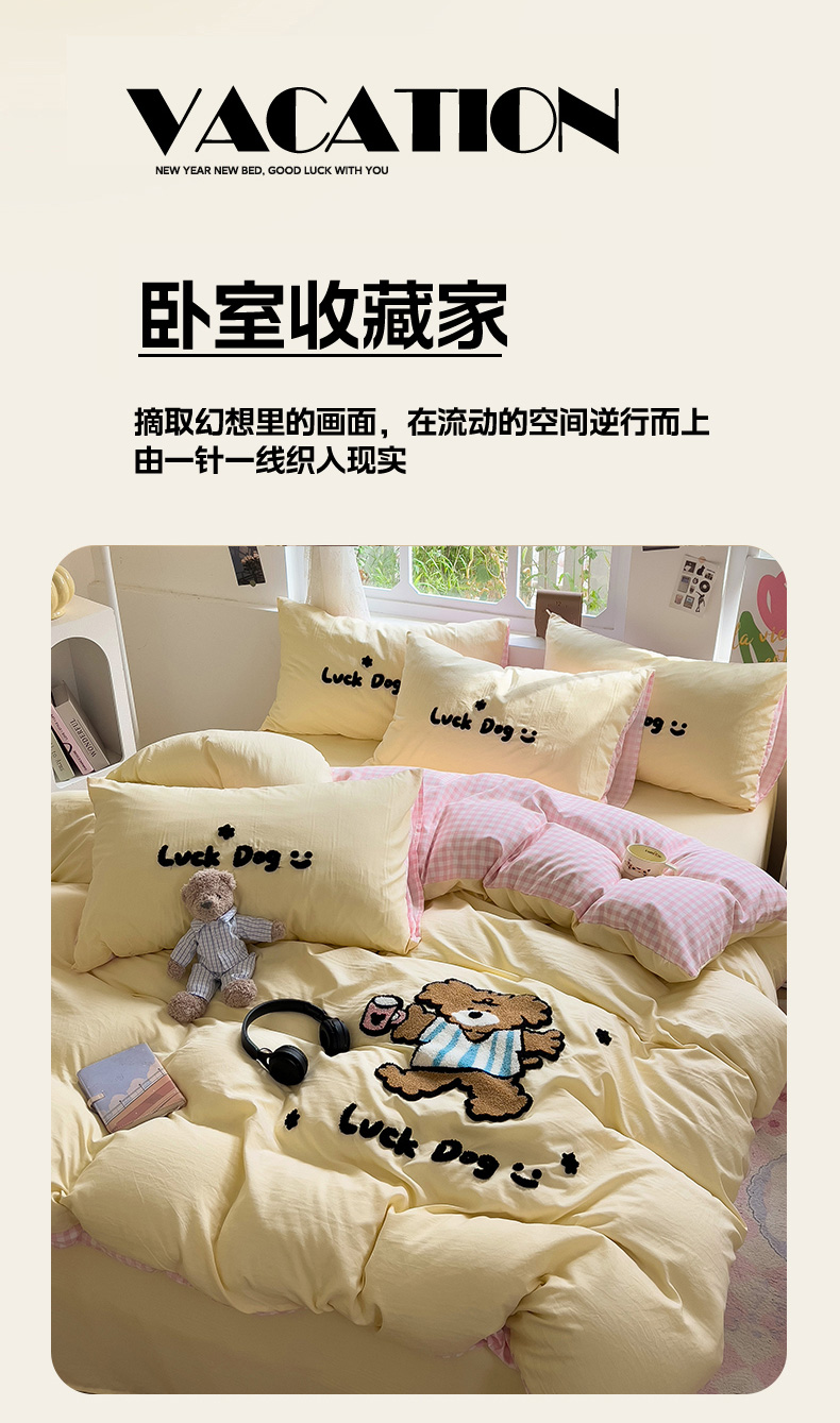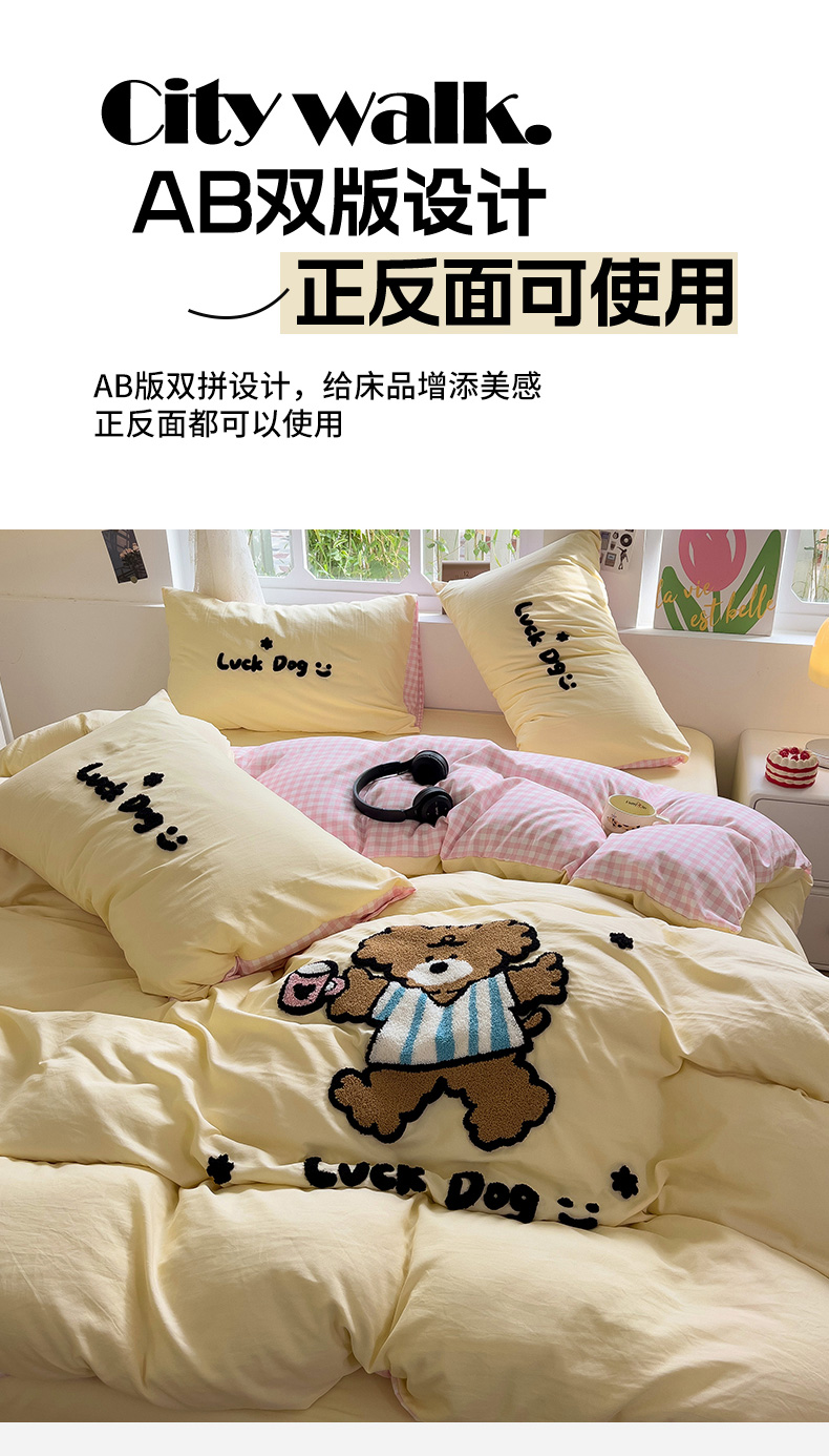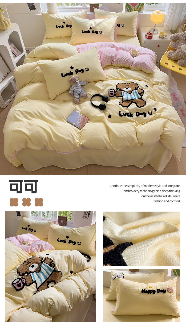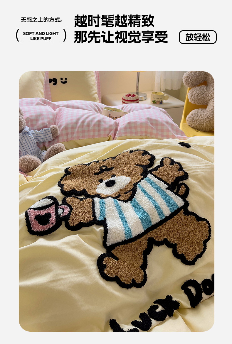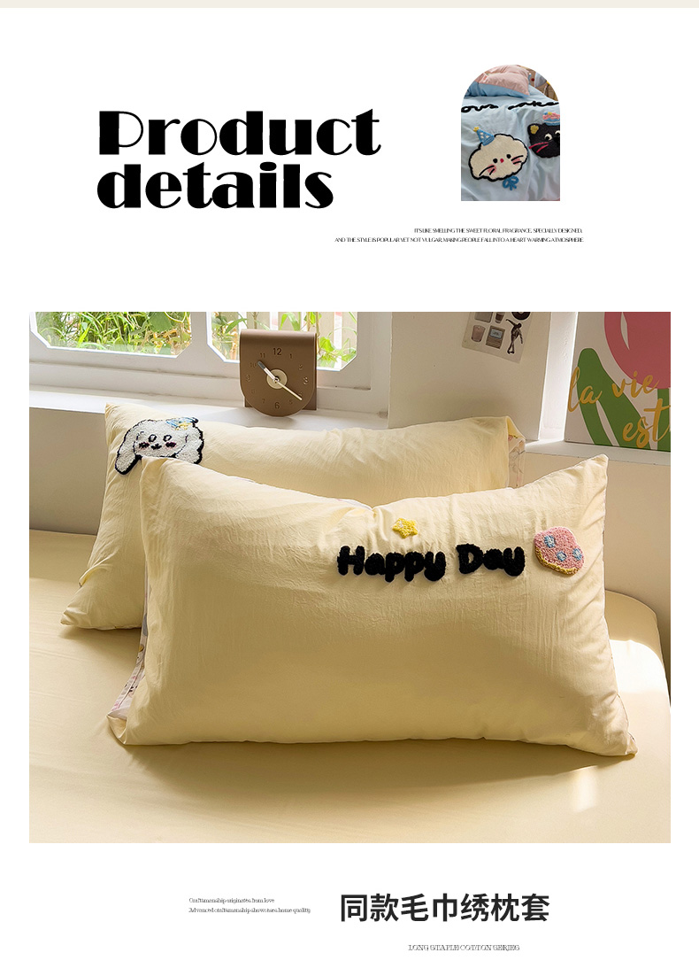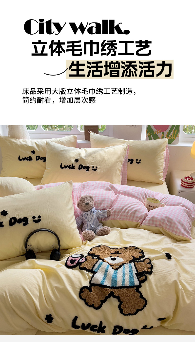 当前位置: 91家纺网 > 商品网购 > 床品套件 > 四件套 > 水洗棉四件套 > 眠帛家居 2024新款加厚磨毛水洗棉毛巾绣加印大版卡通四件套 可可