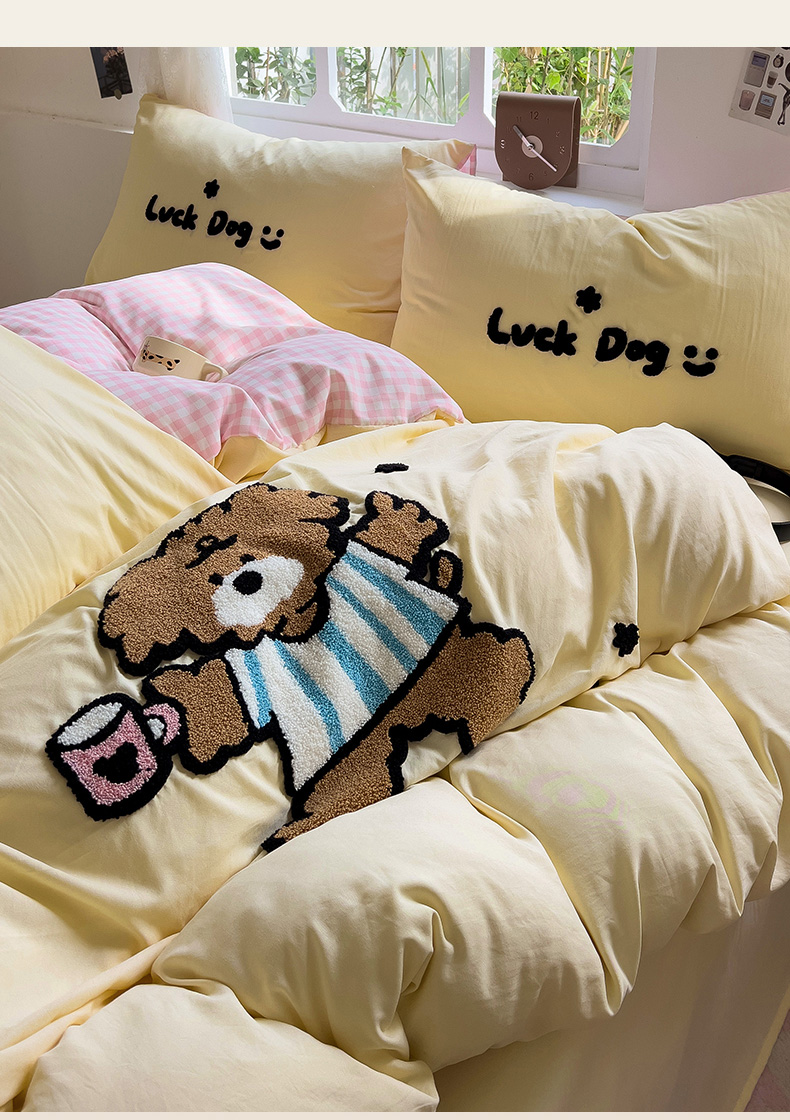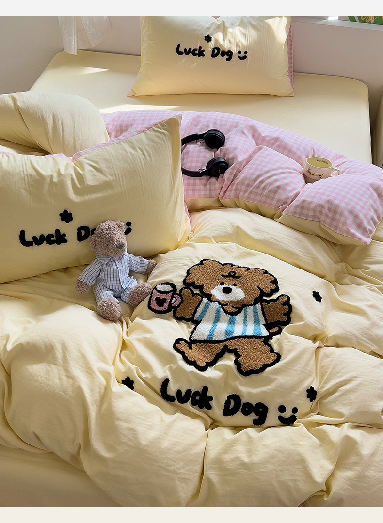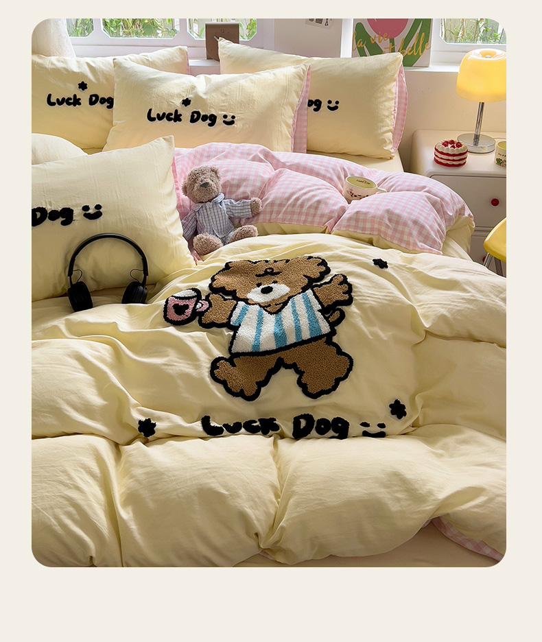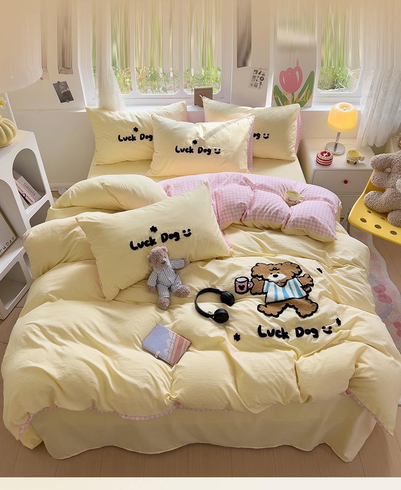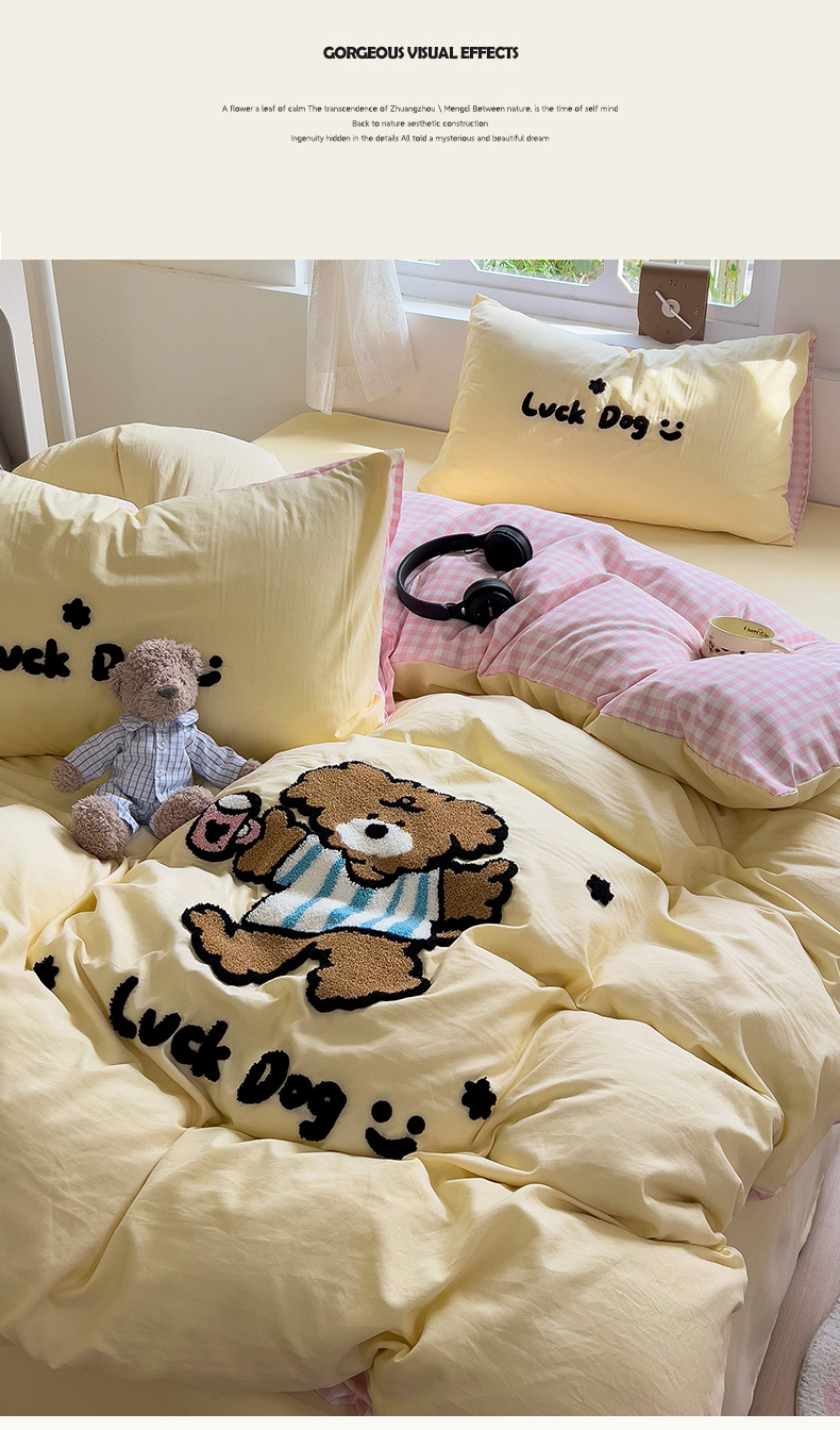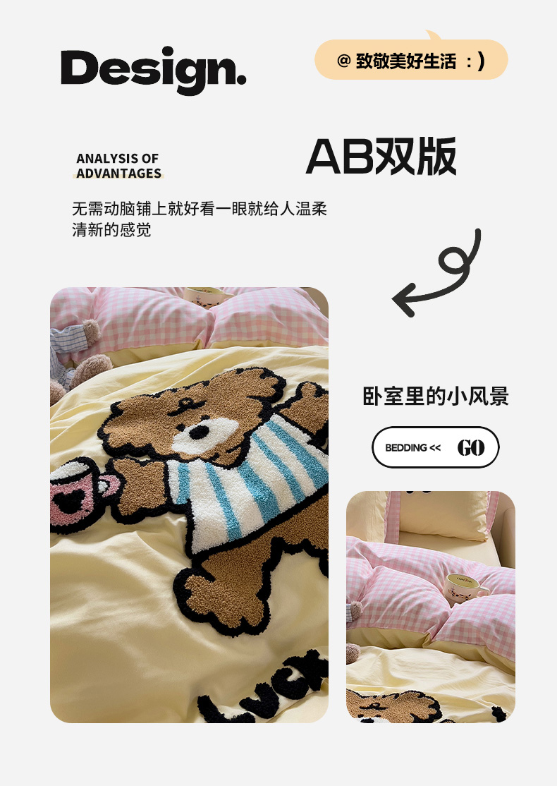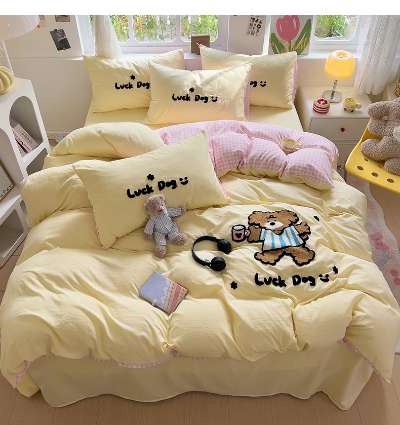当前位置: 91家纺网 > 商品网购 > 床品套件 > 四件套 > 水洗棉四件套 > 眠帛家居 2024新款加厚磨毛水洗棉毛巾绣加印大版卡通四件套 可可
