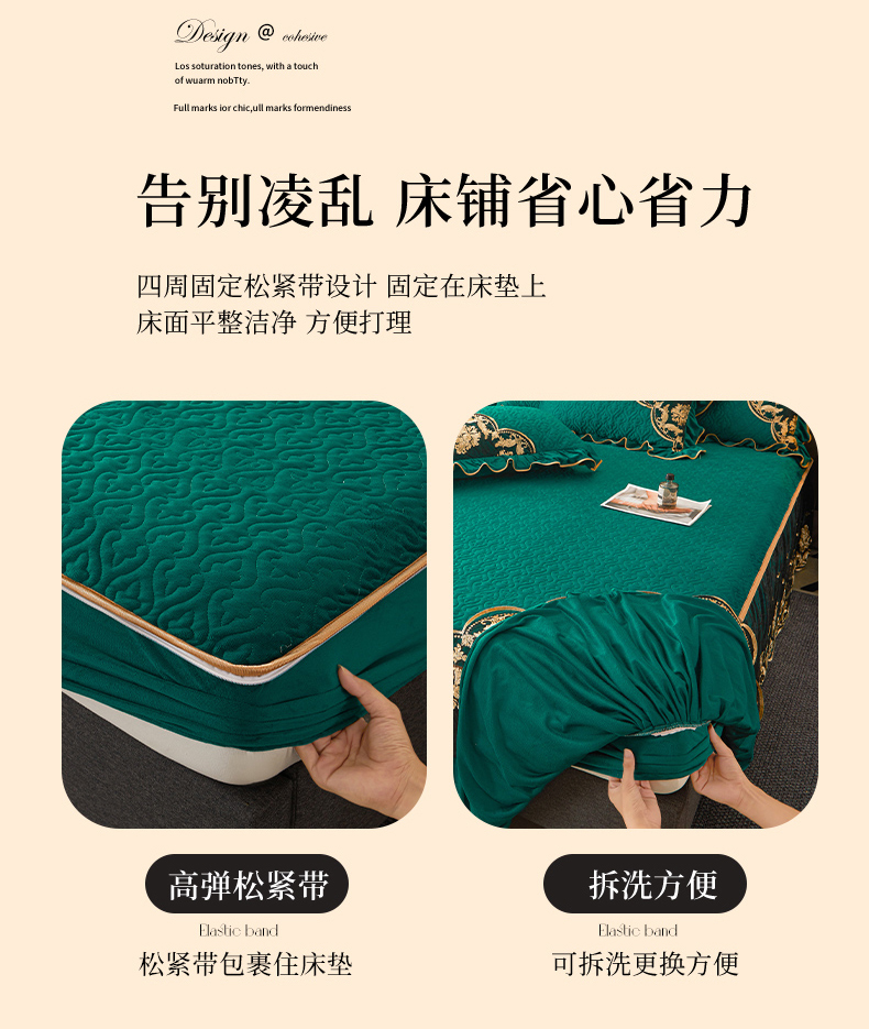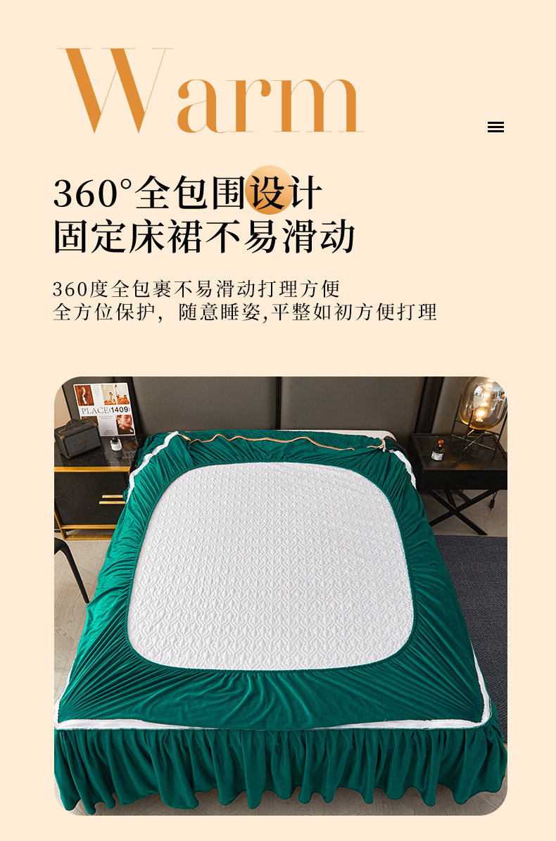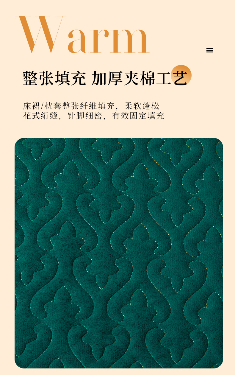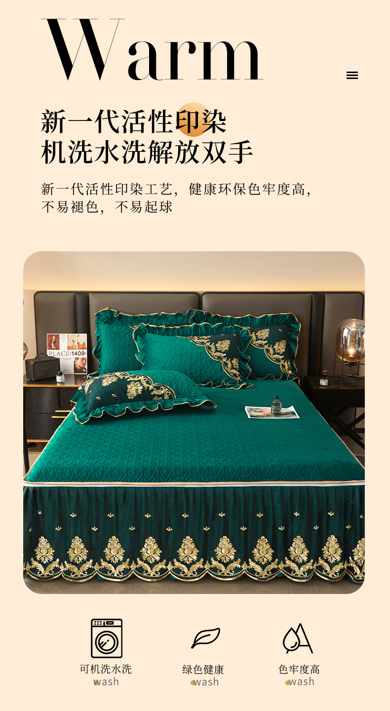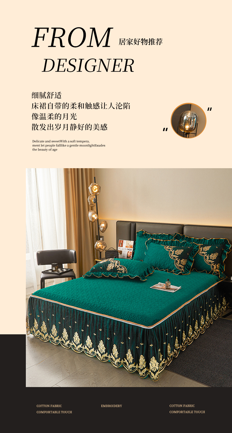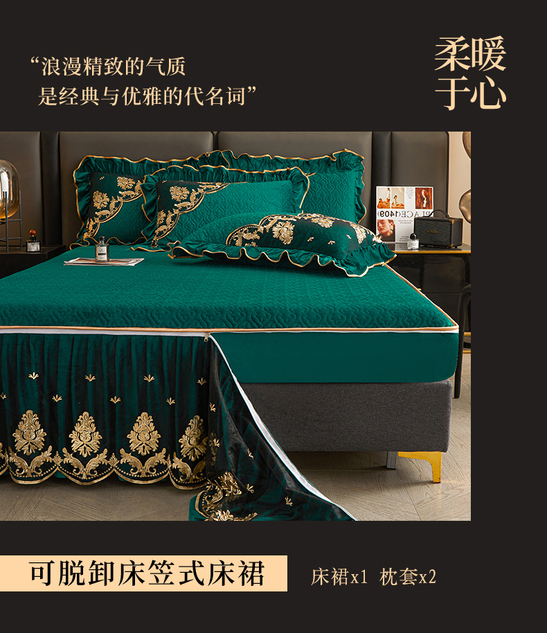 • 91家纺网 家纺一手货源 找家纺 罗艺轩 2024新款高克重水晶绒夹棉床裙三件套-欧典风尚 欧典风尚-黛绿色