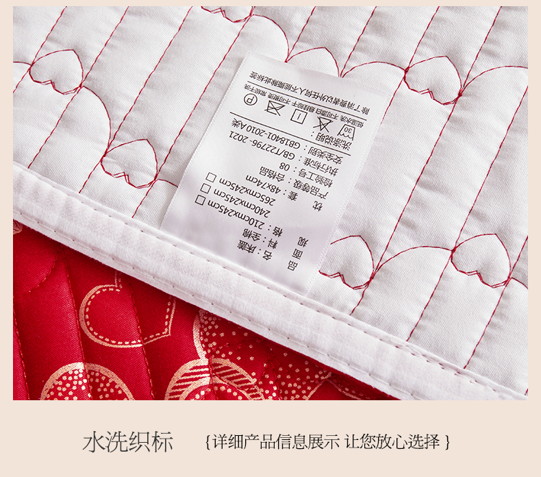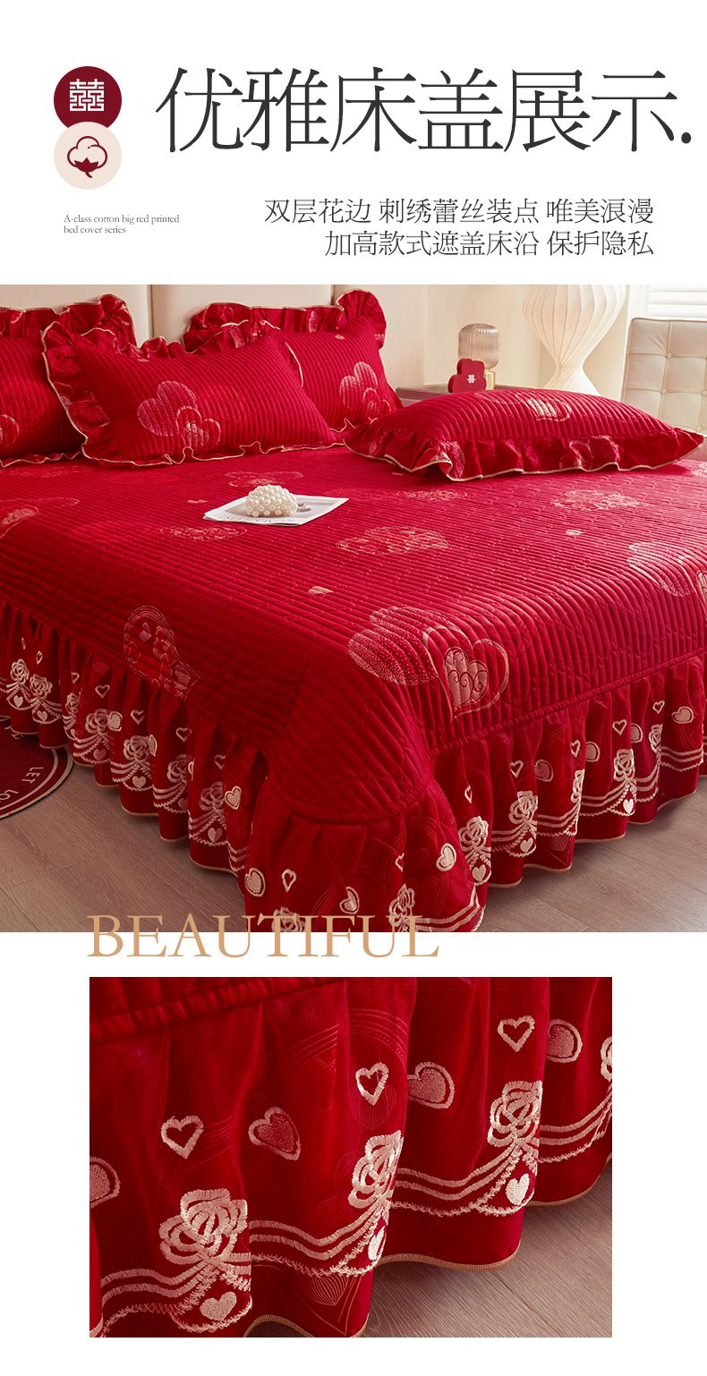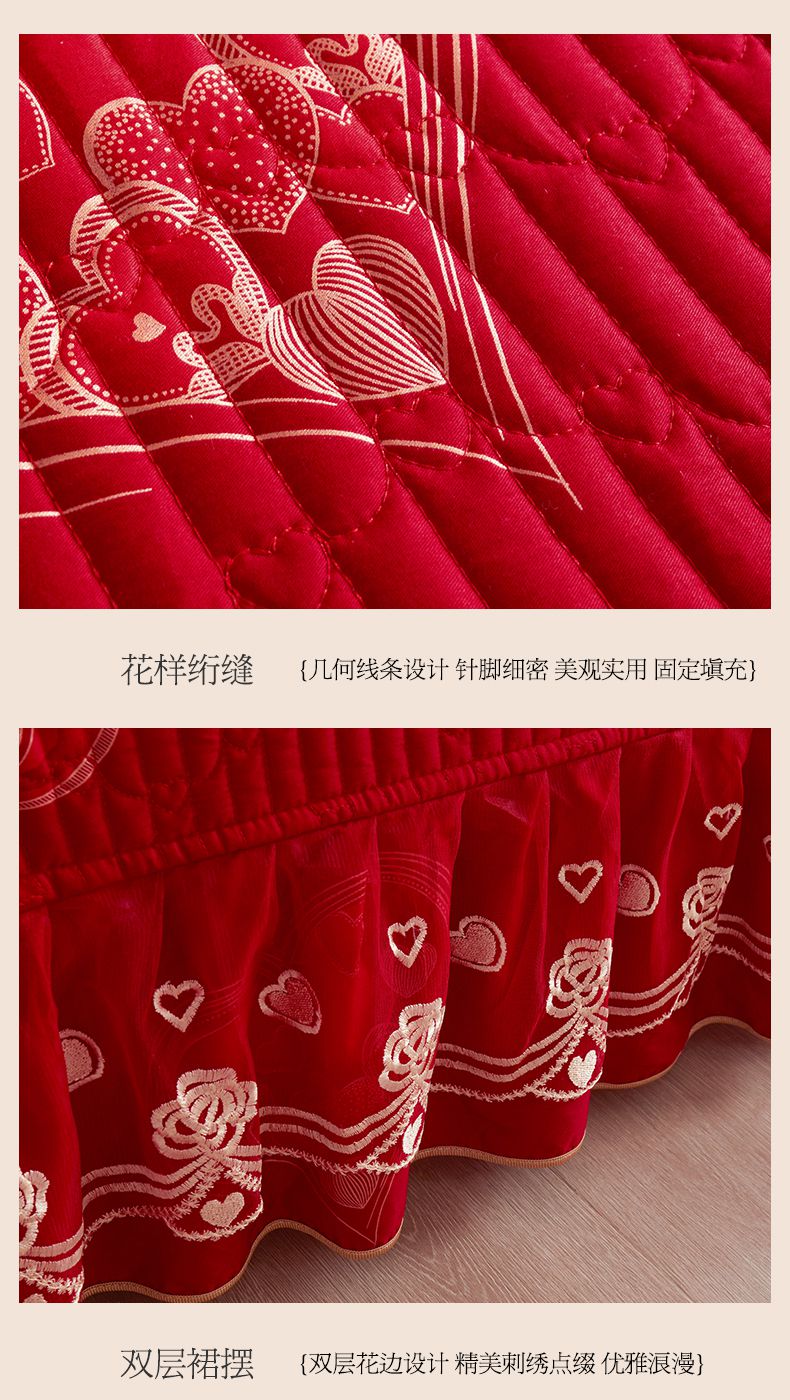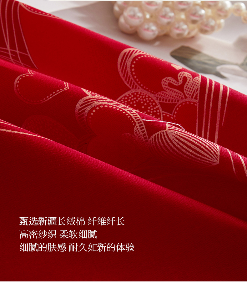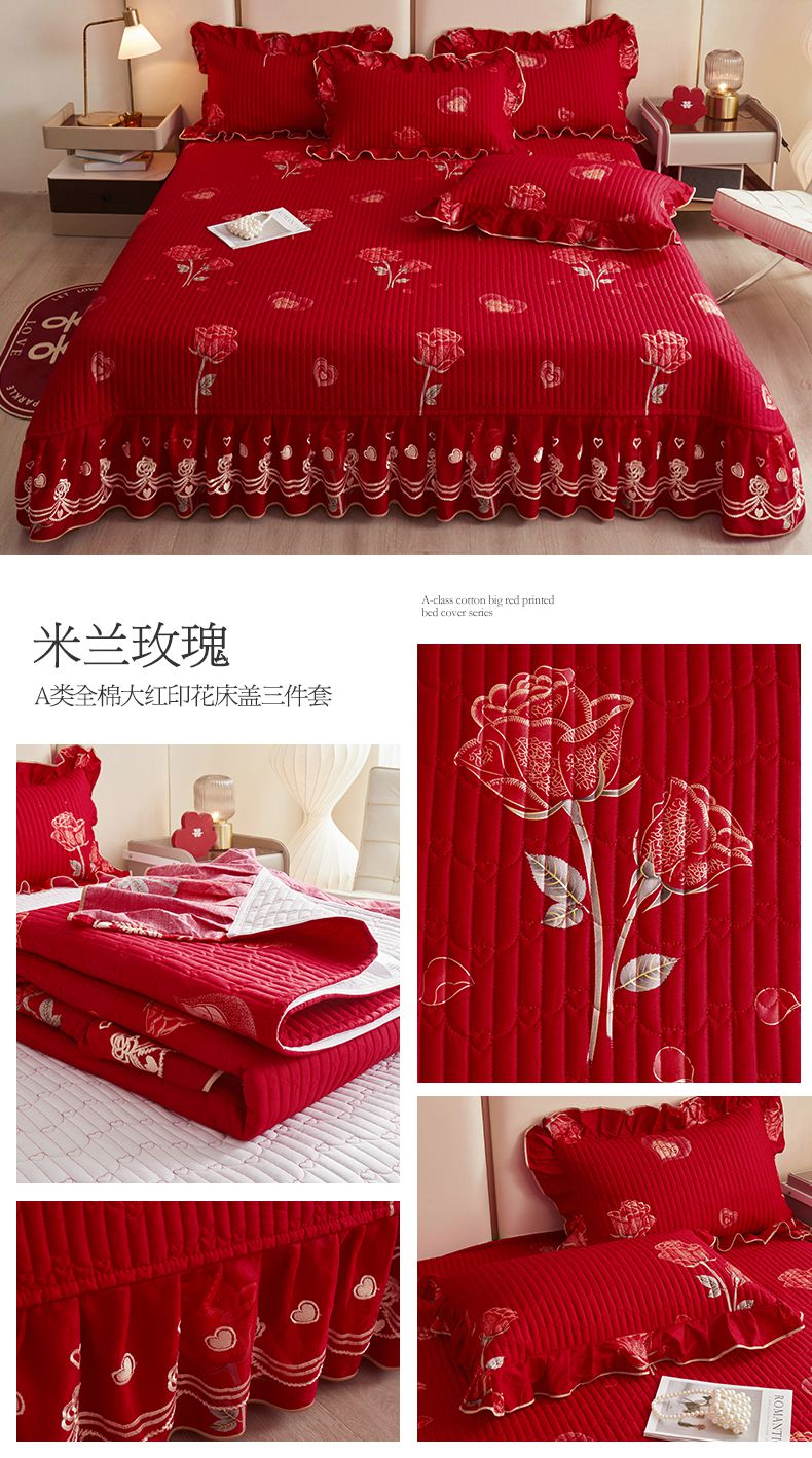 当前位置: 91家纺网 > 商品网购 > 床品套件 > 四件套 > 婚庆四件套 > 宜凡家纺 2024新款A类全棉大红印花床盖三件套 心悦你
