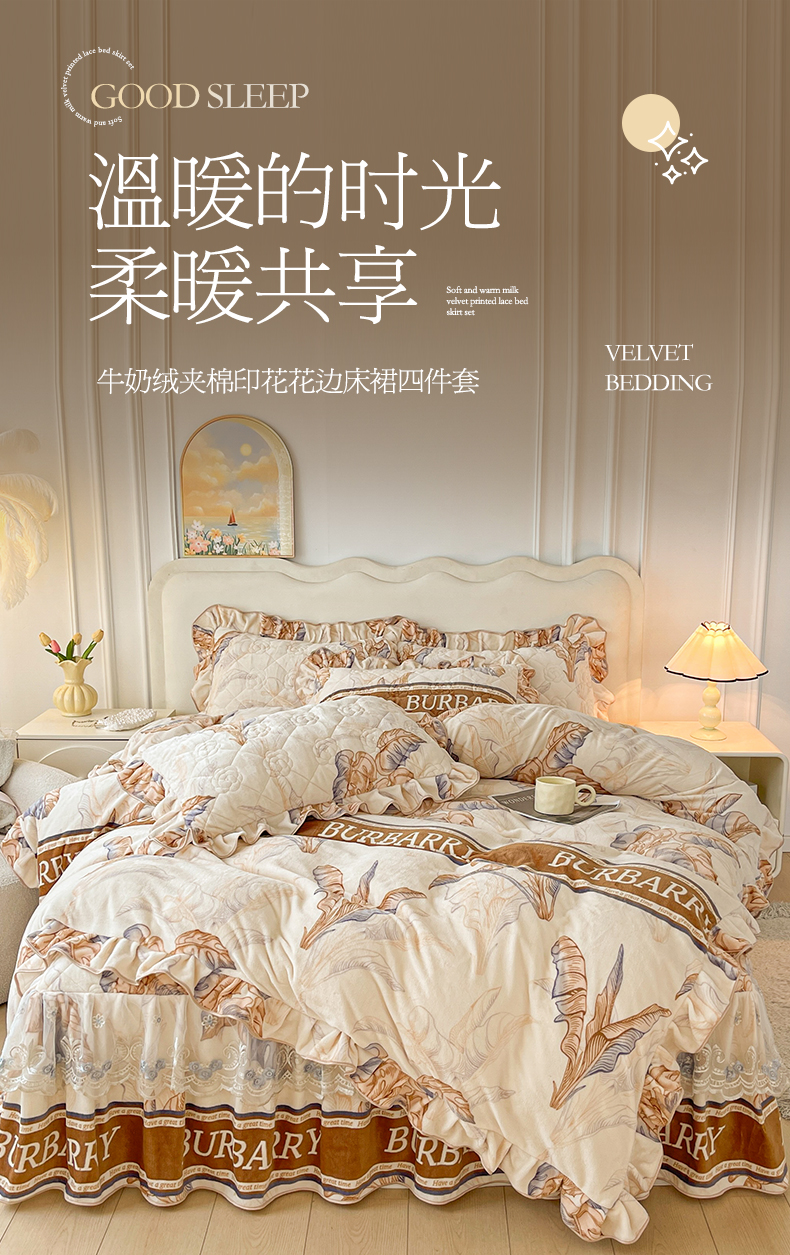(总)宜凡家纺 2025新款兔绒提花牛奶绒夹棉床裙四件套,爱心 少女粉,爱心 粉紫,爱心 驼色,蝶舞 大红,蝶舞 米色,蝶舞 浅紫,蝶舞 玉色,简爱 苍青,简爱 豆沙紫,简爱 玉色,樱桃 苍青,樱桃 豆沙紫,樱桃 奶油白
