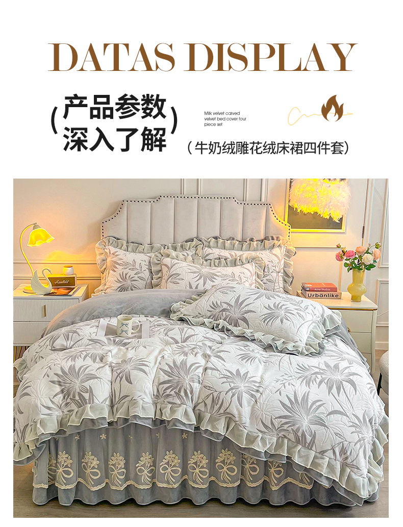宜凡家纺 2024新款牛奶绒雕花绒床裙四件套 温莎梦