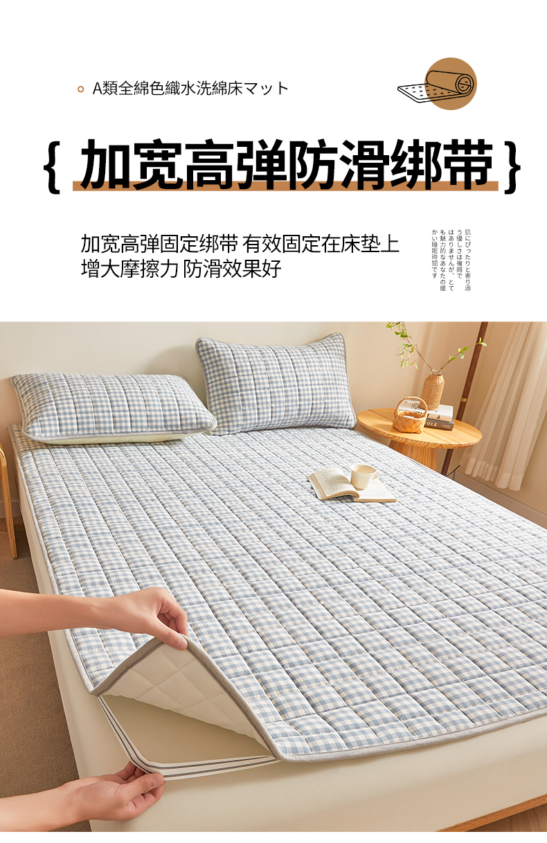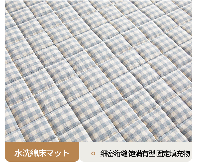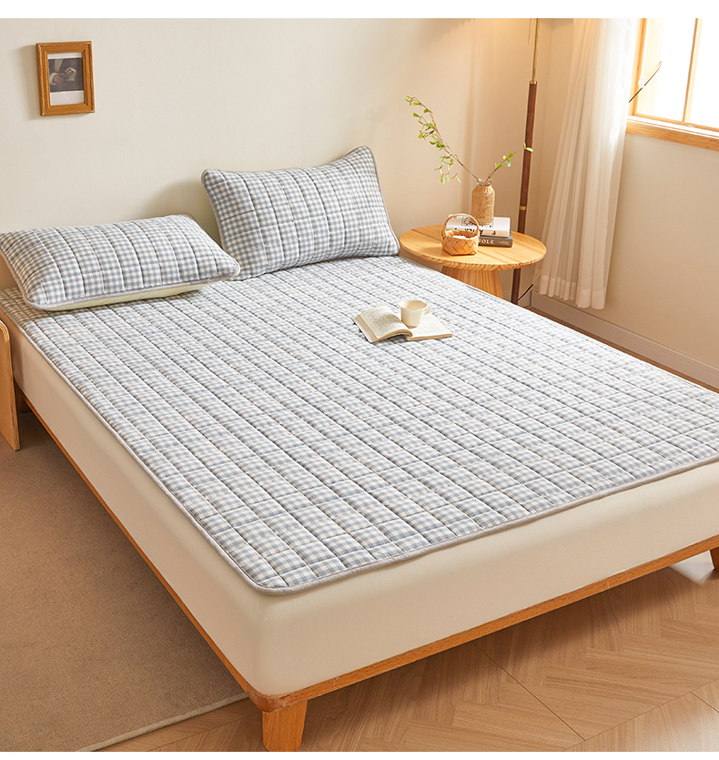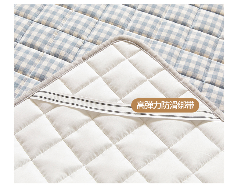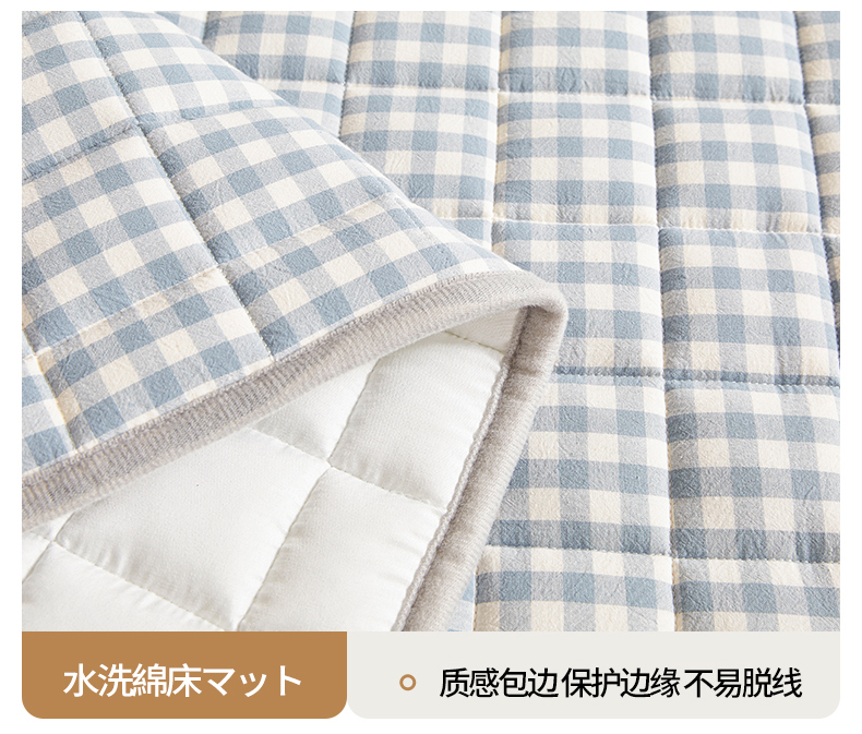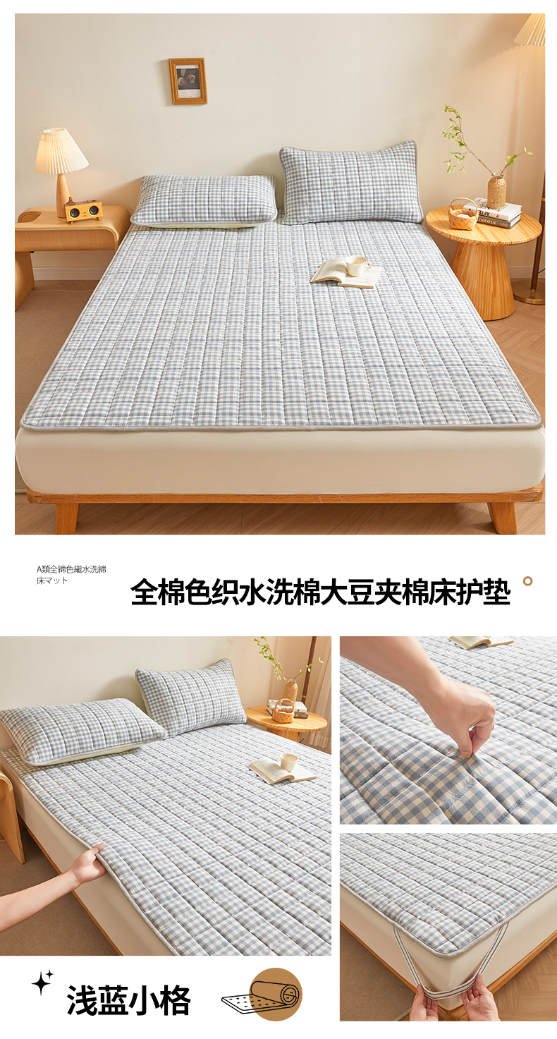 商品名称:伊人坊 2024新款全棉色织水洗棉床护垫 浅蓝小格