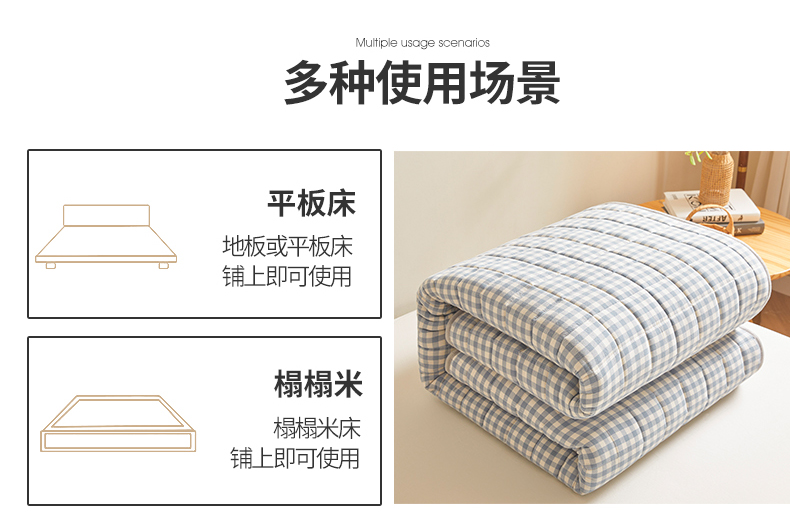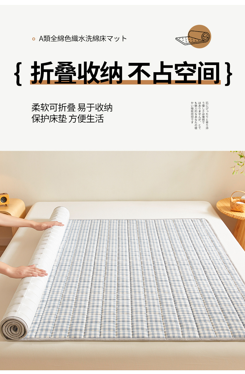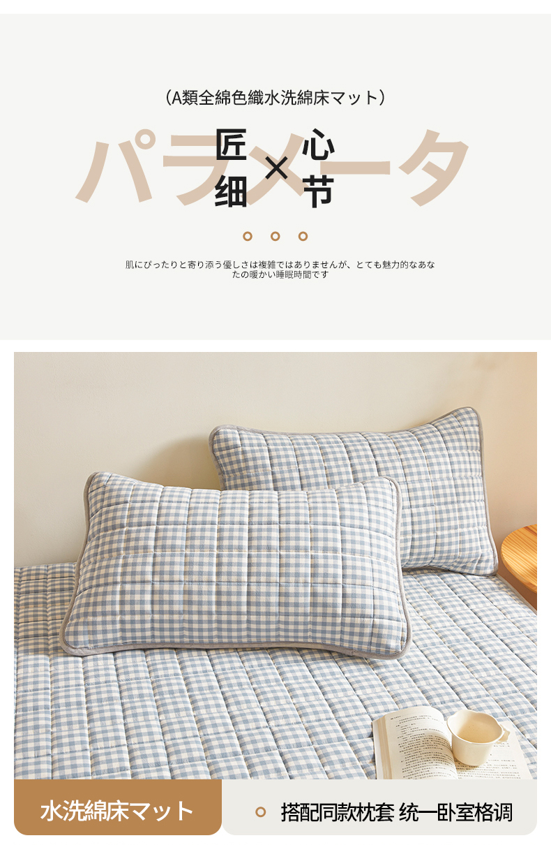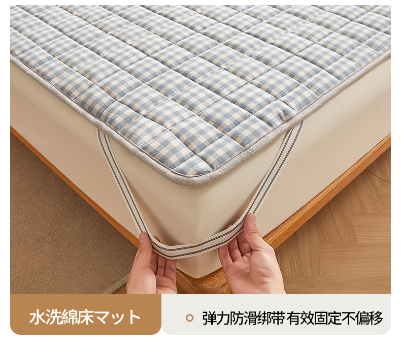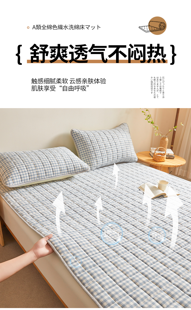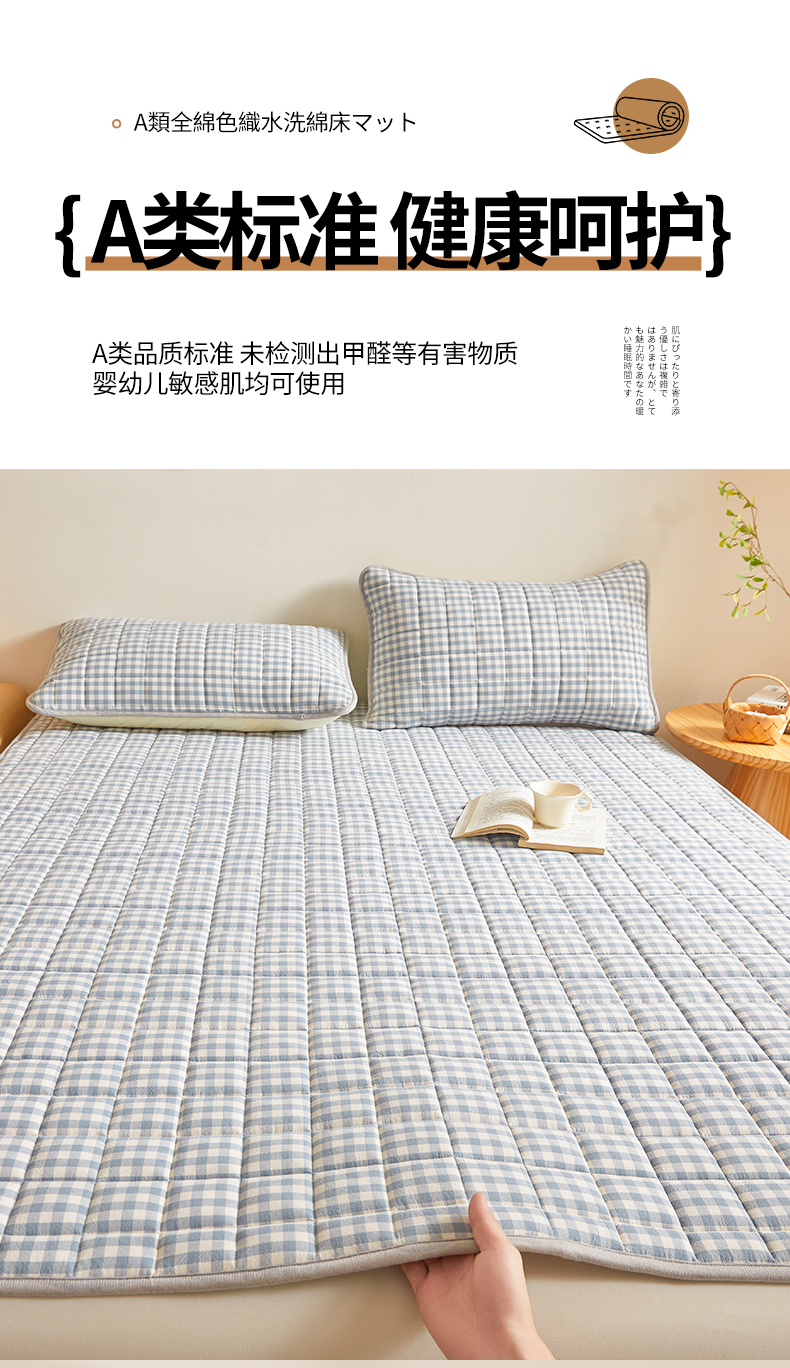 商品名称:伊人坊 2024新款全棉色织水洗棉床护垫 浅蓝小格