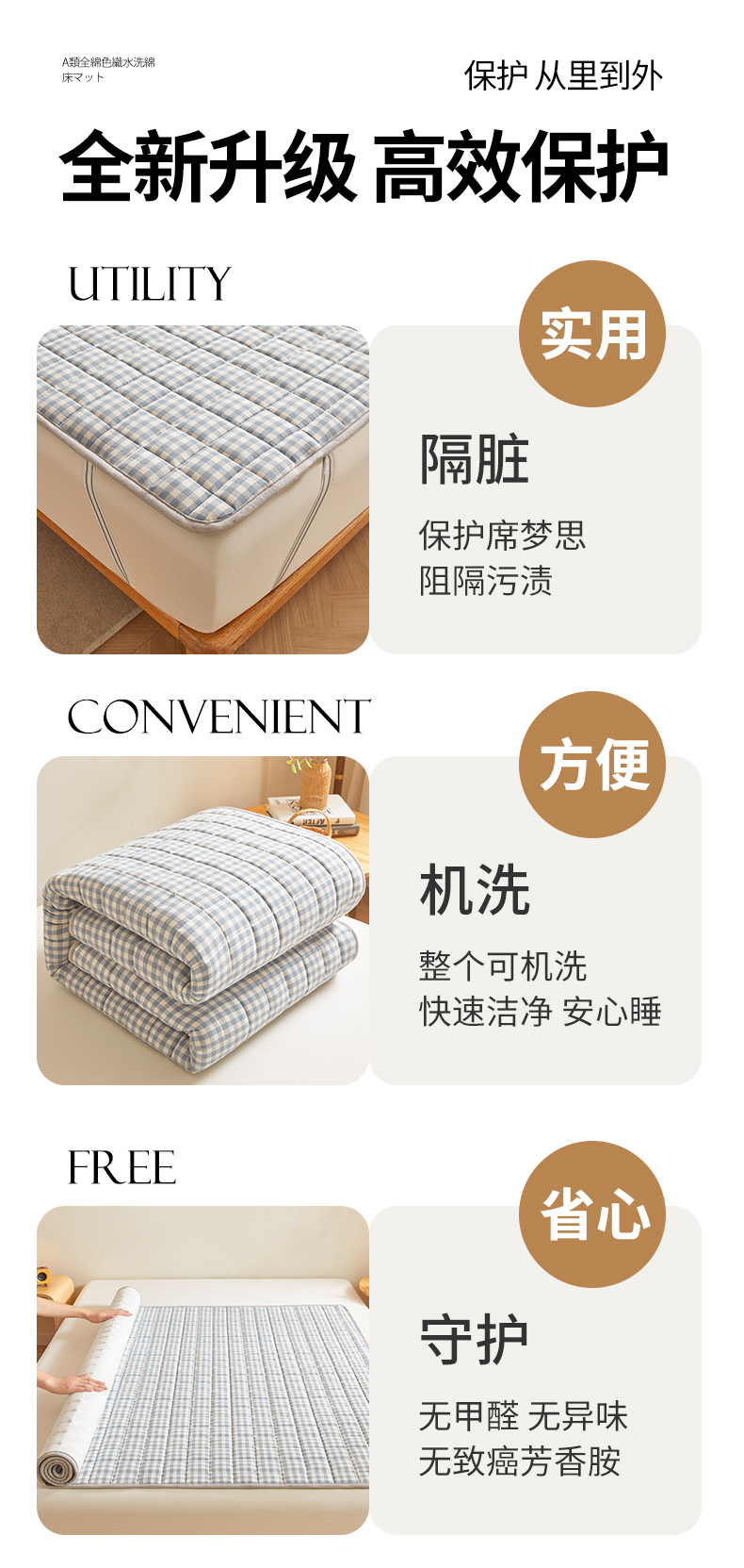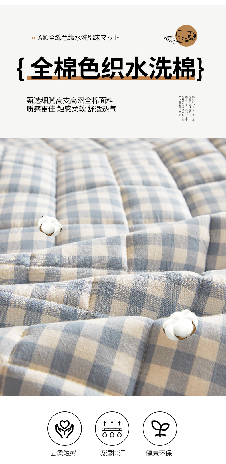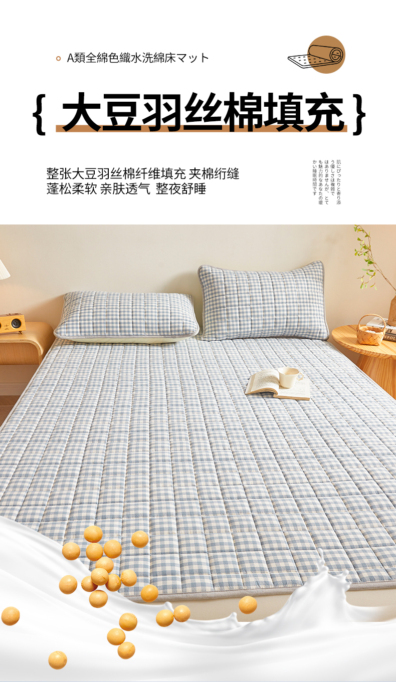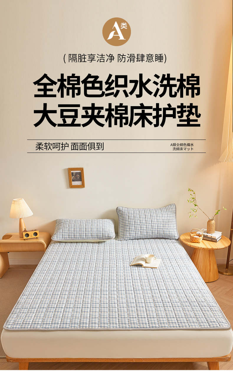 (总)伊人坊 2024新款原棉大豆床护垫,明月白,碧水青,布朗灰,玫瑰粉,米杏色,苹果绿
