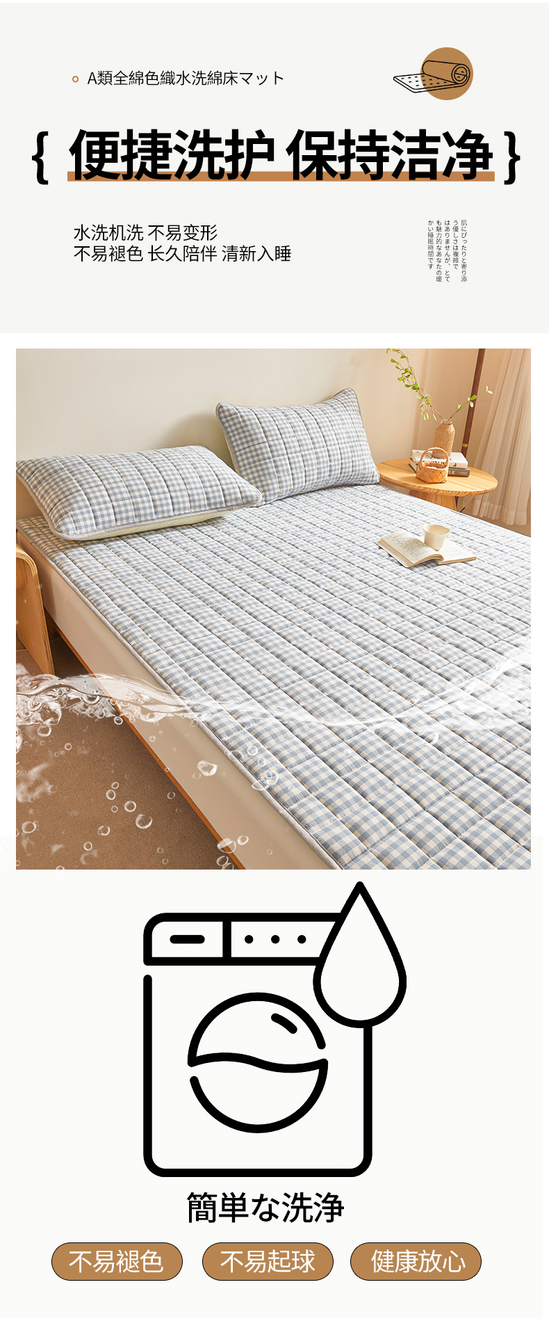 (总)伊人坊 2024新款原棉大豆防水床护垫,明月白,碧水青,布朗灰,玫瑰粉,米杏色,苹果绿