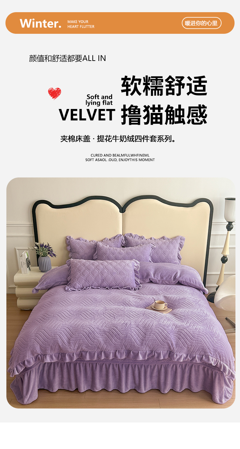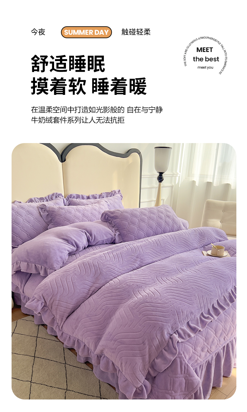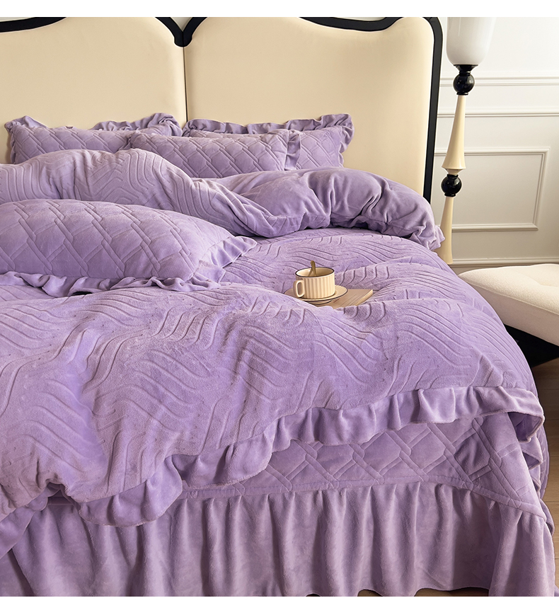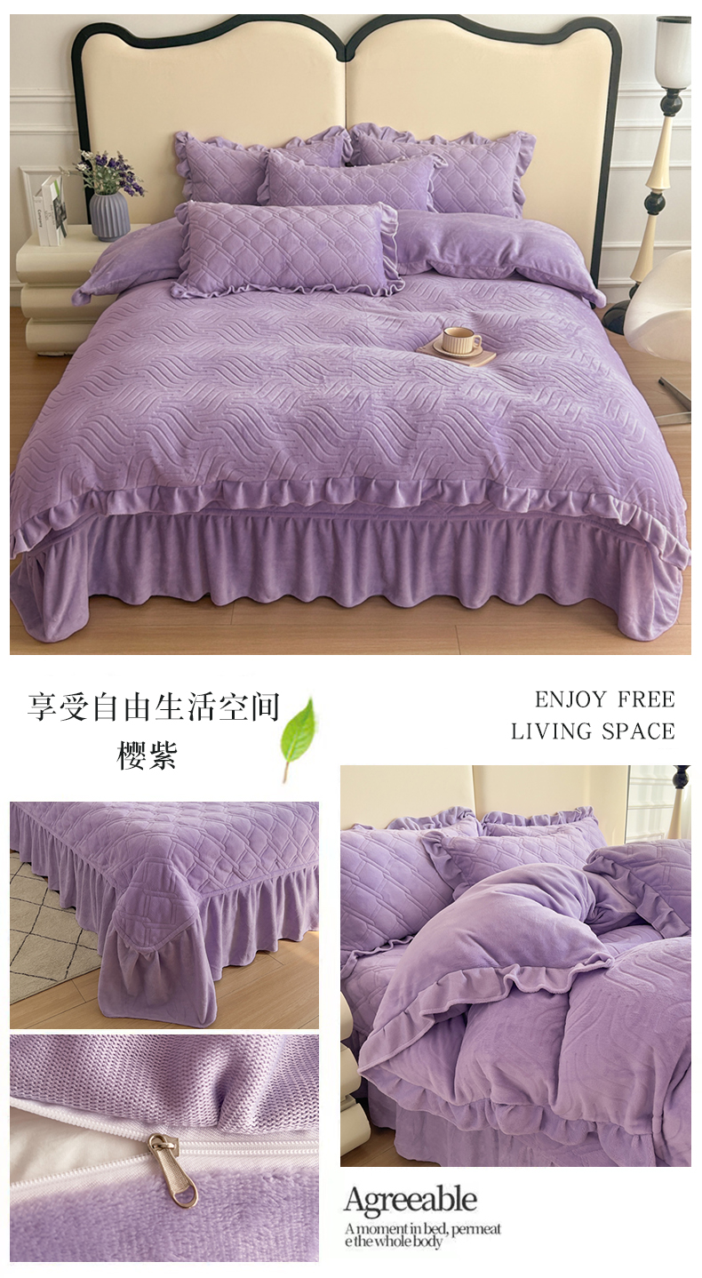 商品名称:十个点家纺 2024新款牛奶绒夹棉床盖四件套-唯美系列 唯美-樱紫