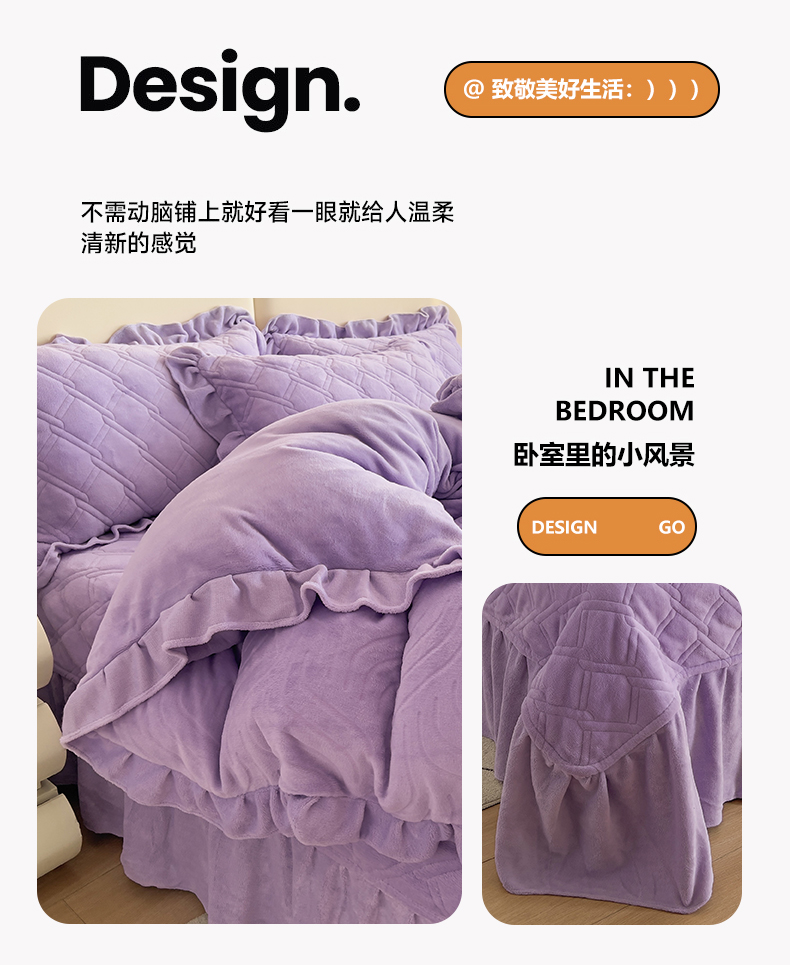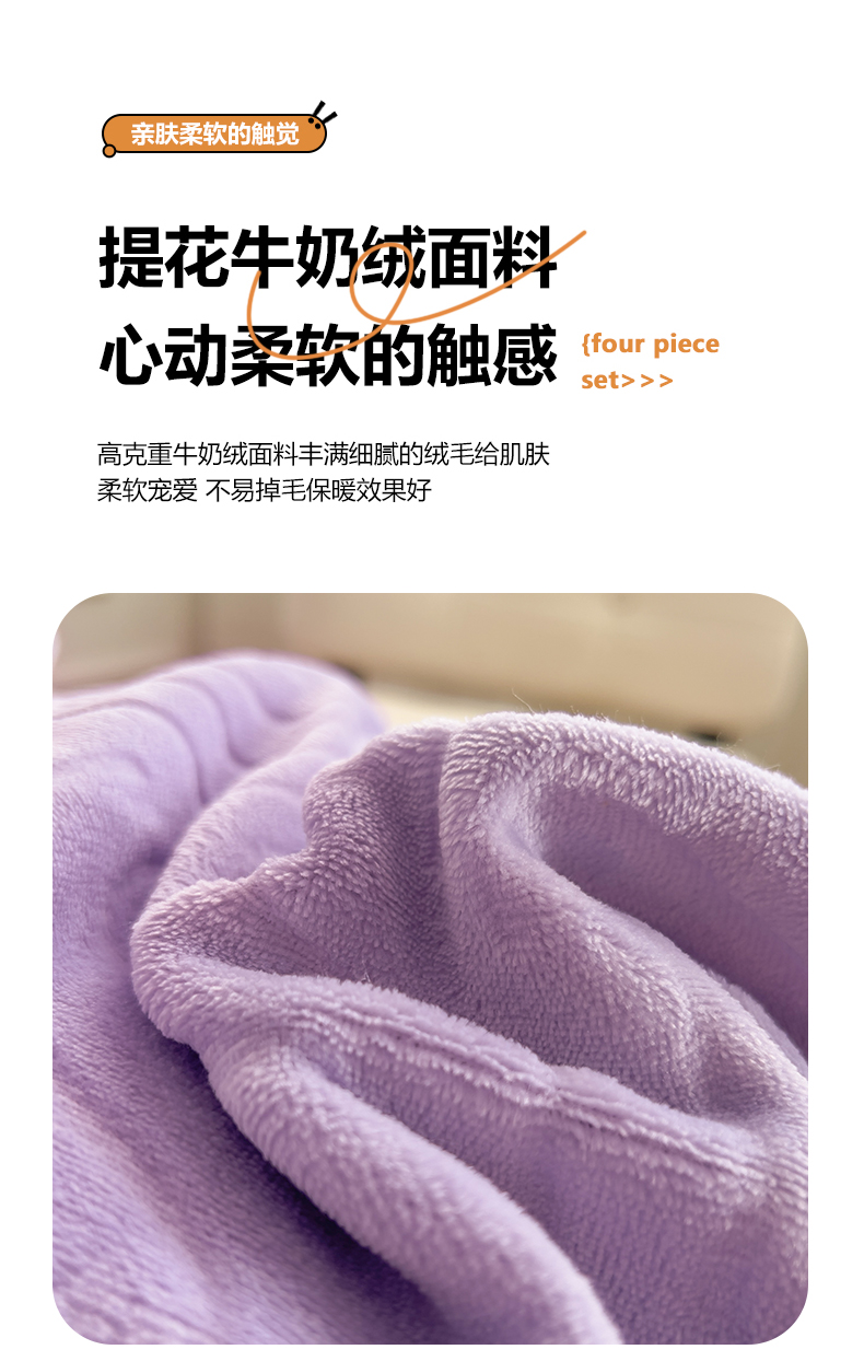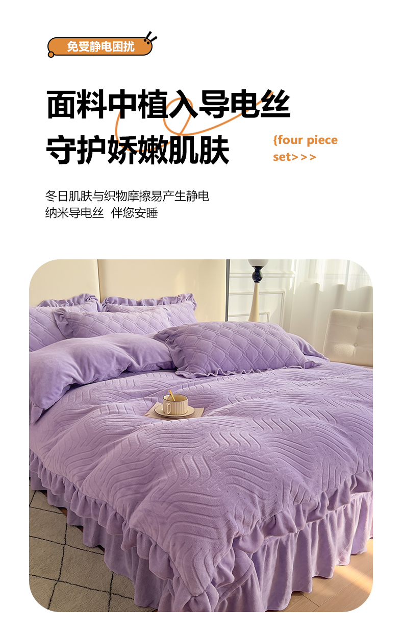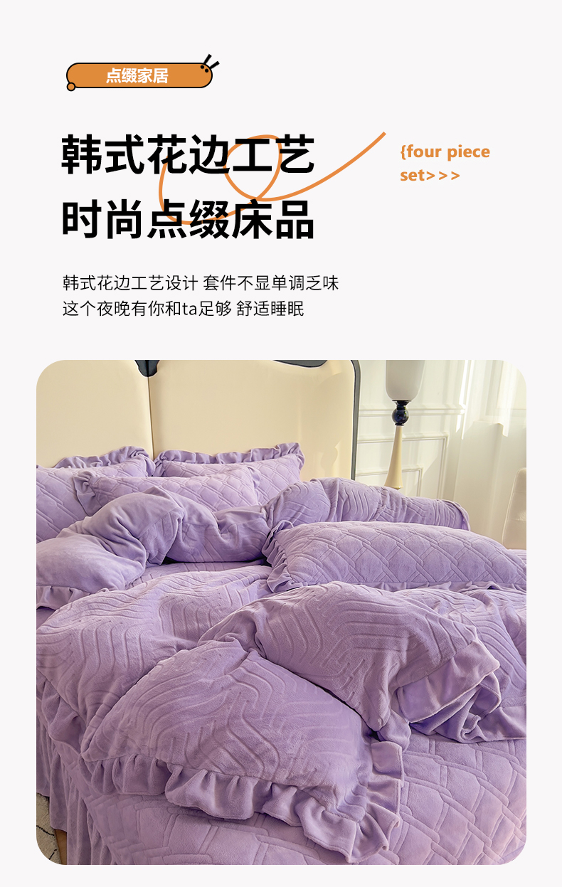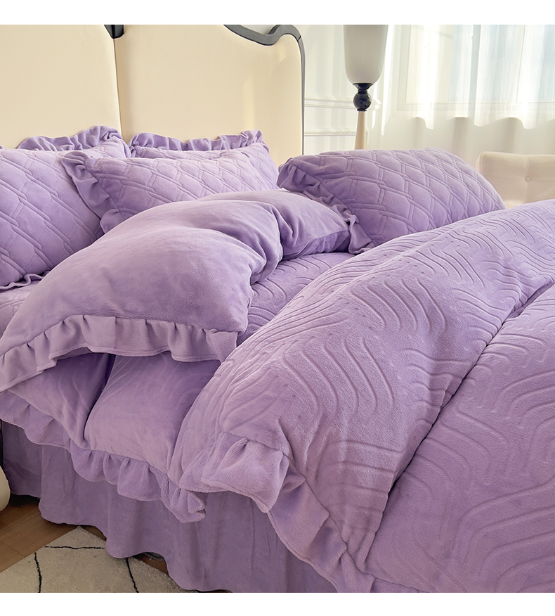 商品名称:十个点家纺 2024新款牛奶绒夹棉床盖四件套-唯美系列 唯美-樱紫