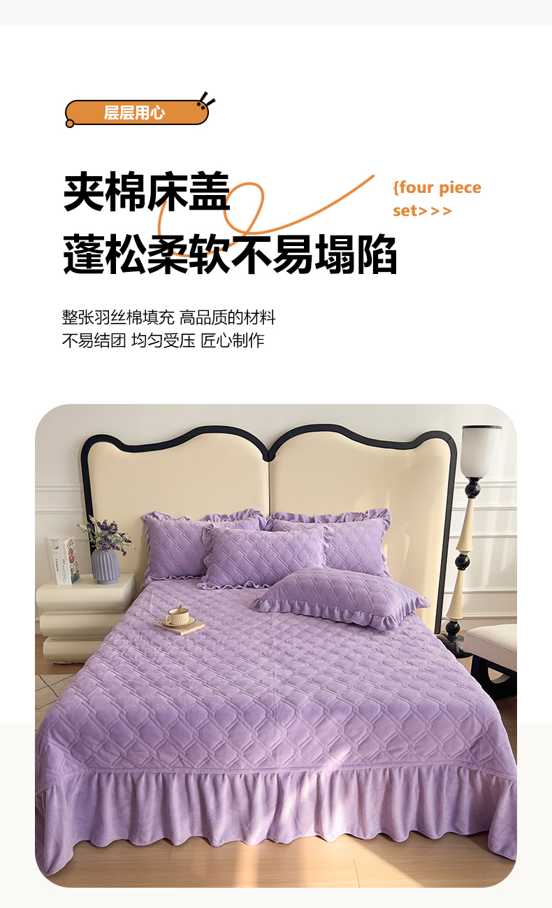 十个点家纺 2024新款牛奶绒夹棉床盖四件套-唯美系列 唯美-樱紫