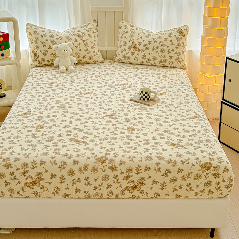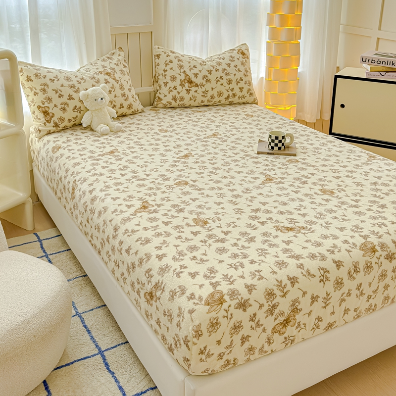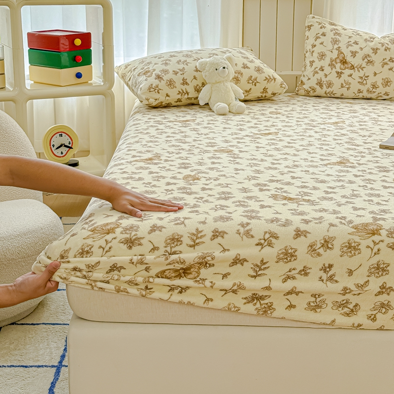 金丝鸟家纺 2024新款200g牛奶绒单床笠系列 飞花咖