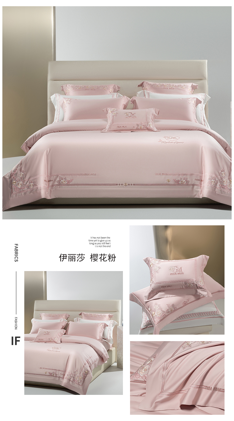 诗黛尔 2024秋冬新品长绒棉绣花四件套--伊丽莎系列 伊丽莎-樱花粉