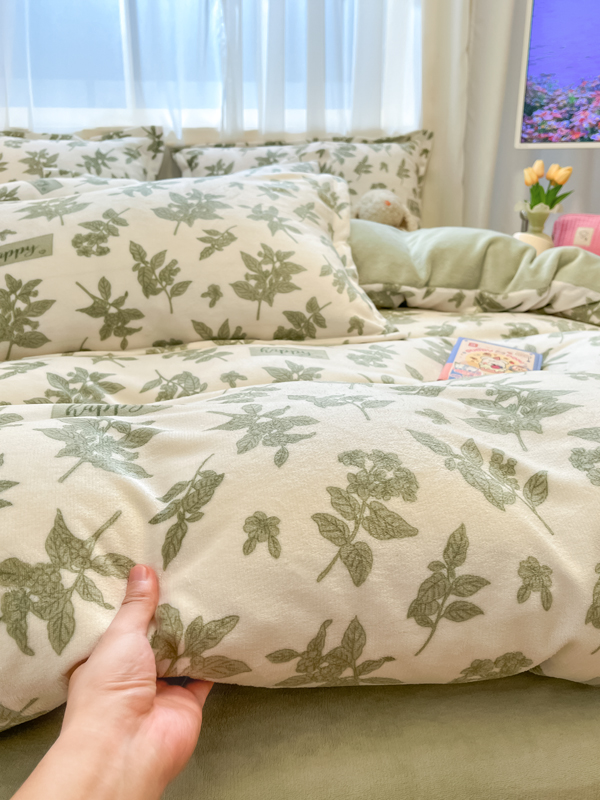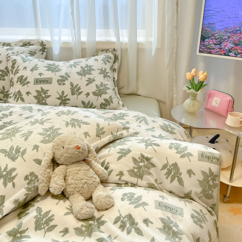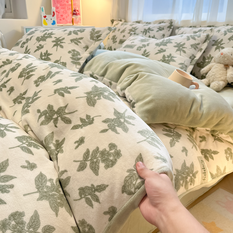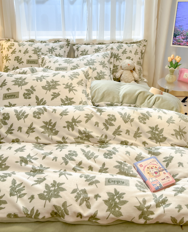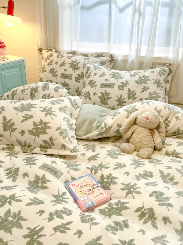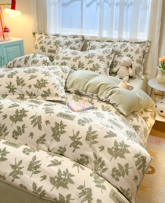 (总)慕尚家纺 2025新款磨毛提花双层纱四件套,慕叶粉,慕叶灰,清雅灰,清雅咖,清雅绿,森木粉,森木灰,森木绿,叶韵灰,叶韵咖,叶韵绿