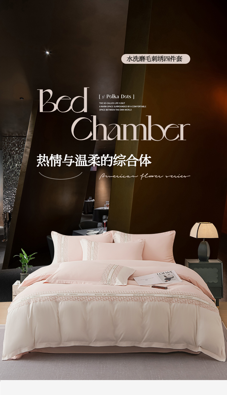 商品名称:布可家纺 2025新款时髦大牌高级感水洗磨毛刺绣四件套-帝奥 帝奥-密汁粉